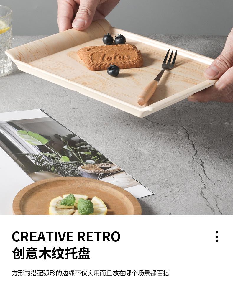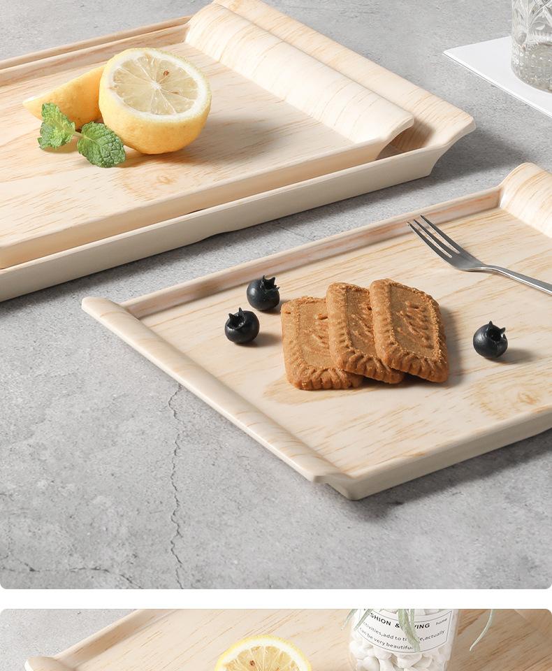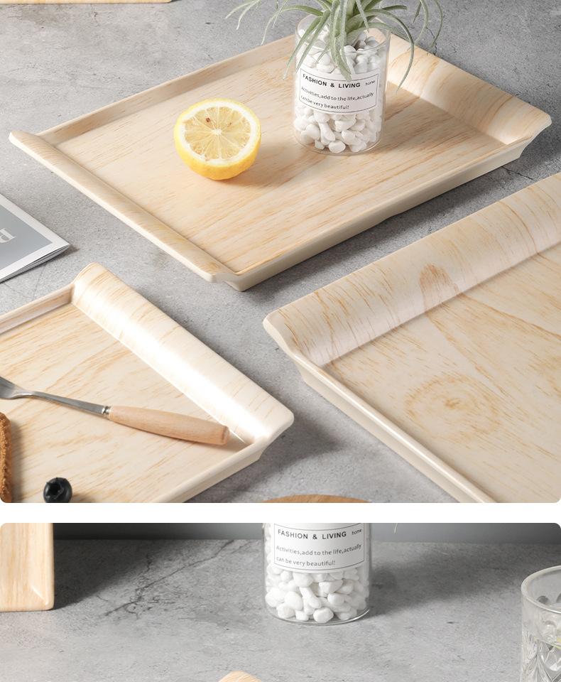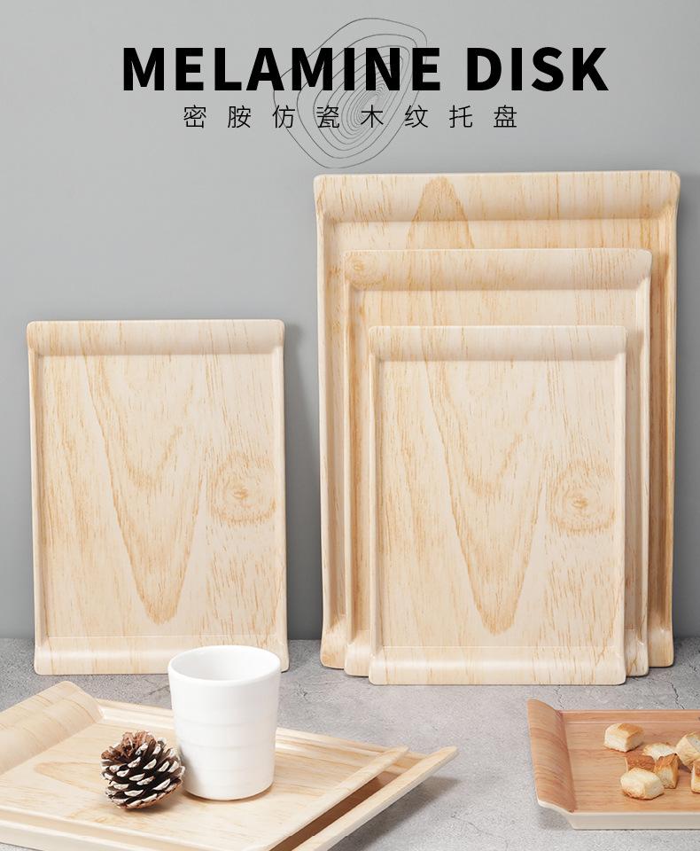 Compra Bandeja rectangular de melamina con veta de madera para restaurante, bandeja de plástico para almacenamiento, bandeja para taza de té, plato para pastel, bandeja de exhibición, comercial al por mayor en Joom.pro