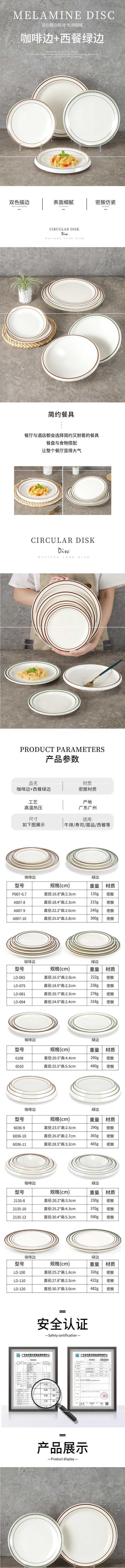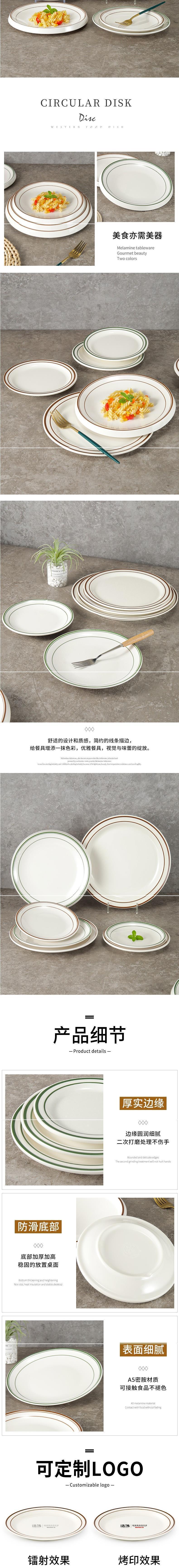 Plato de melamina vajilla plato disco de plástico imitación porcelana hotel restaurante plato redondo plato plato llano comercial