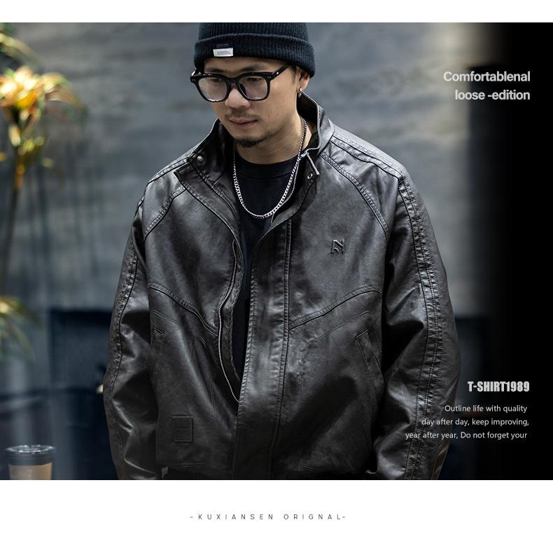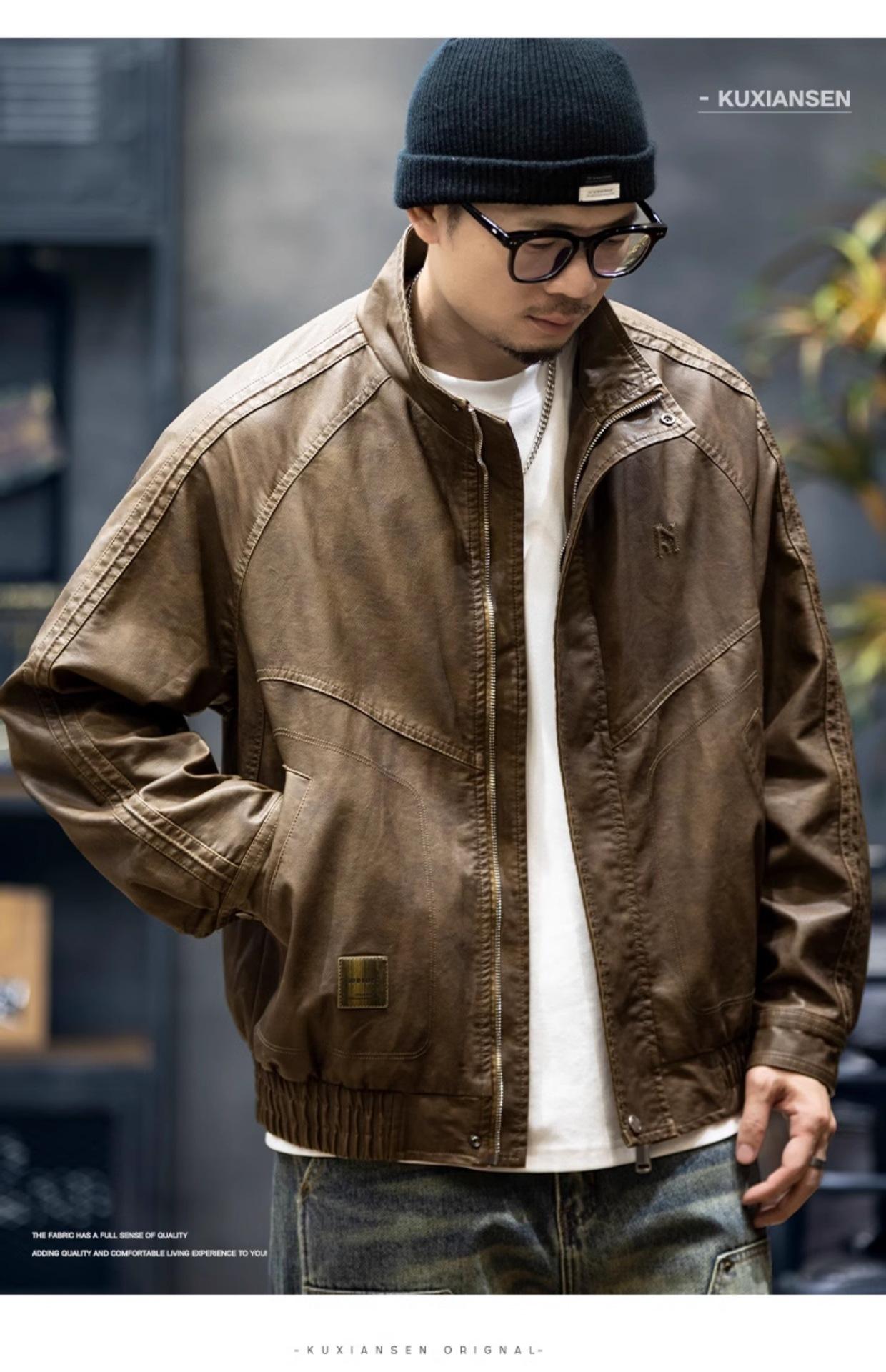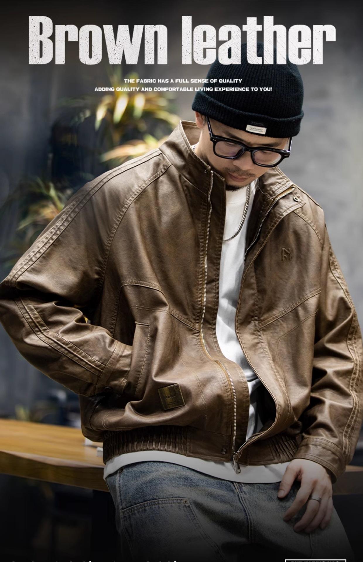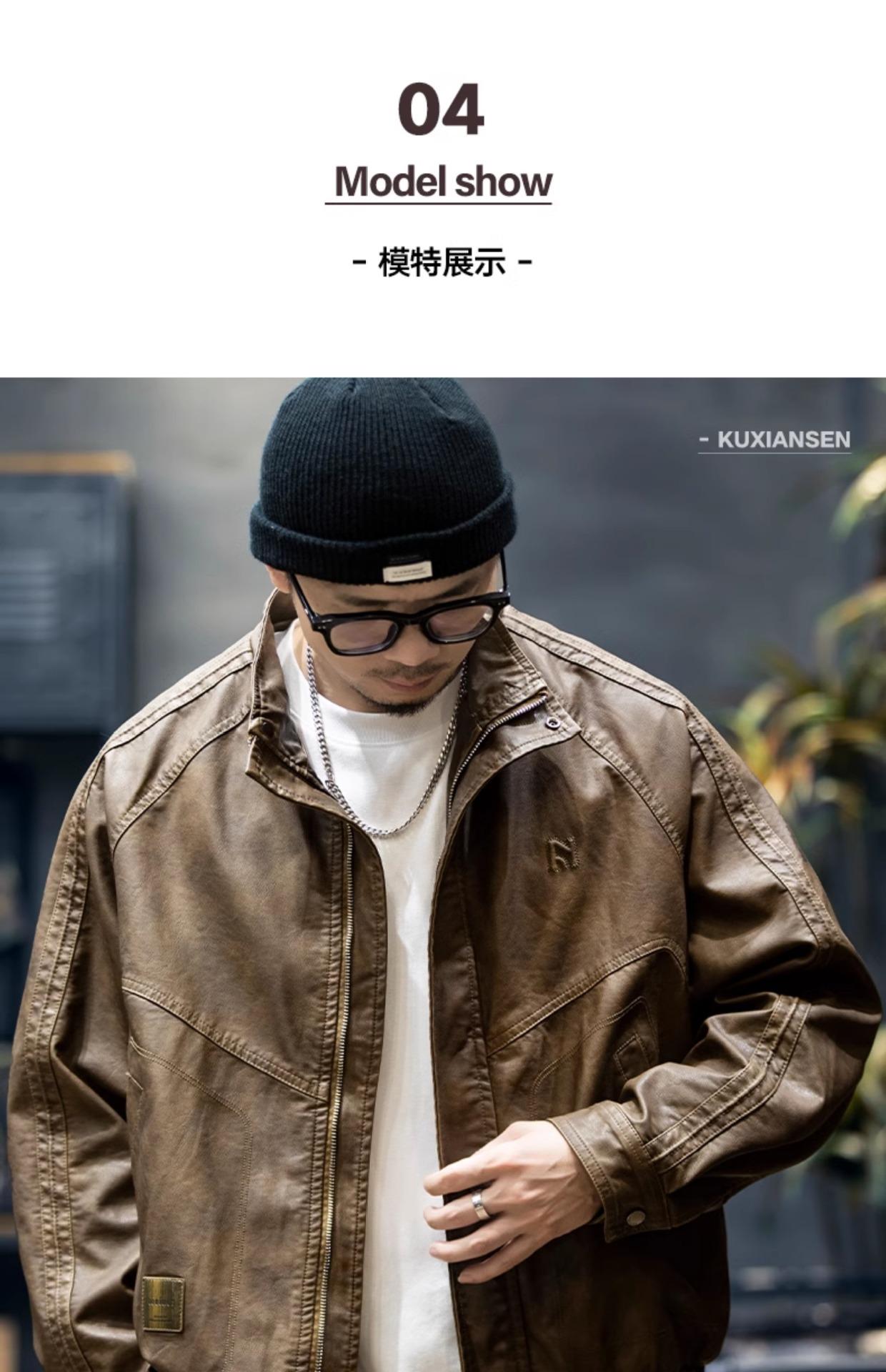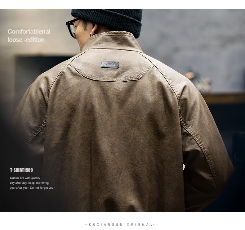 Chaqueta de Cuero PU Retro Americana para Hombre Primavera Nueva Holgada Tendencia Marca Talla Grande Chaqueta Top Abrigo Cortavientos de Otoño Invierno para Hombre