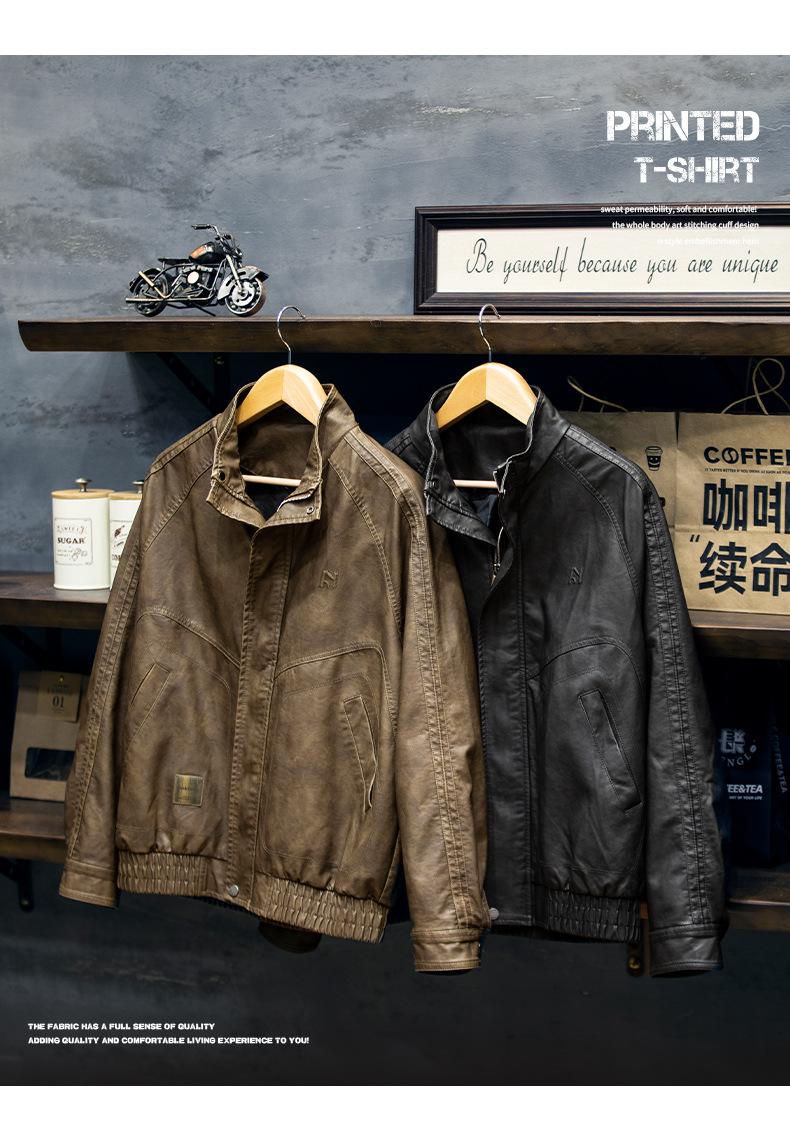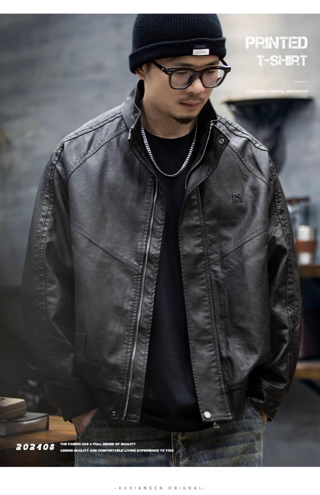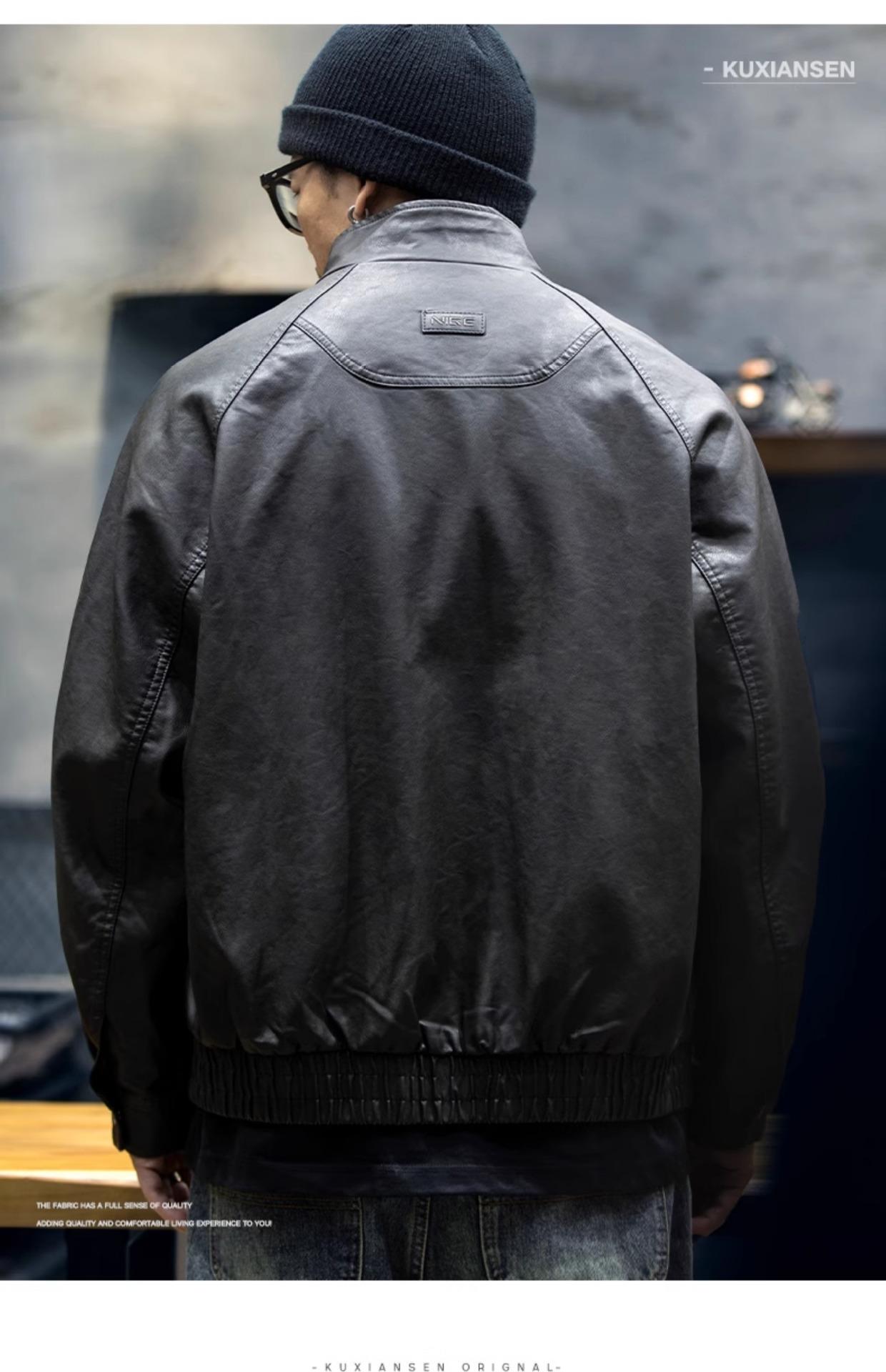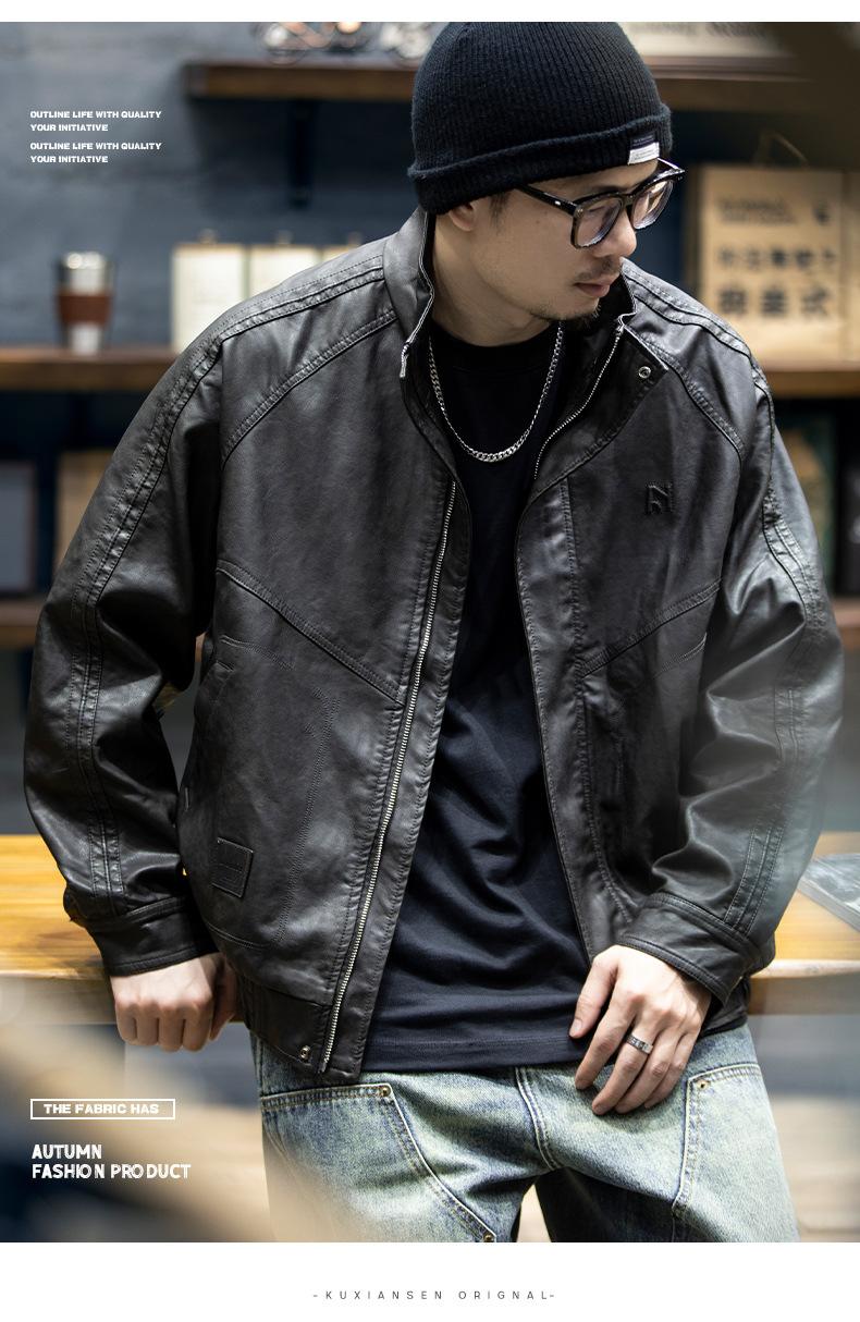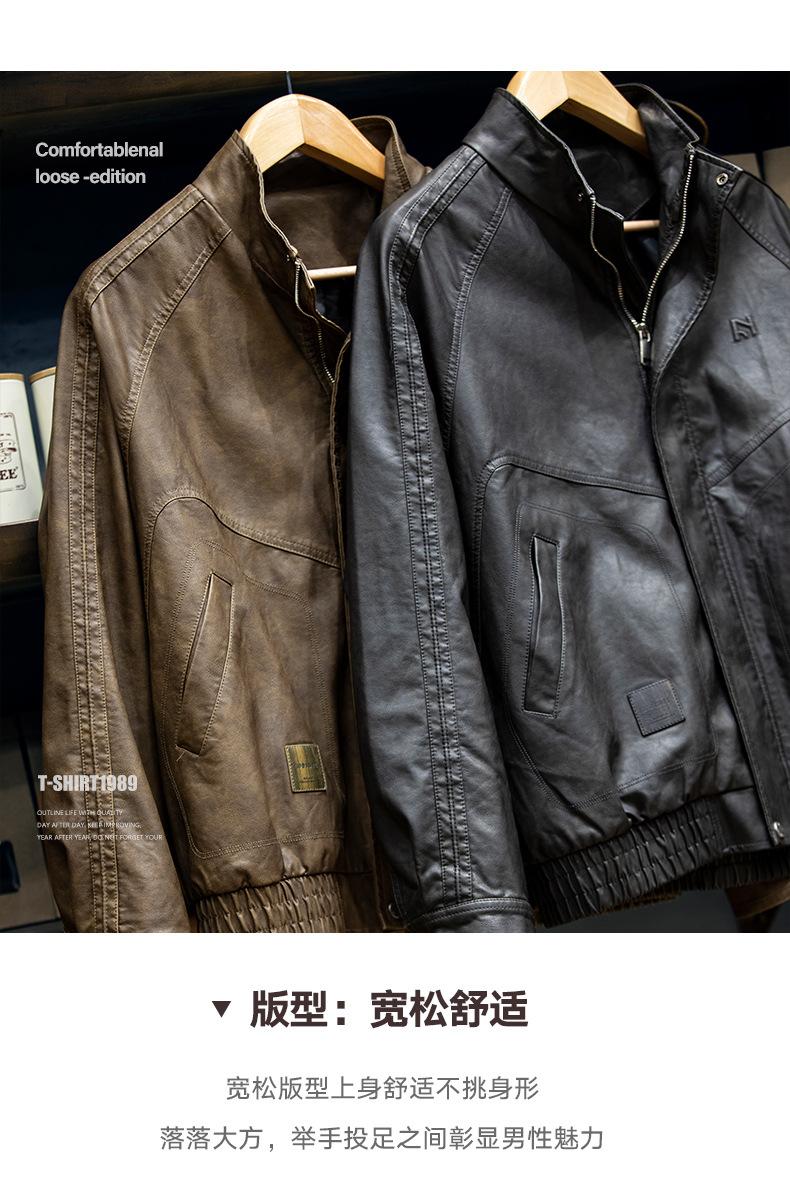 Chaqueta de Cuero PU Retro Americana para Hombre Primavera Nueva Holgada Tendencia Marca Talla Grande Chaqueta Top Abrigo Cortavientos de Otoño Invierno para Hombre