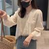 Camisa de Mujer 2025 Nueva Primavera y Otoño Cuello en V Manga Larga Bordado Encaje Camisa Pequeña Temperamento Versátil Moda Top