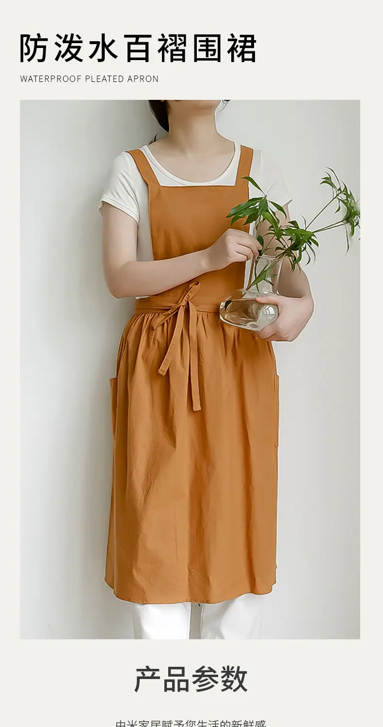 Delantal Simple Plisado Transfronterizo para Cocina Casera de Mujer, Café, Antiincrustante e Hidrófugo, Delantal Chaleco de Algodón