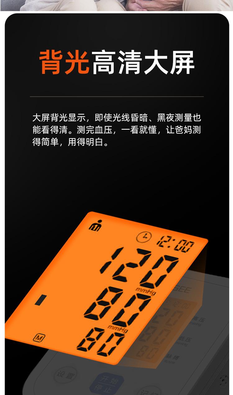 Upper arm blood pressure monitor 163d battery backlight model voice announcement clear large screen, Upper arm...