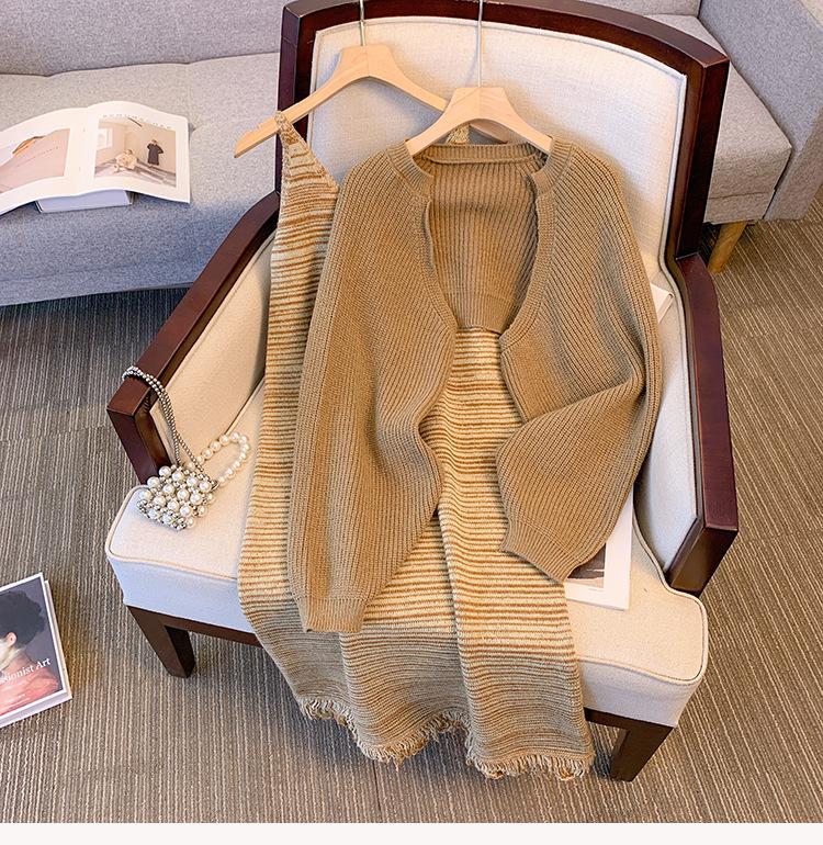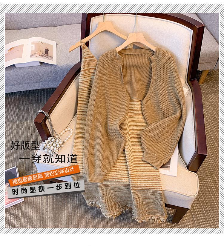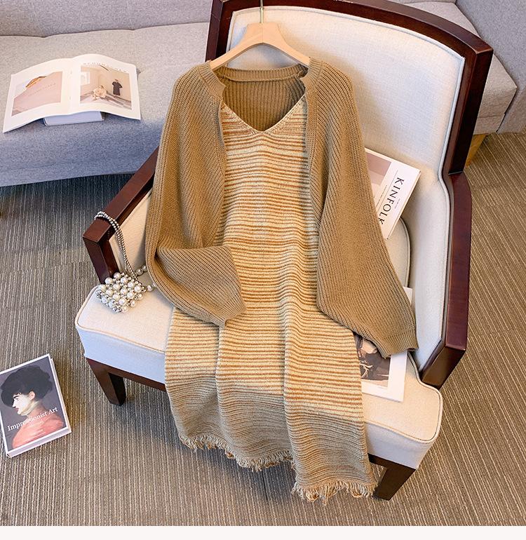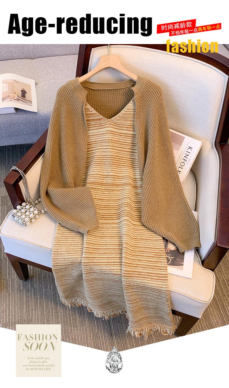Set de Cárdigan y Vestido Camisola de Punto con Borlas Retro MM para Mujer de Talla Grande, Set de Dos Piezas Adelgazante