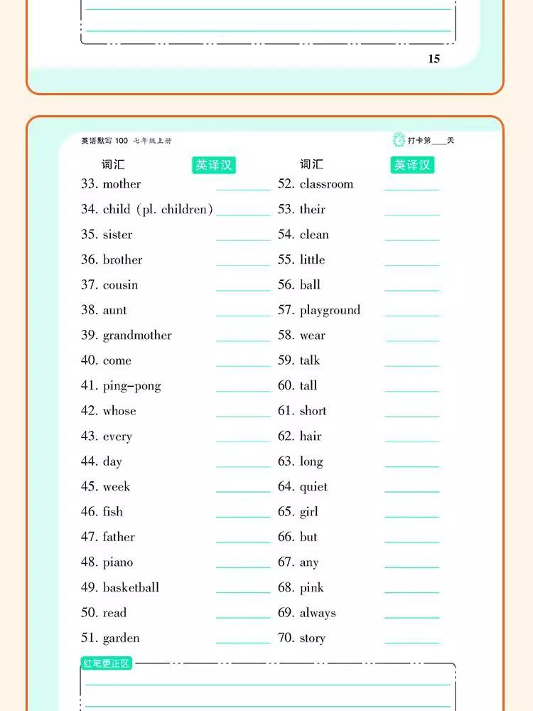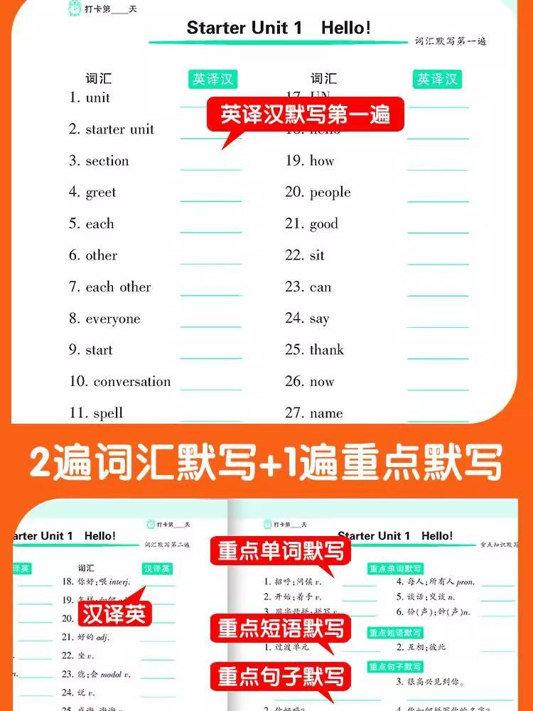 Junior High School General Seventh Grade First Semester English Dictation 100 (Price Limit 19.8)