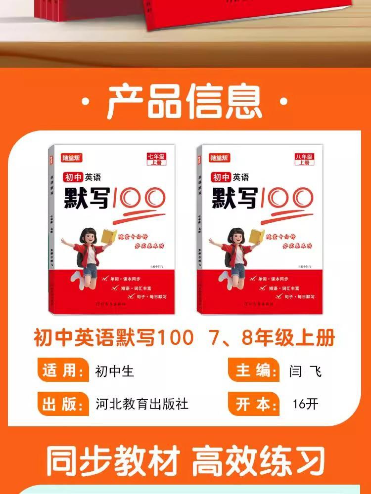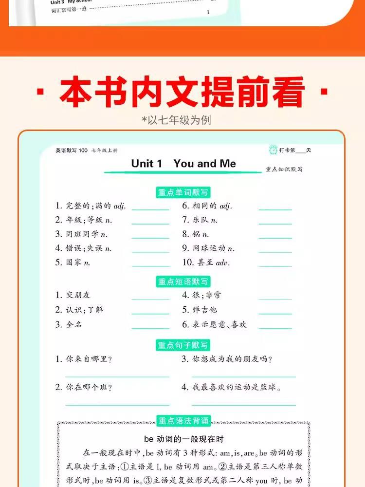 Junior High School General Seventh Grade First Semester English Dictation 100 (Price Limit 19.8), Junior High ...