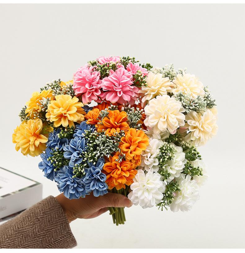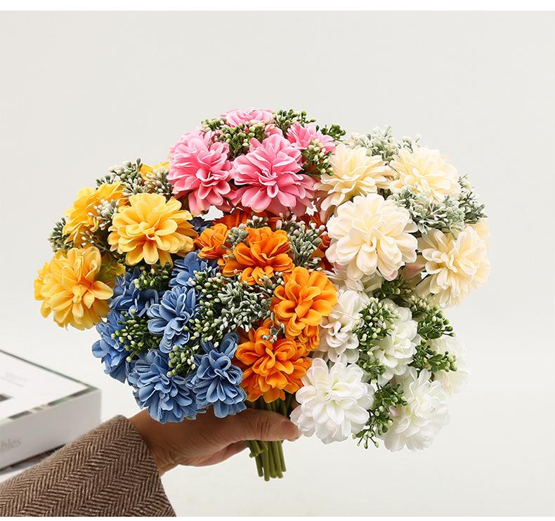 Crisantemo Aguja Dorada Boda Flor Artificial Flor de Seda Boda Flor Falsa Decoración Adornos Florales Ramo Bola de Flores