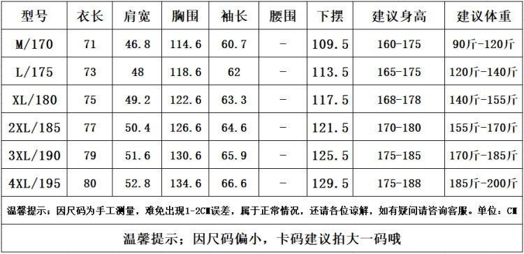 170/48, 175/50, 180/52, 185/54, 190/56, 195/58