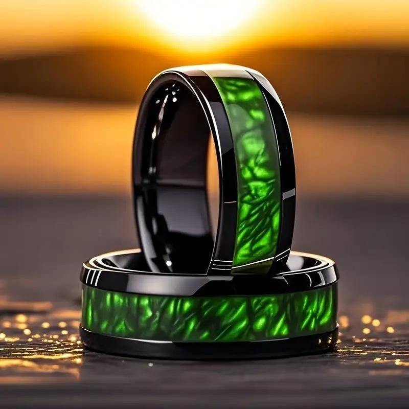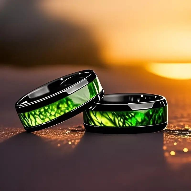 Anillo de Acero Inoxidable con Diseño de Raya Verde de 8 mm de Venta Caliente Transfronteriza Estilo Caliente Europeo y Americano Esférico Simple Serpentina de Noche Oscura