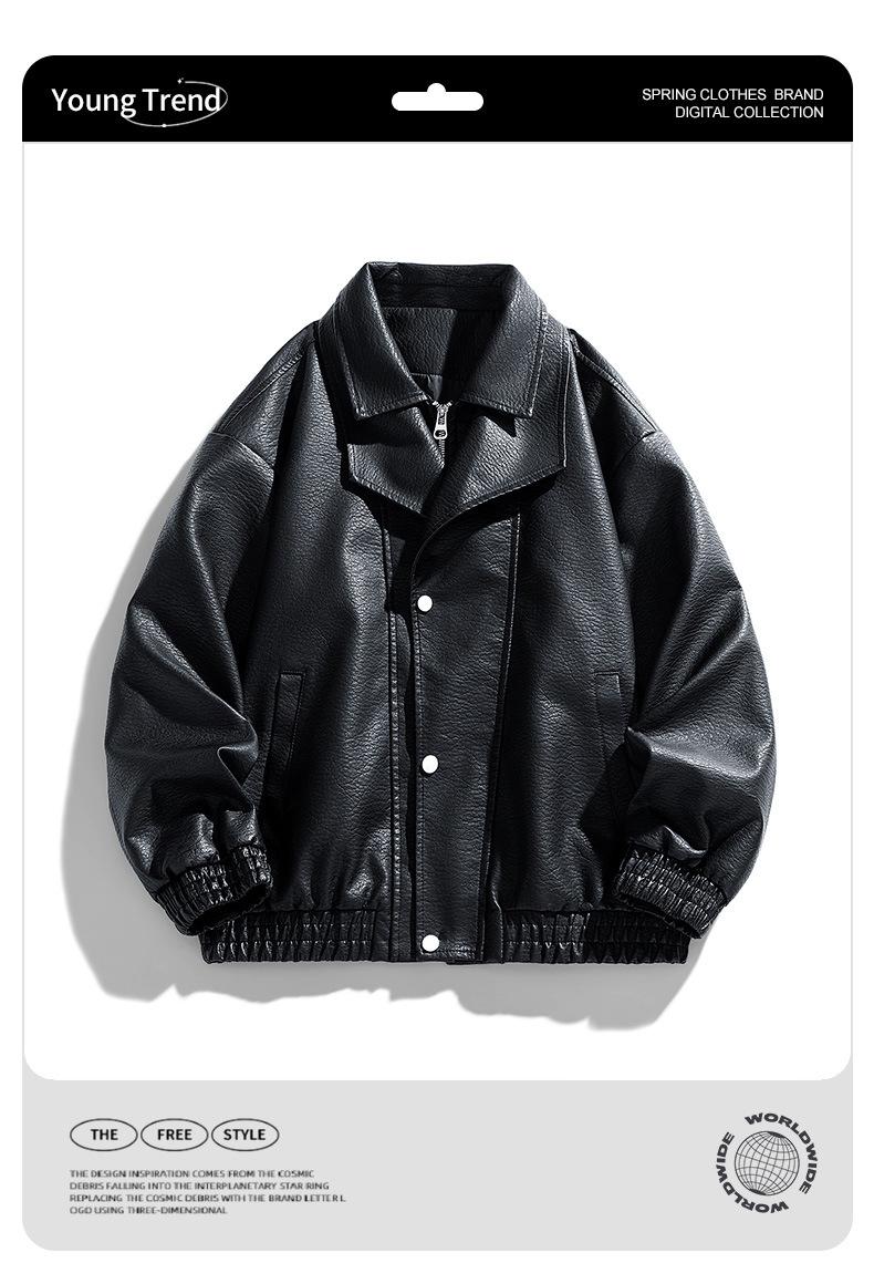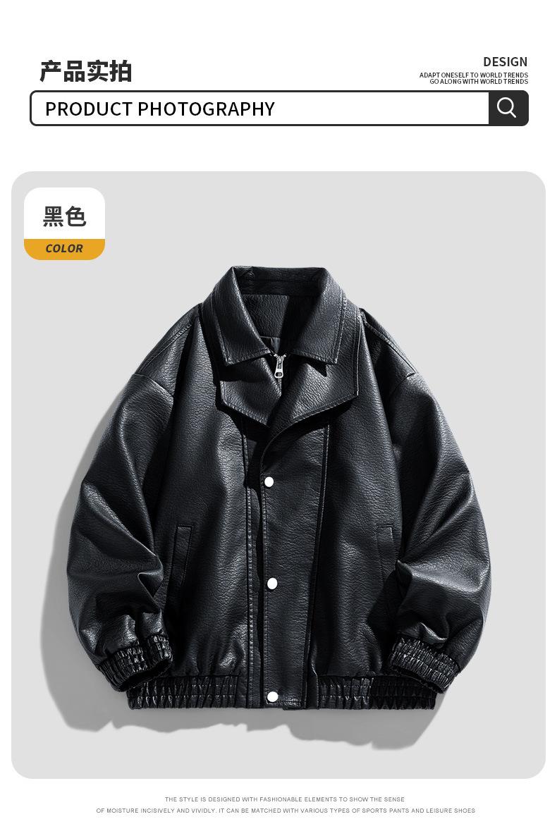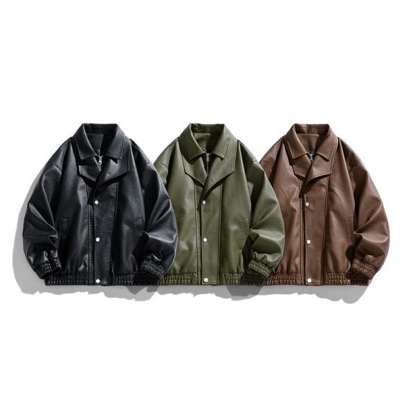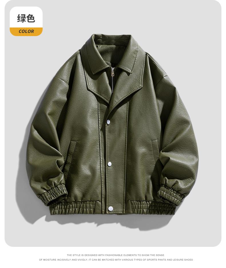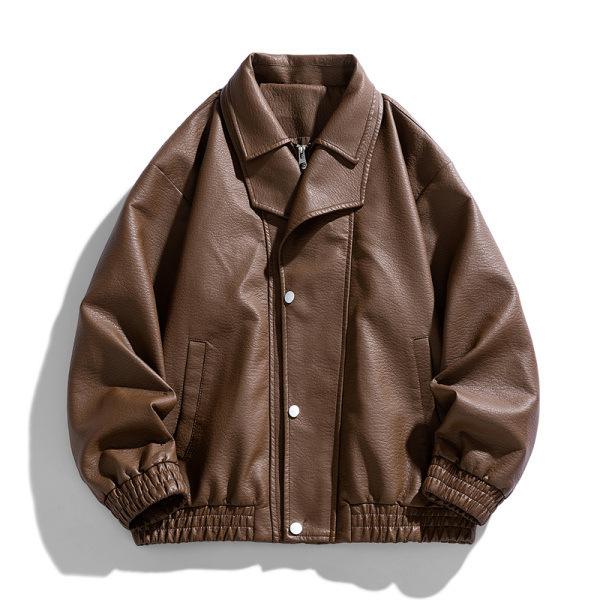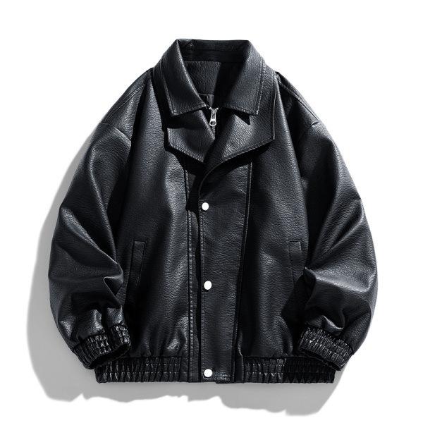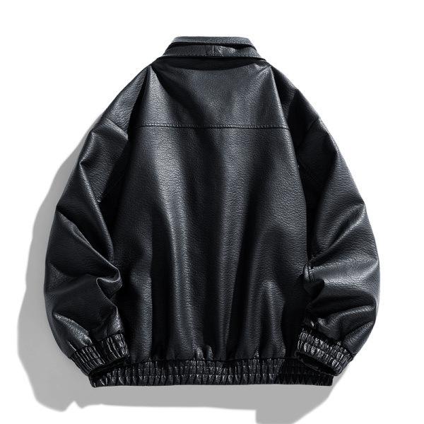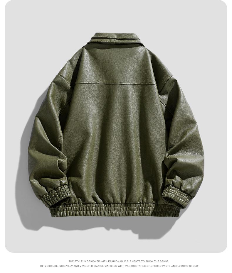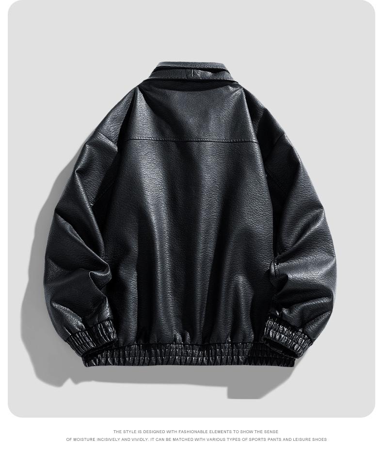 Chaqueta de Motociclista Streetwear Americano de Otoño Chaqueta de Cuero de Cuello Alto Simple Versátil Chaqueta de Cuero Holgada a la Moda