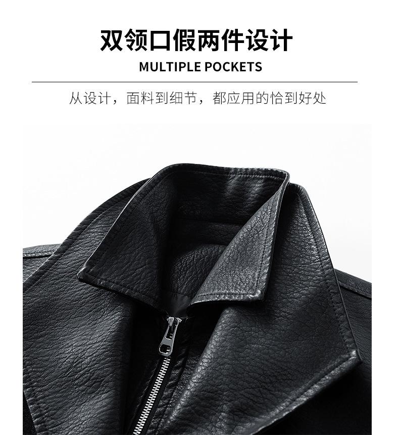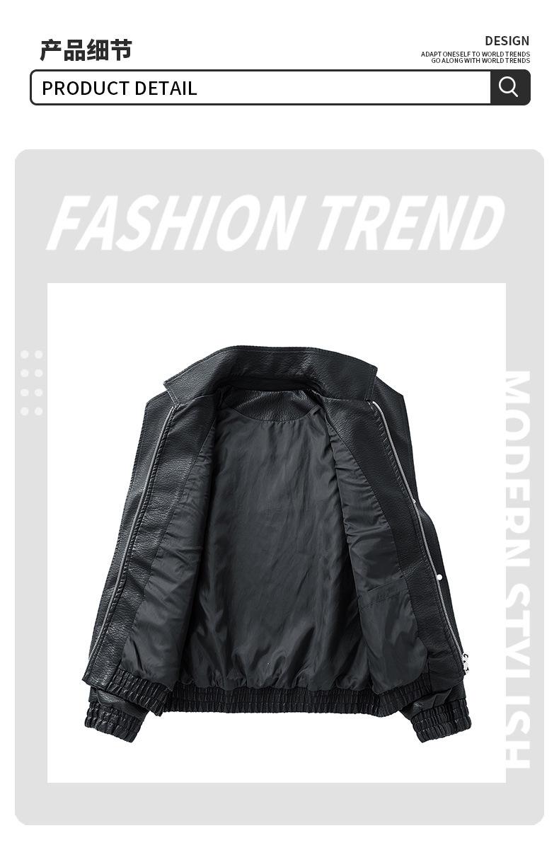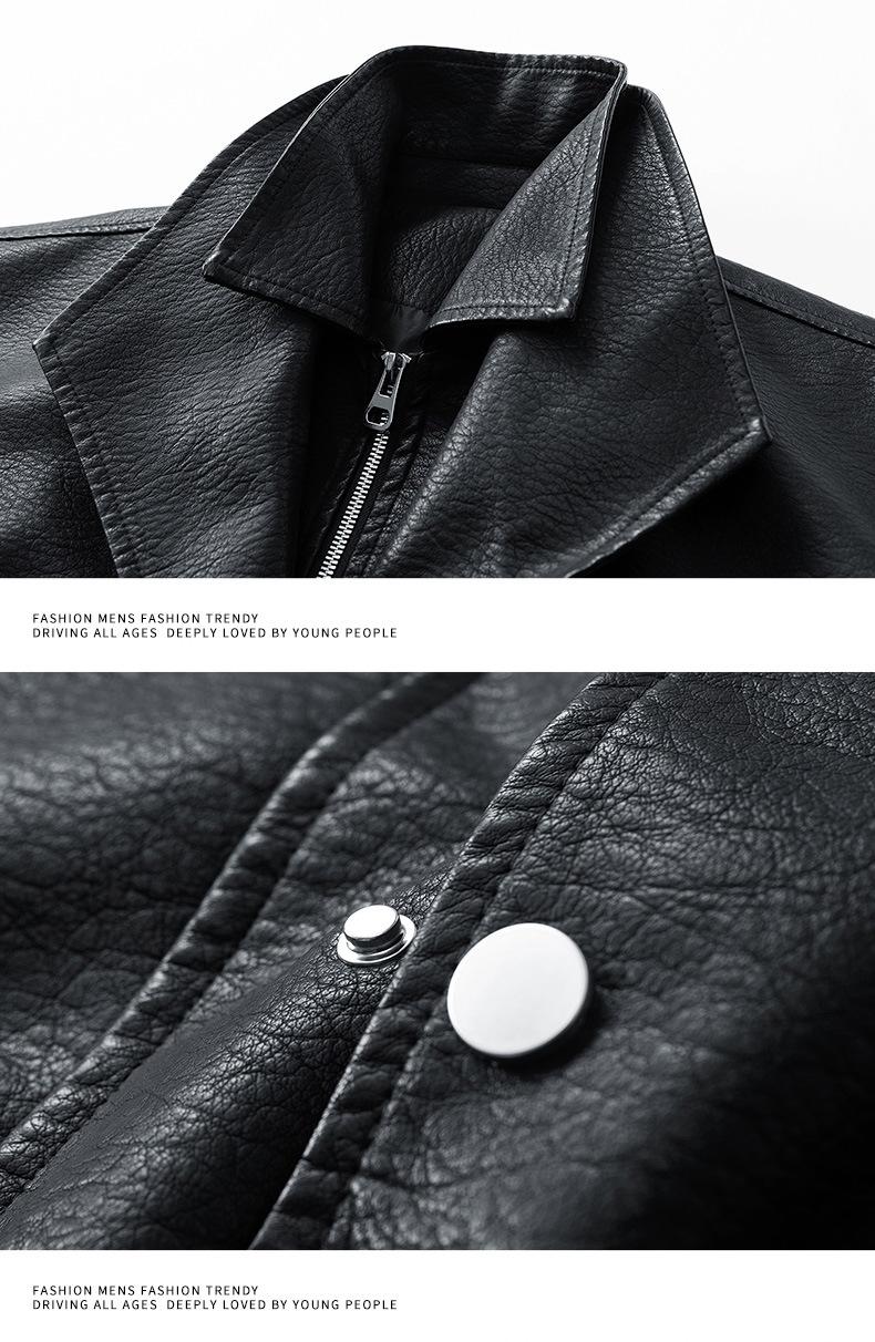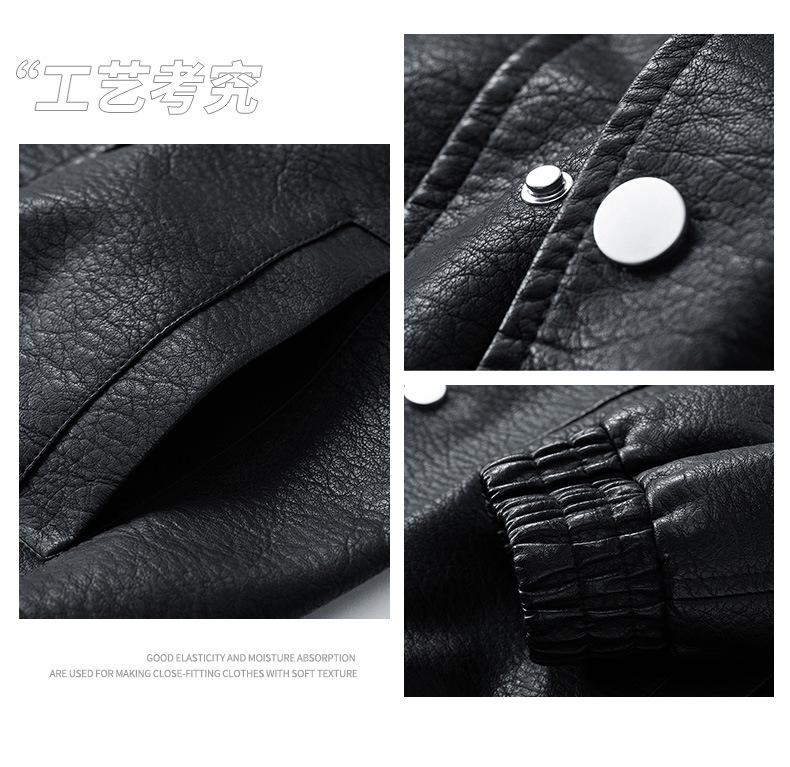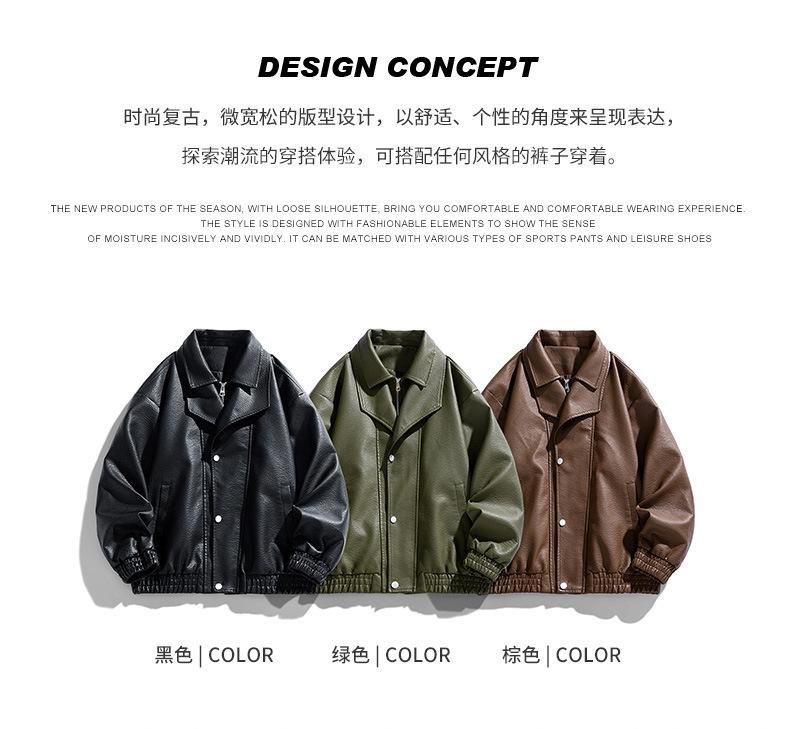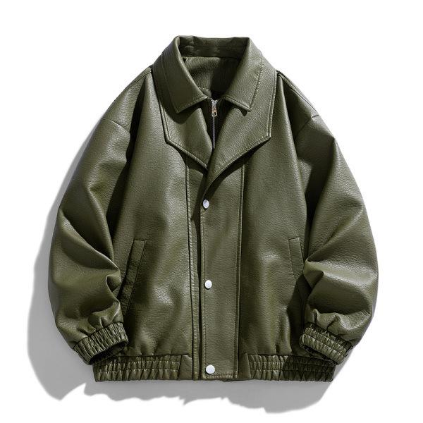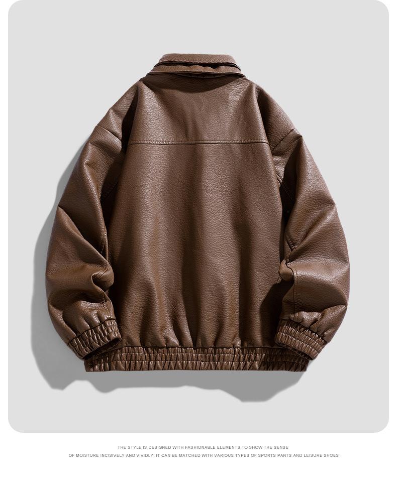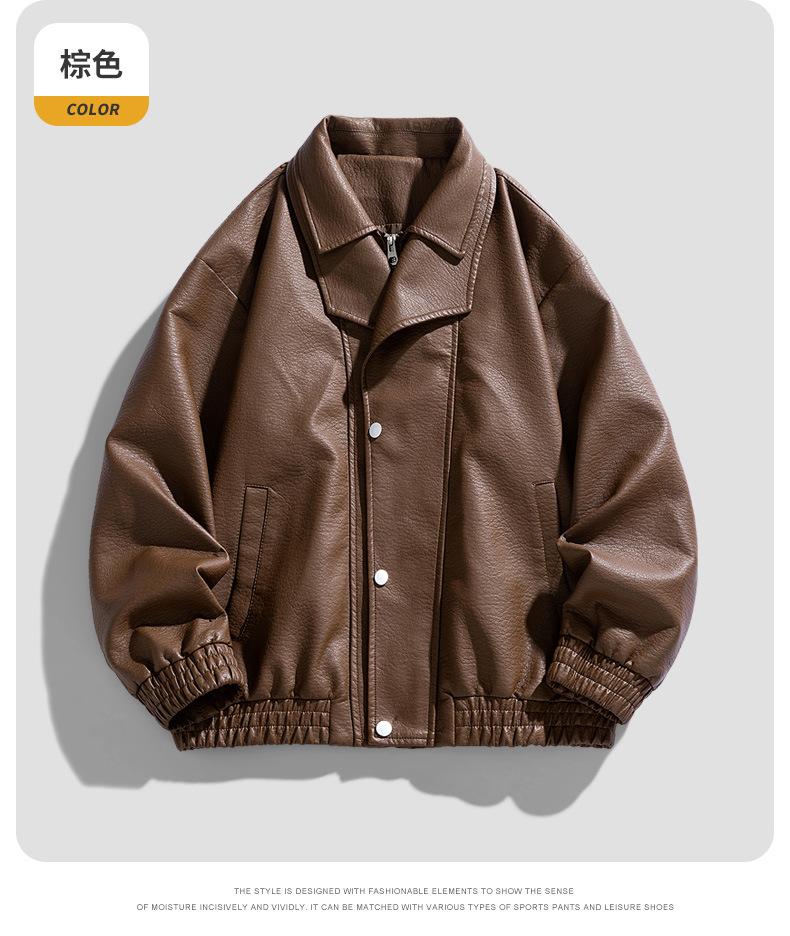 Chaqueta de Motociclista Streetwear Americano de Otoño Chaqueta de Cuero de Cuello Alto Simple Versátil Chaqueta de Cuero Holgada a la Moda