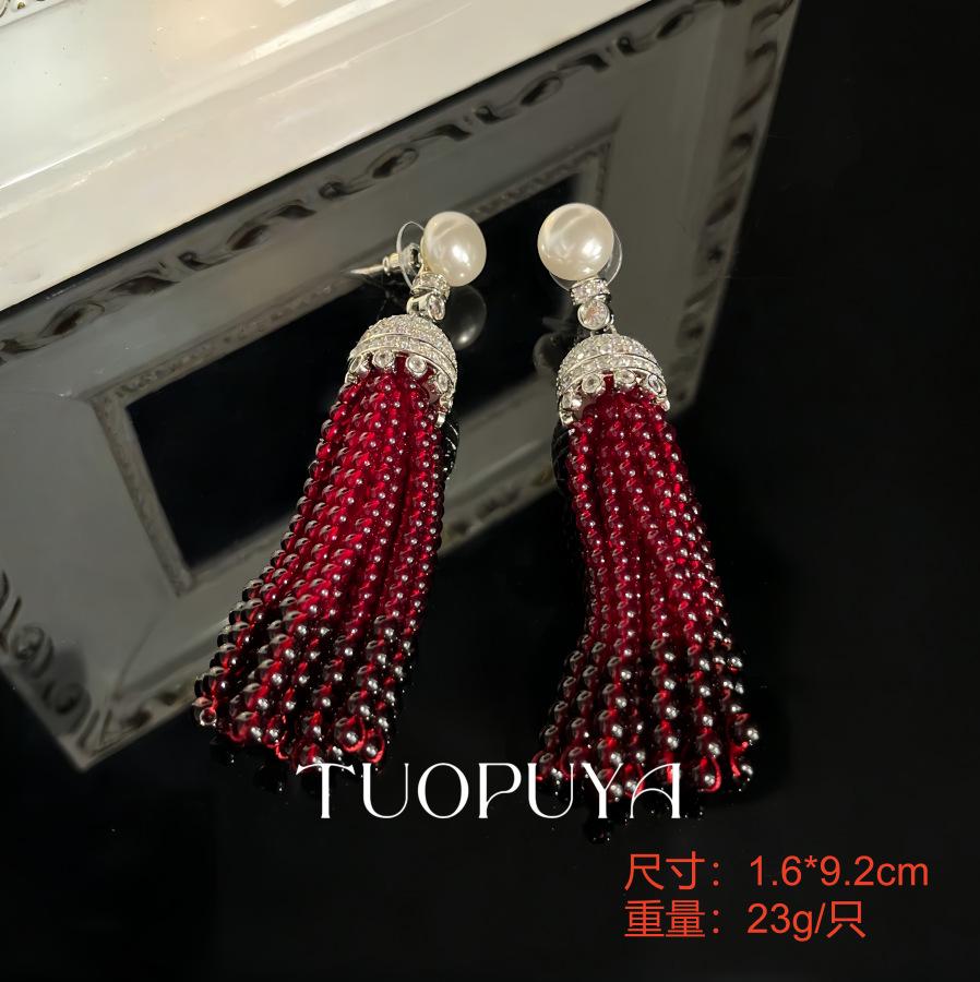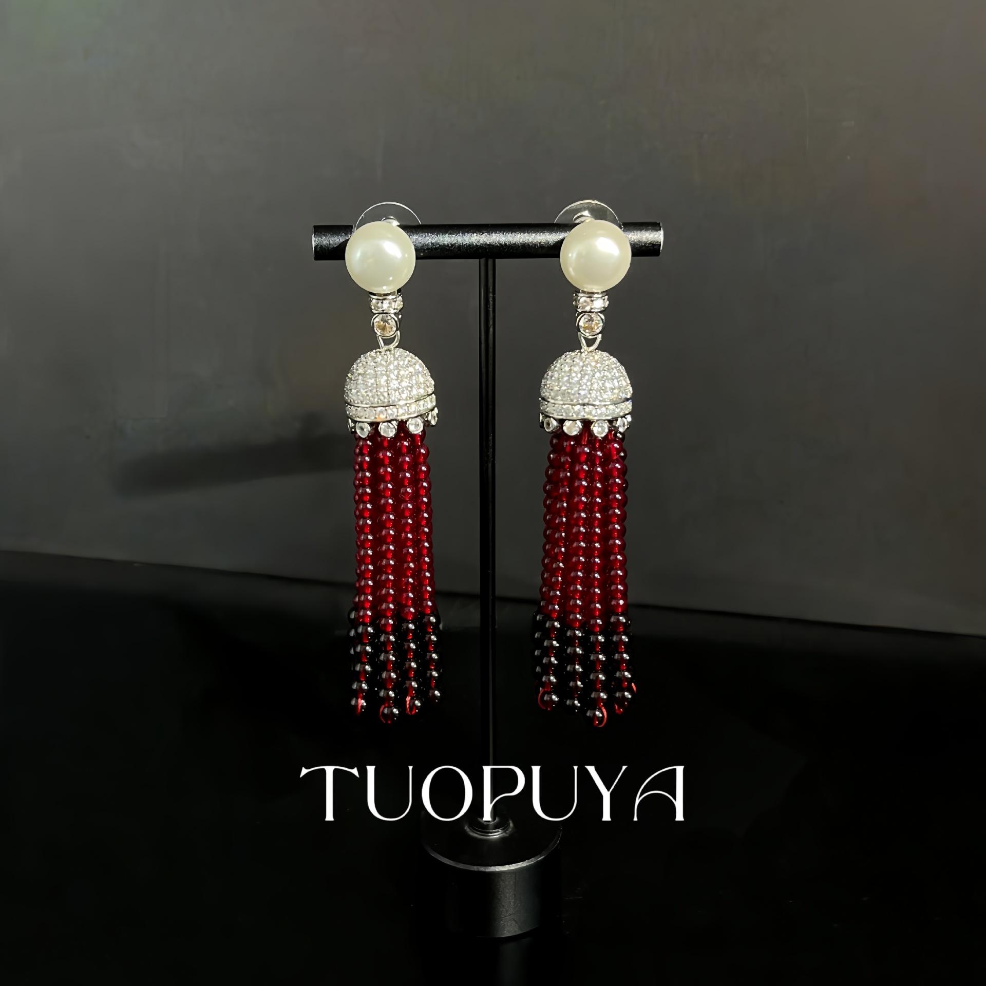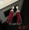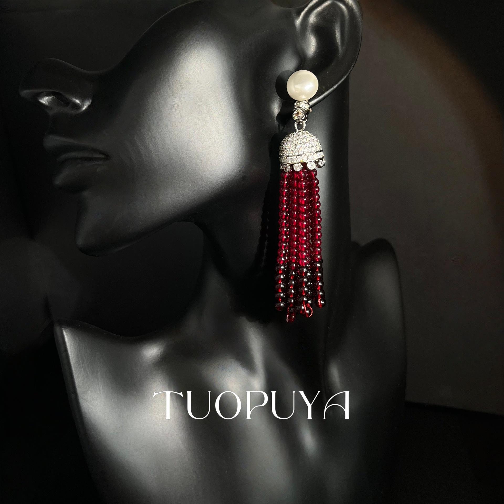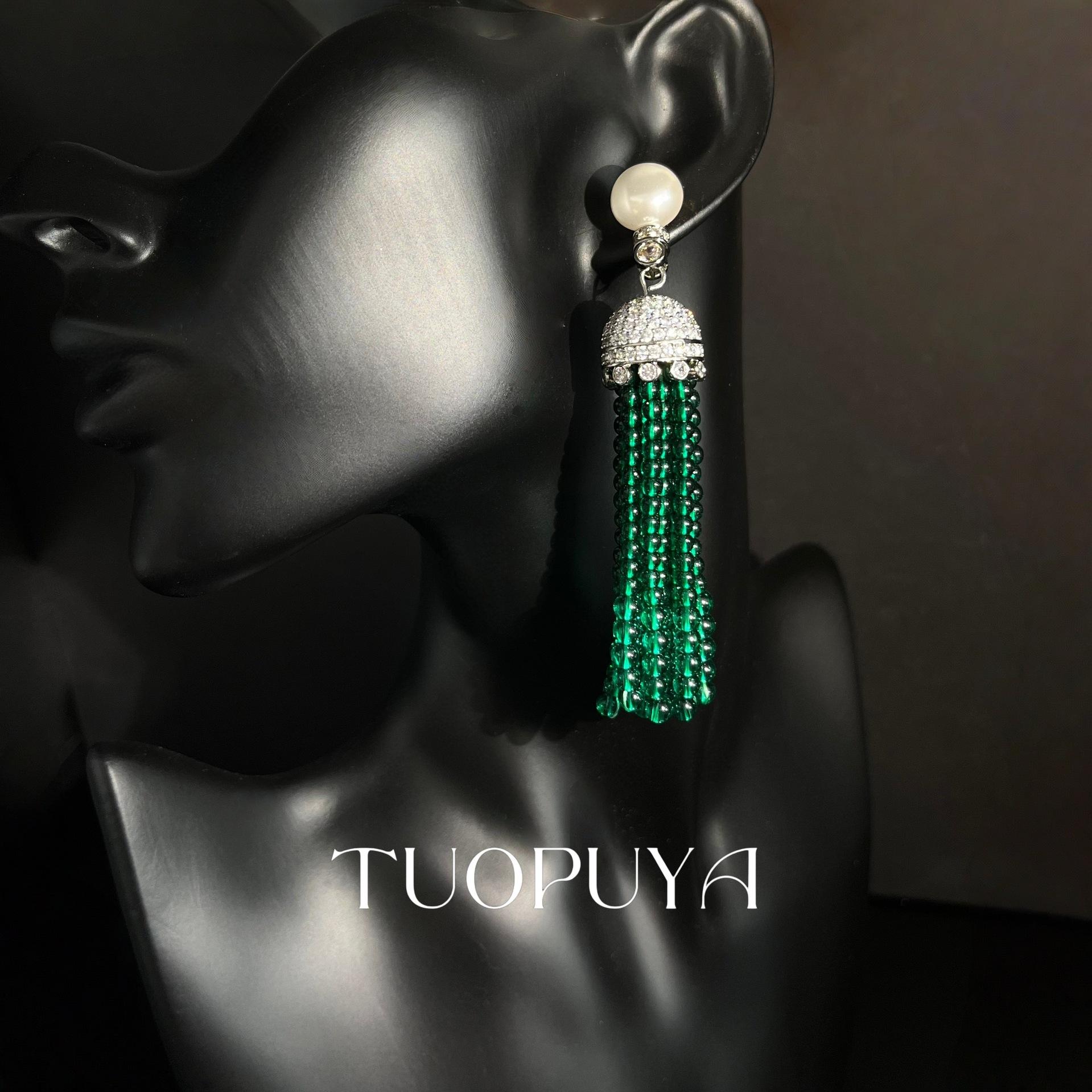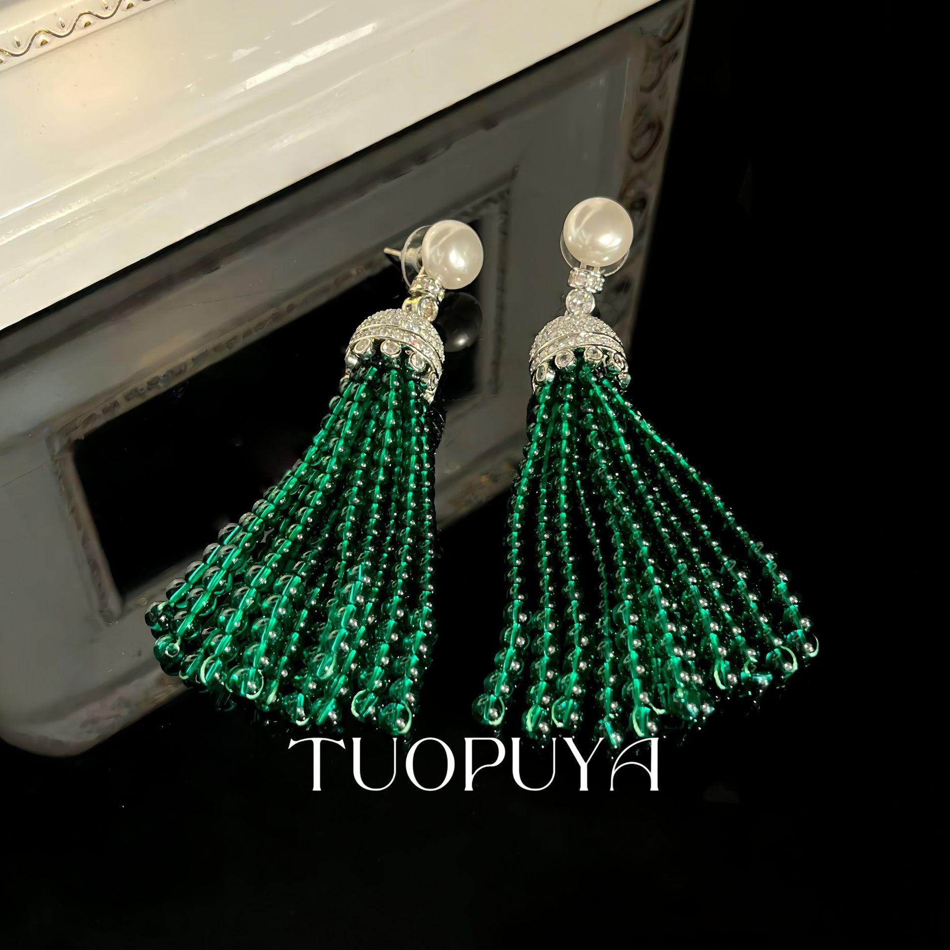 Exquisitos Aretes Largos con Circonita Incrustada de Lujo Ligero, Aretes Largos de Temperamento con Cuentas de Cristal Bicolor