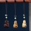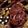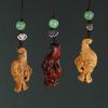Boj Palo de rosa Sándalo verde Plato de dragón del zodiaco tallado Dragón jugando con cuentas Colgante para teléfono móvil Decoración para bolso Llavero