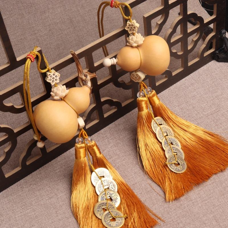 Open gourd pendant yellow rope, Closed gourd pendant yellow rope, Open gourd pendant red rope, Closed gourd pendant red rope