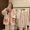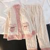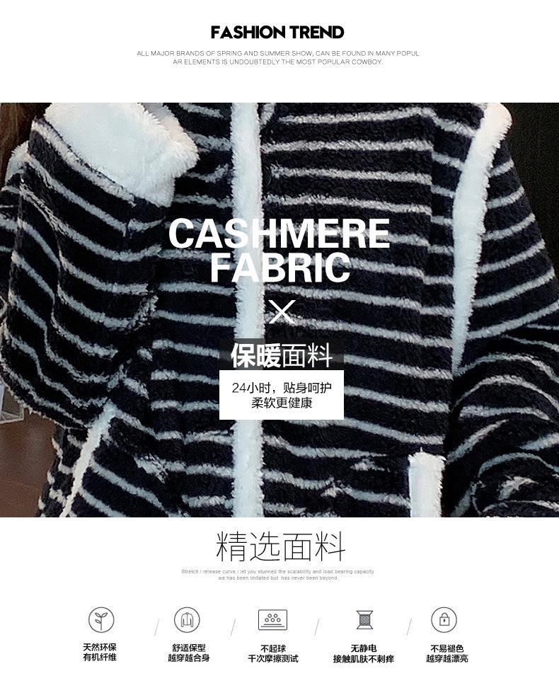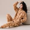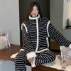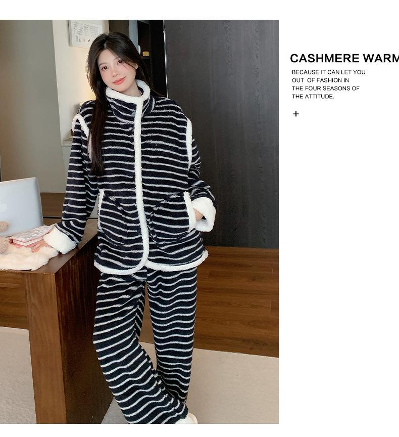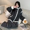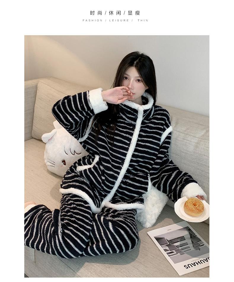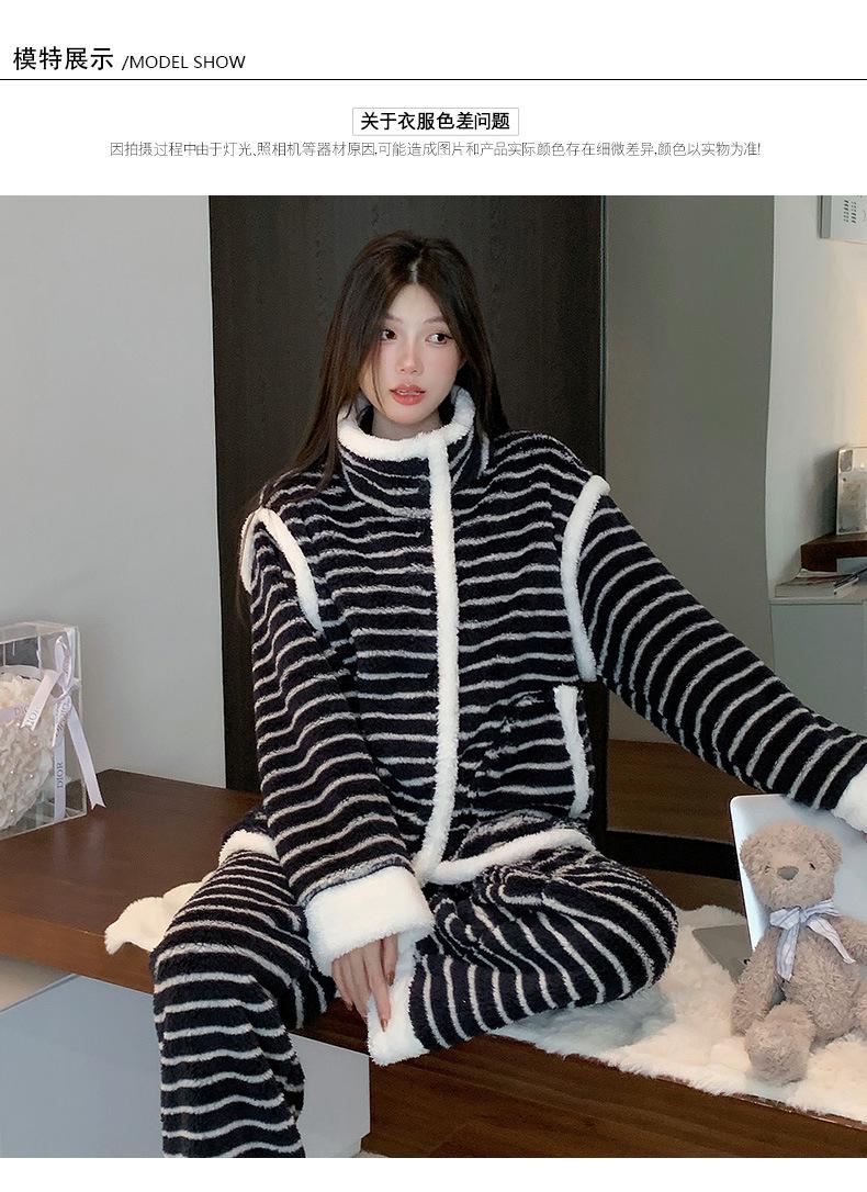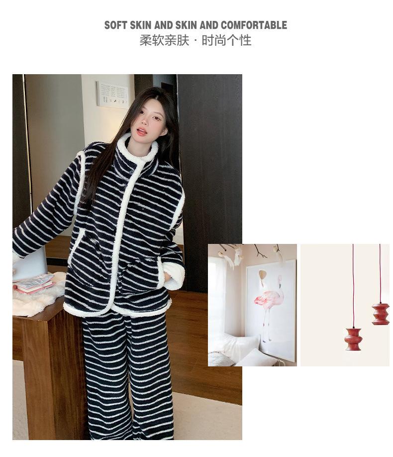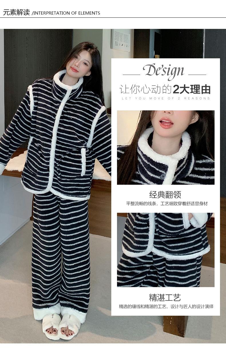 Ropa exterior de cuello alto a rayas para el hogar, de manga larga, plus terciopelo, grueso, pijama de forro polar de coral, nuevo para la temporada de otoño e invierno para mujer, conjunto cielo