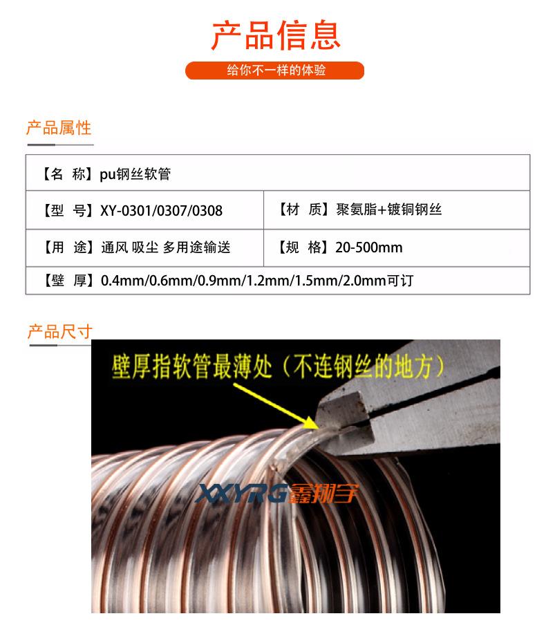 Manguera de alambre de acero PU (material importado) espesor de pared 0.6mm