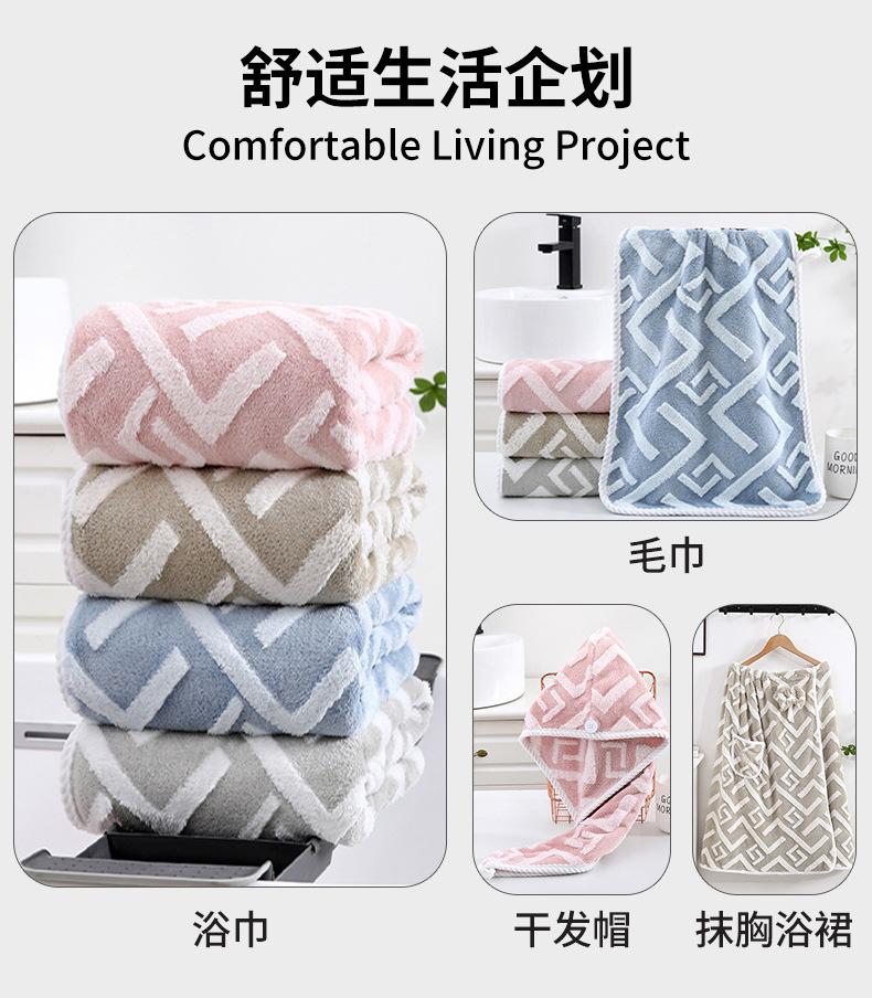 Toalla Nueva de Vellón Coral Suave a Rayas Textura Geométrica Absorbente No Suelta Pelo Toalla Estilo Pareja para el Hogar Venta al por Mayor