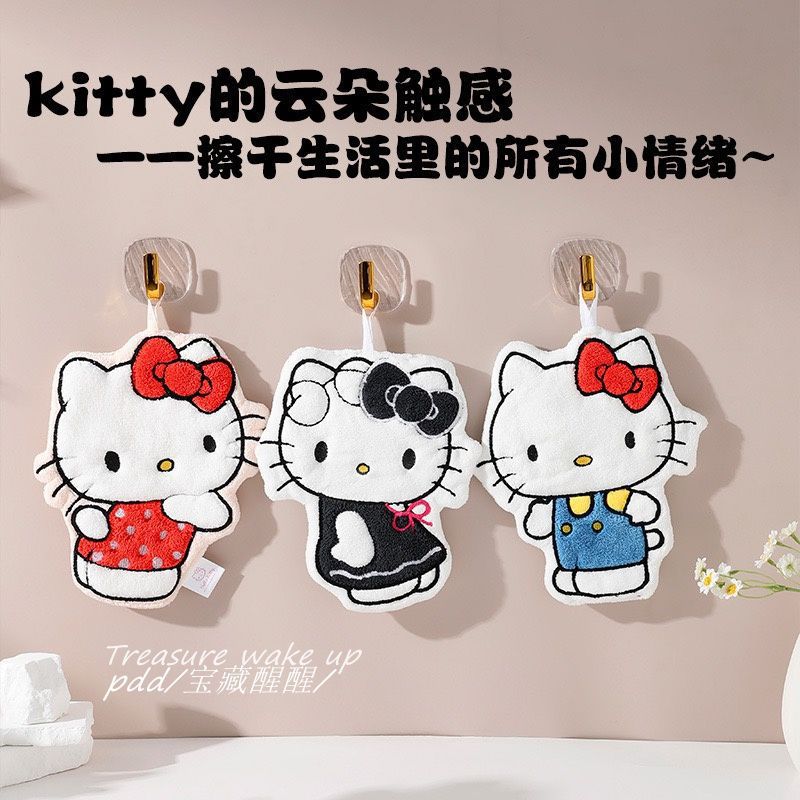 Toalla de Mano Infantil Linda de Dibujos Animados KT Cat Doble Capa de Vellón Coral Toalla de Mano Cocina Toalla Gruesa Absorbente de Agua de Secado Rápido