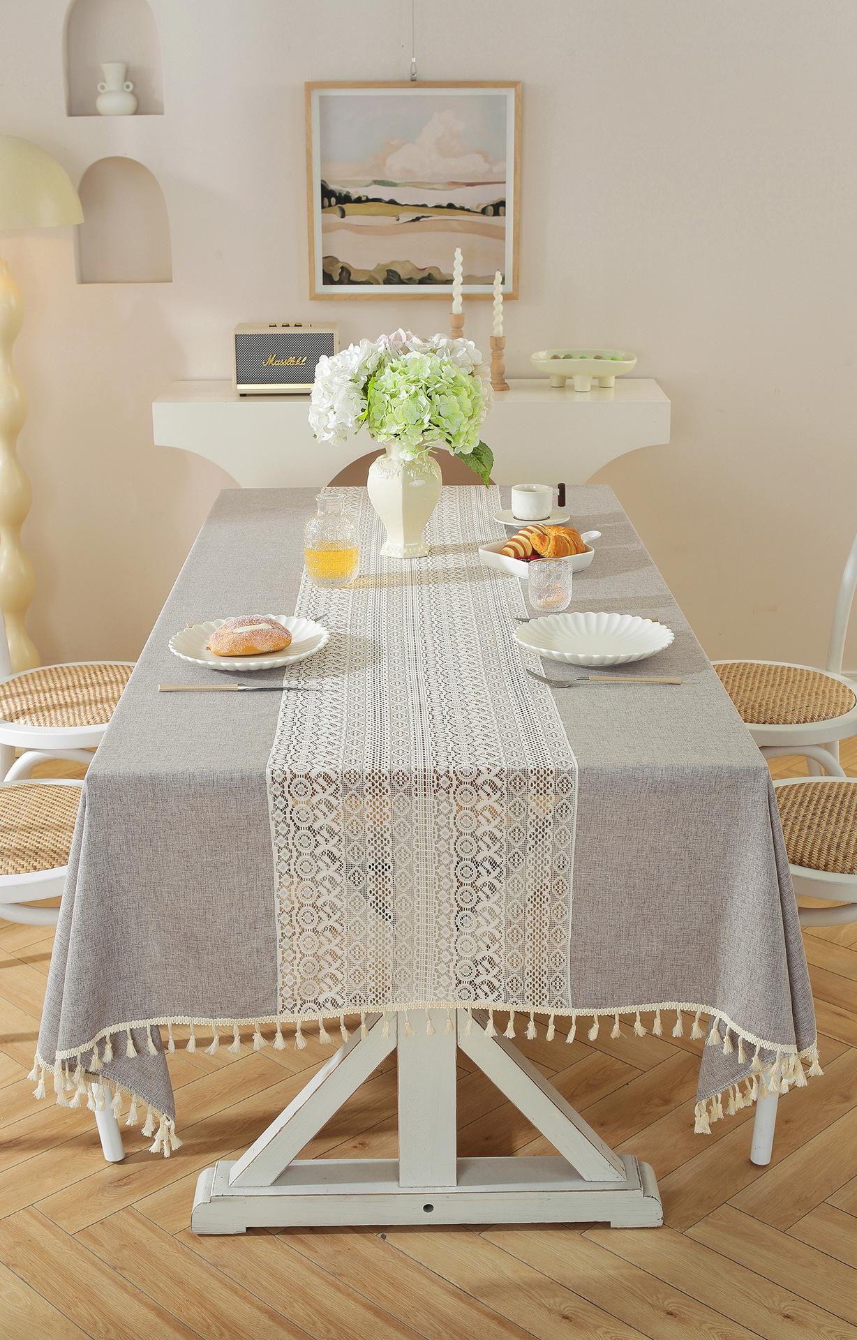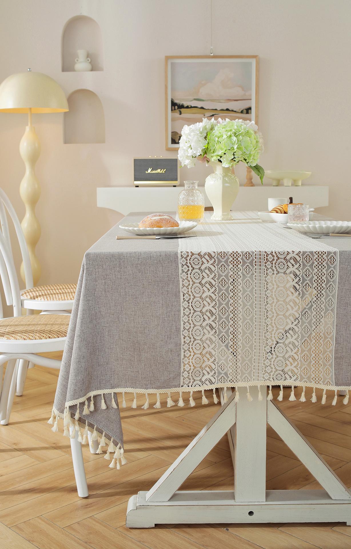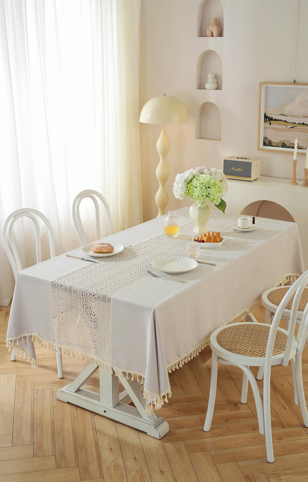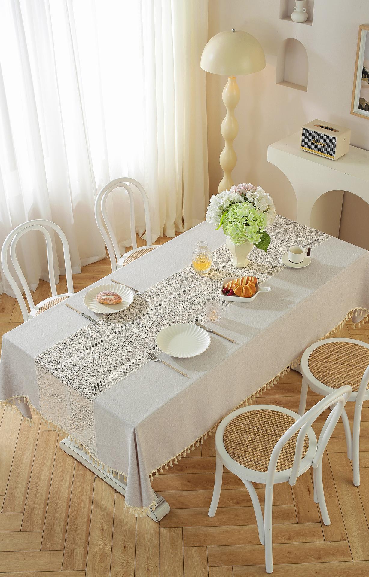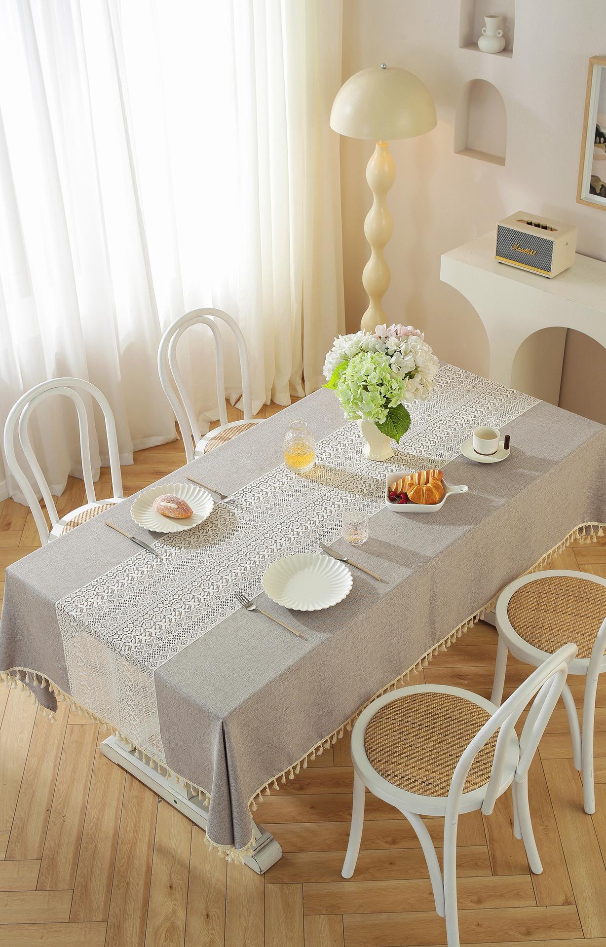 Mantel Transfronterizo Poliéster Lino Simple Temperamento Calado Patchwork Rectangular Sensación de Alta Gama Retro Mesa de Centro Mesa de Comedor Cubrepaño En Stock