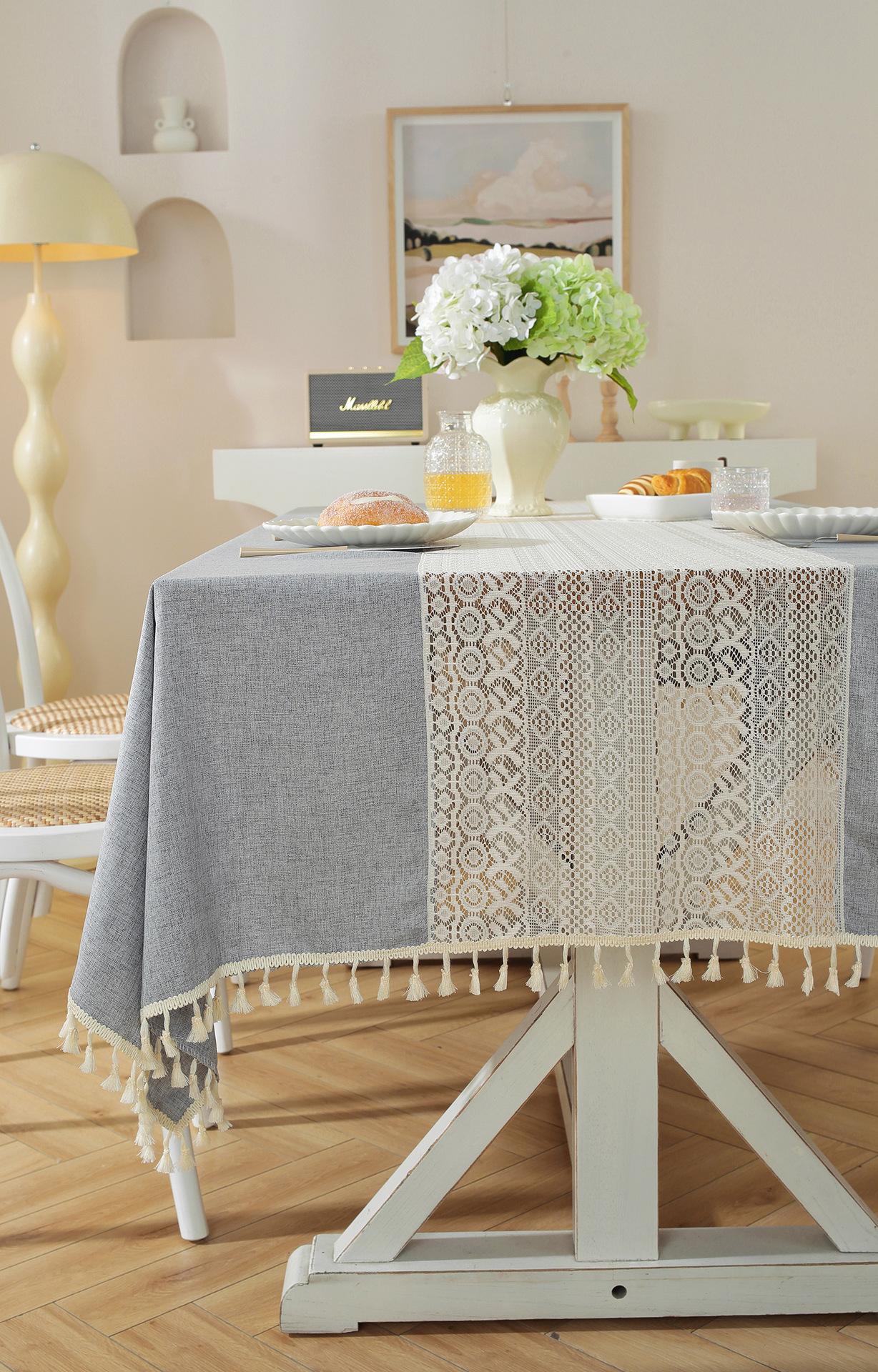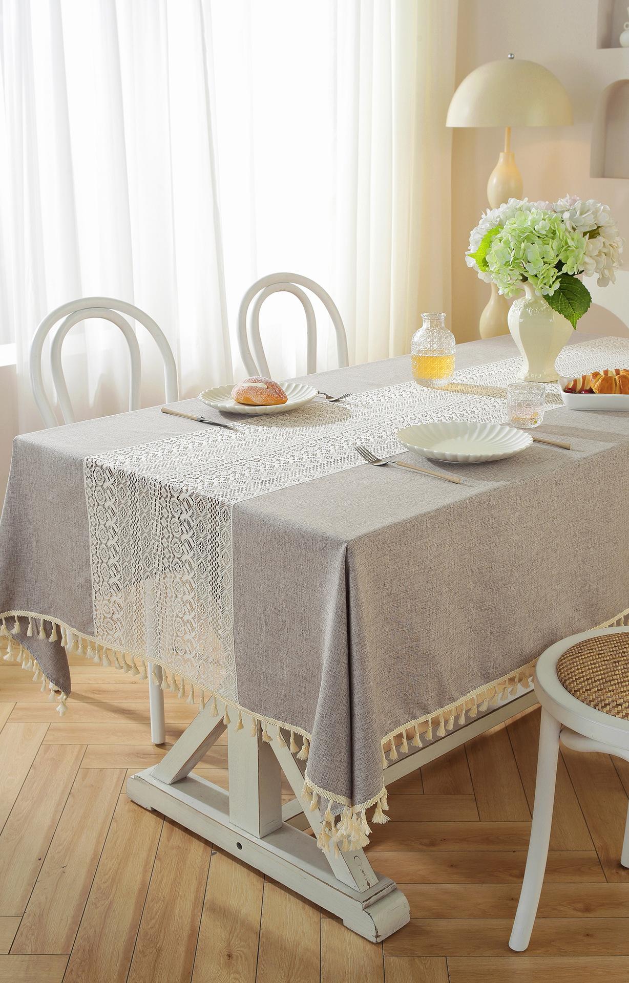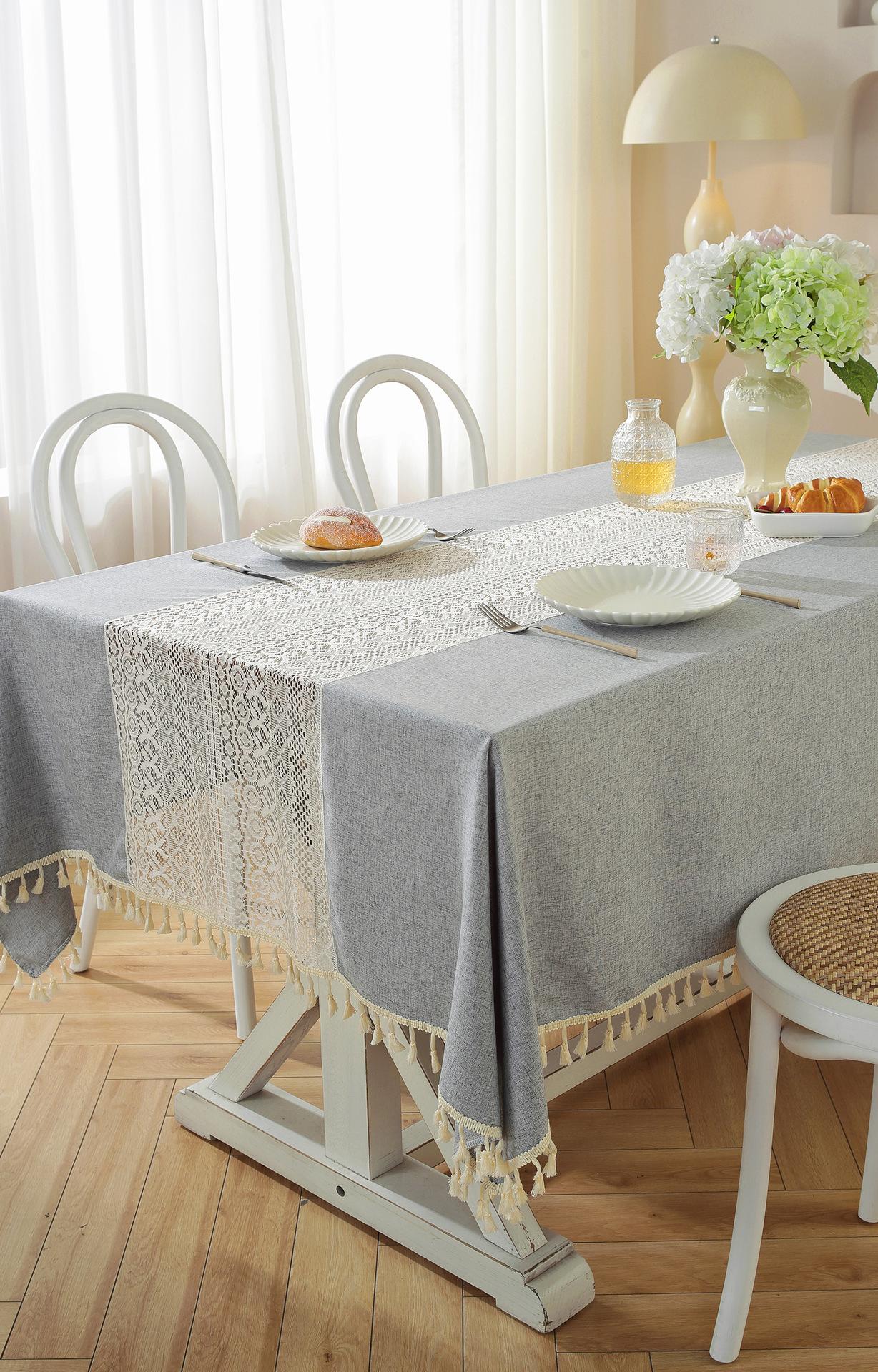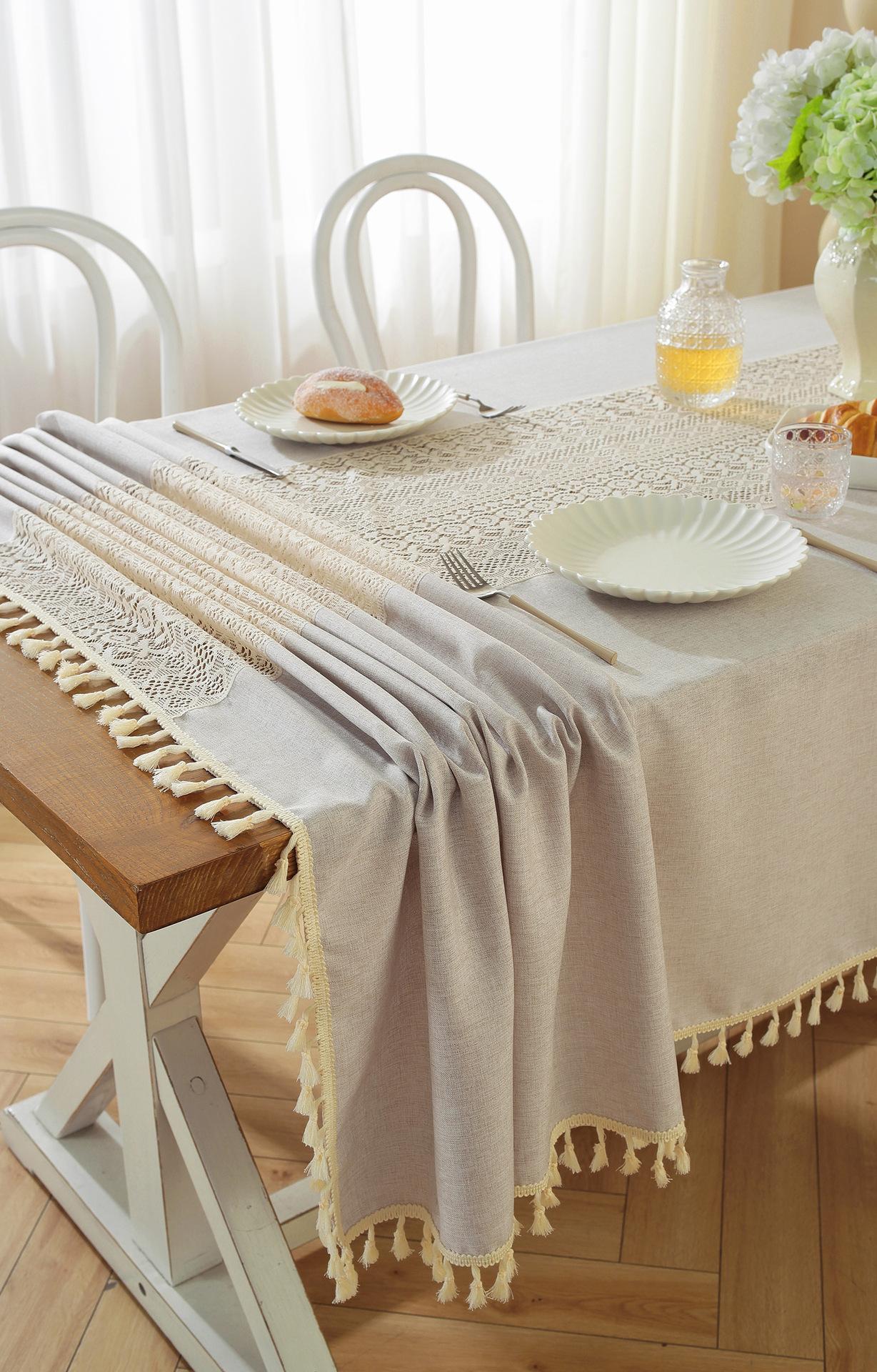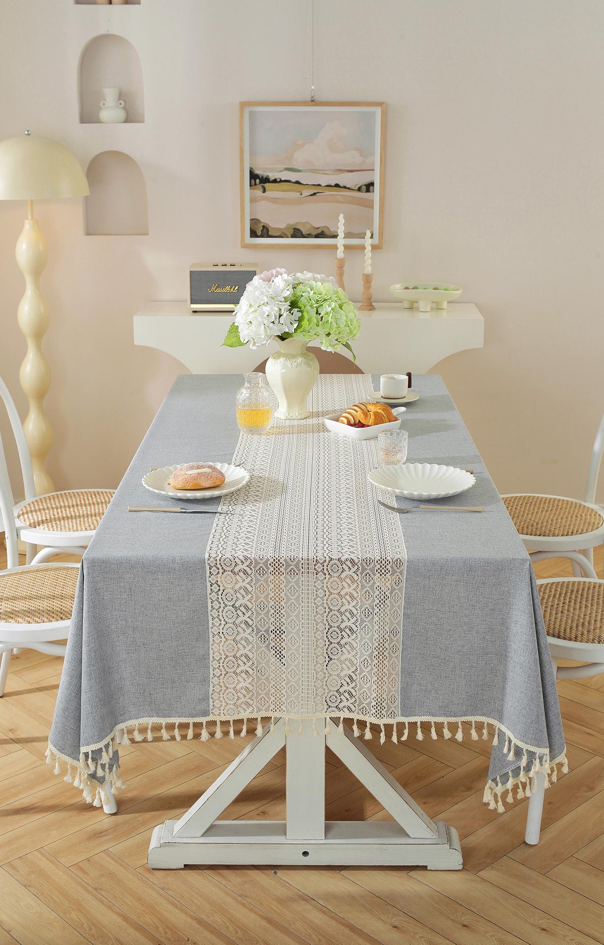 Mantel Transfronterizo Poliéster Lino Simple Temperamento Calado Patchwork Rectangular Sensación de Alta Gama Retro Mesa de Centro Mesa de Comedor Cubrepaño En Stock