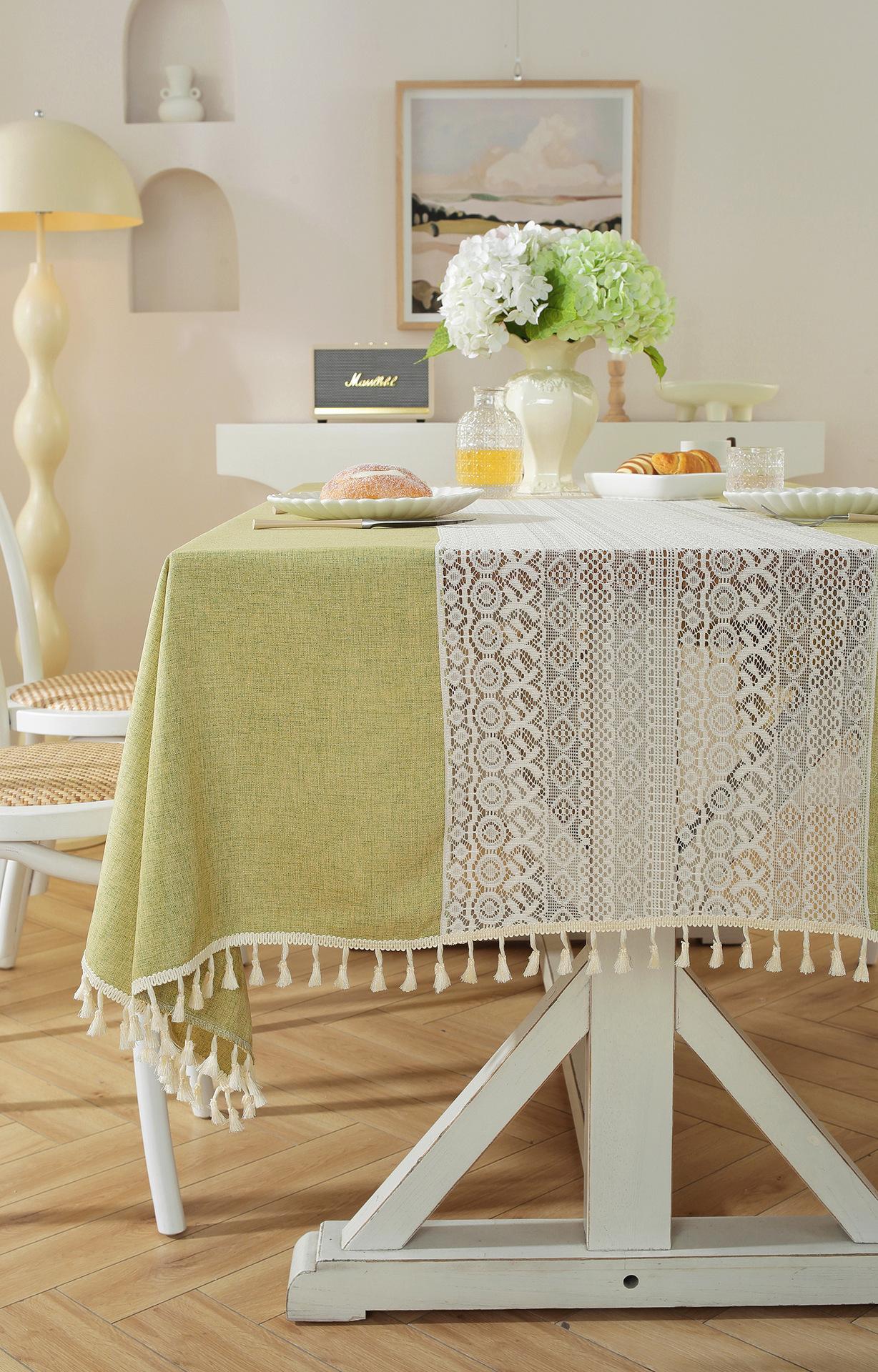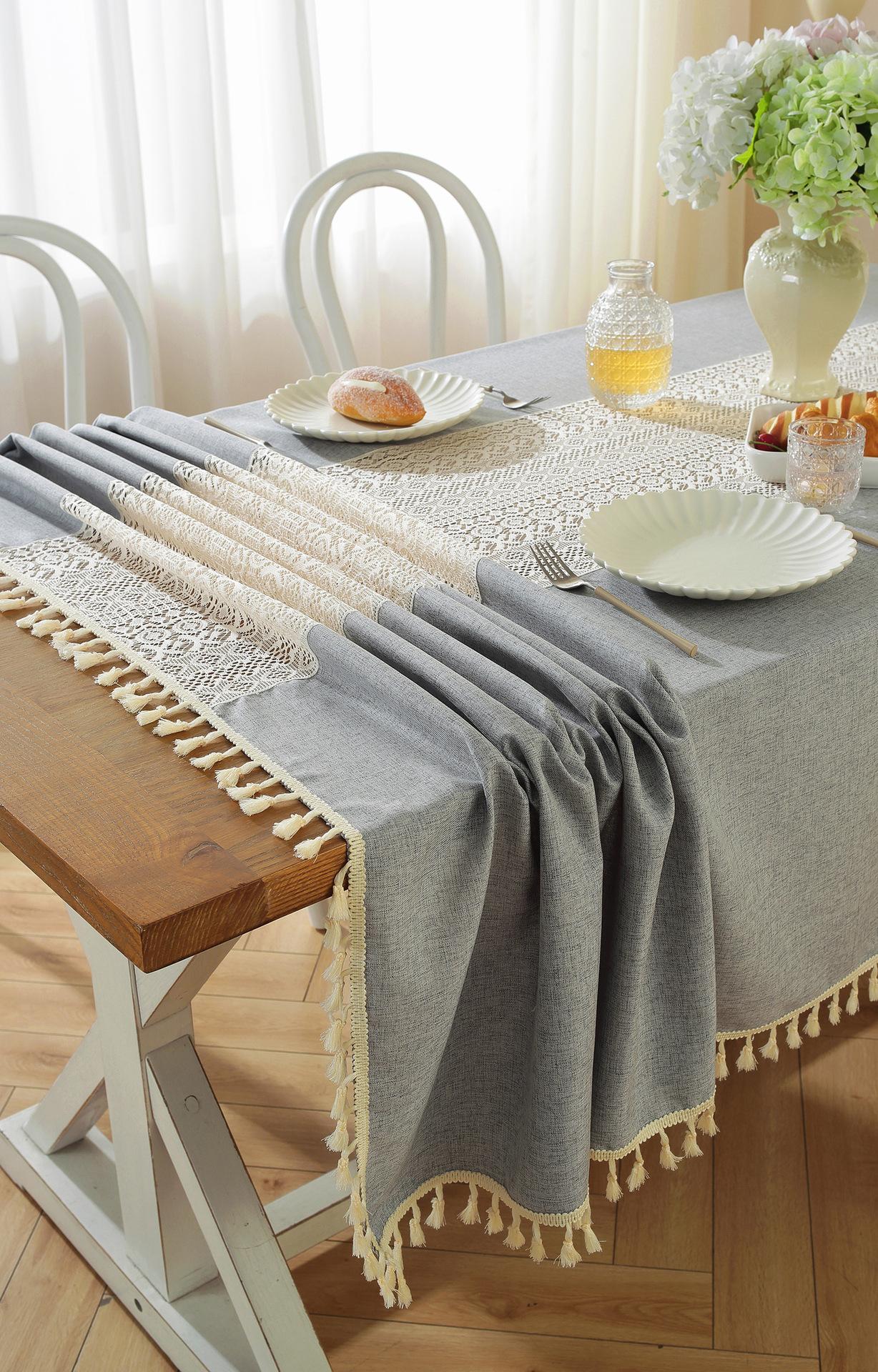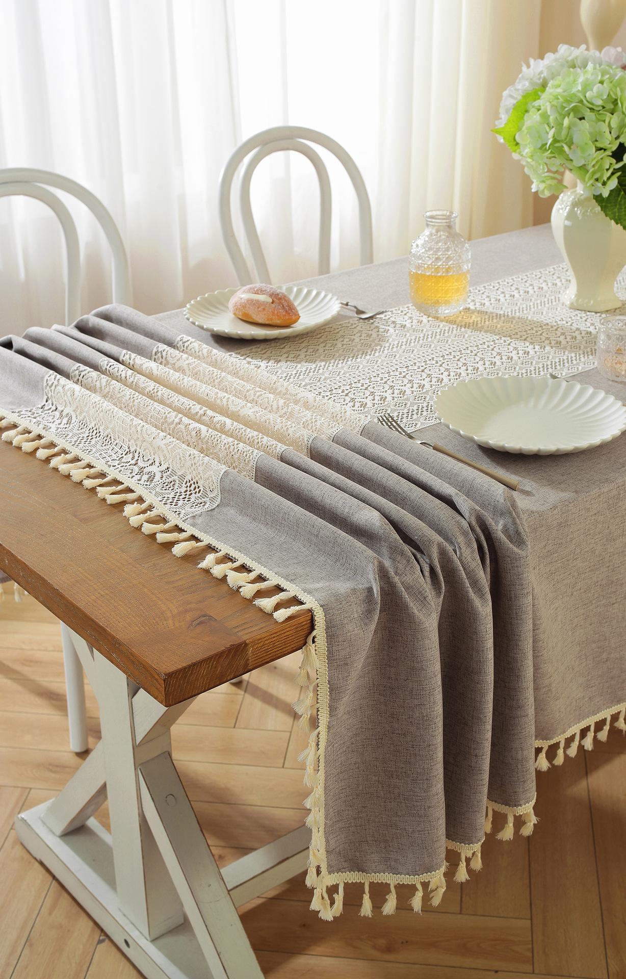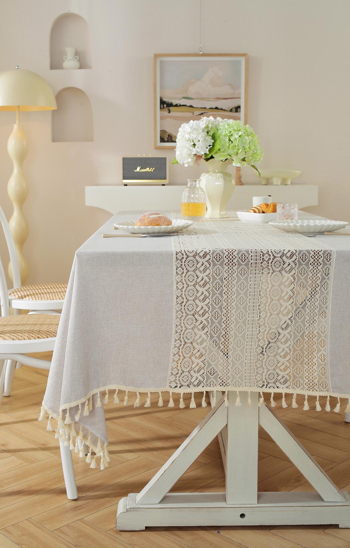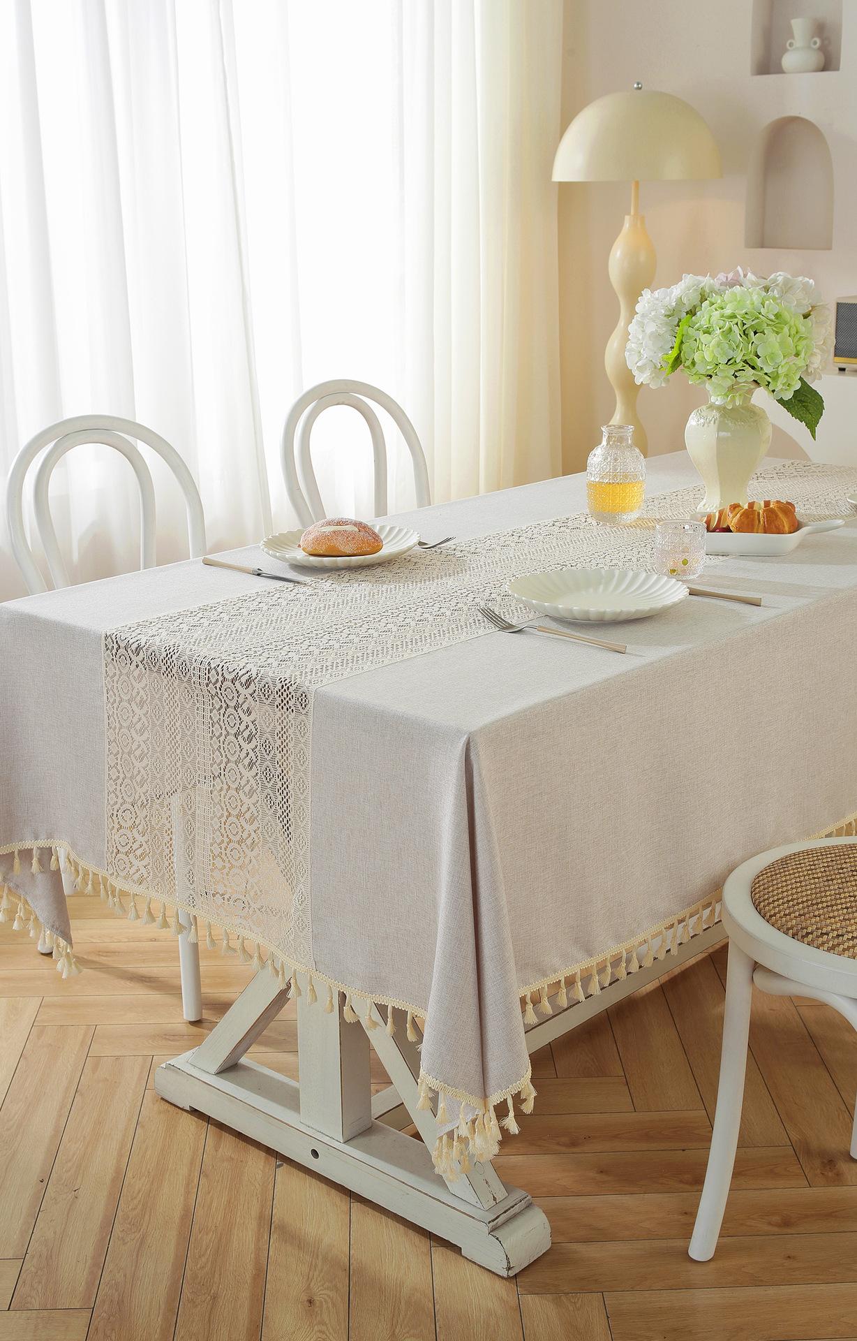 Mantel Transfronterizo Poliéster Lino Simple Temperamento Calado Patchwork Rectangular Sensación de Alta Gama Retro Mesa de Centro Mesa de Comedor Cubrepaño En Stock