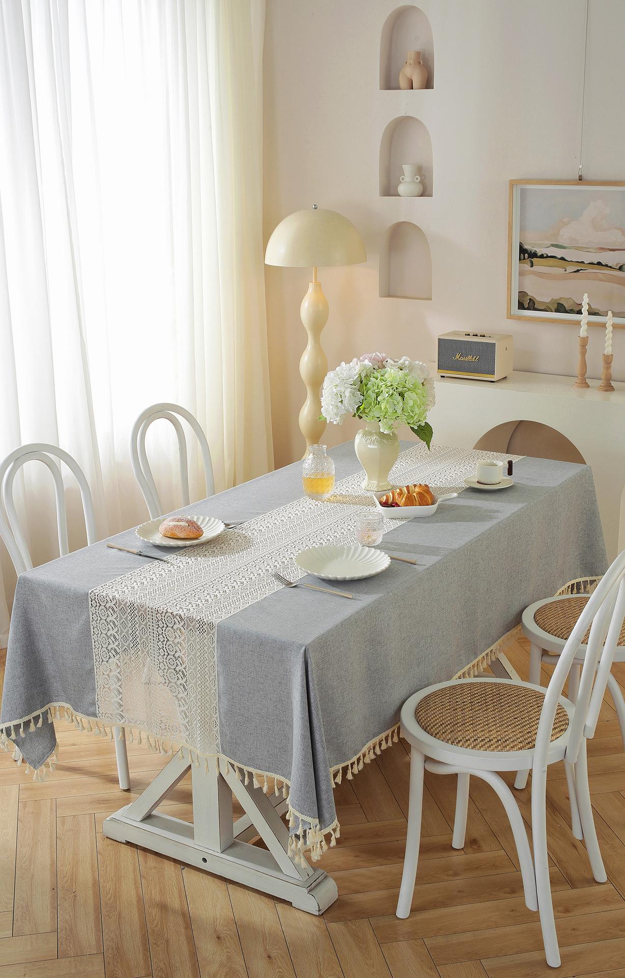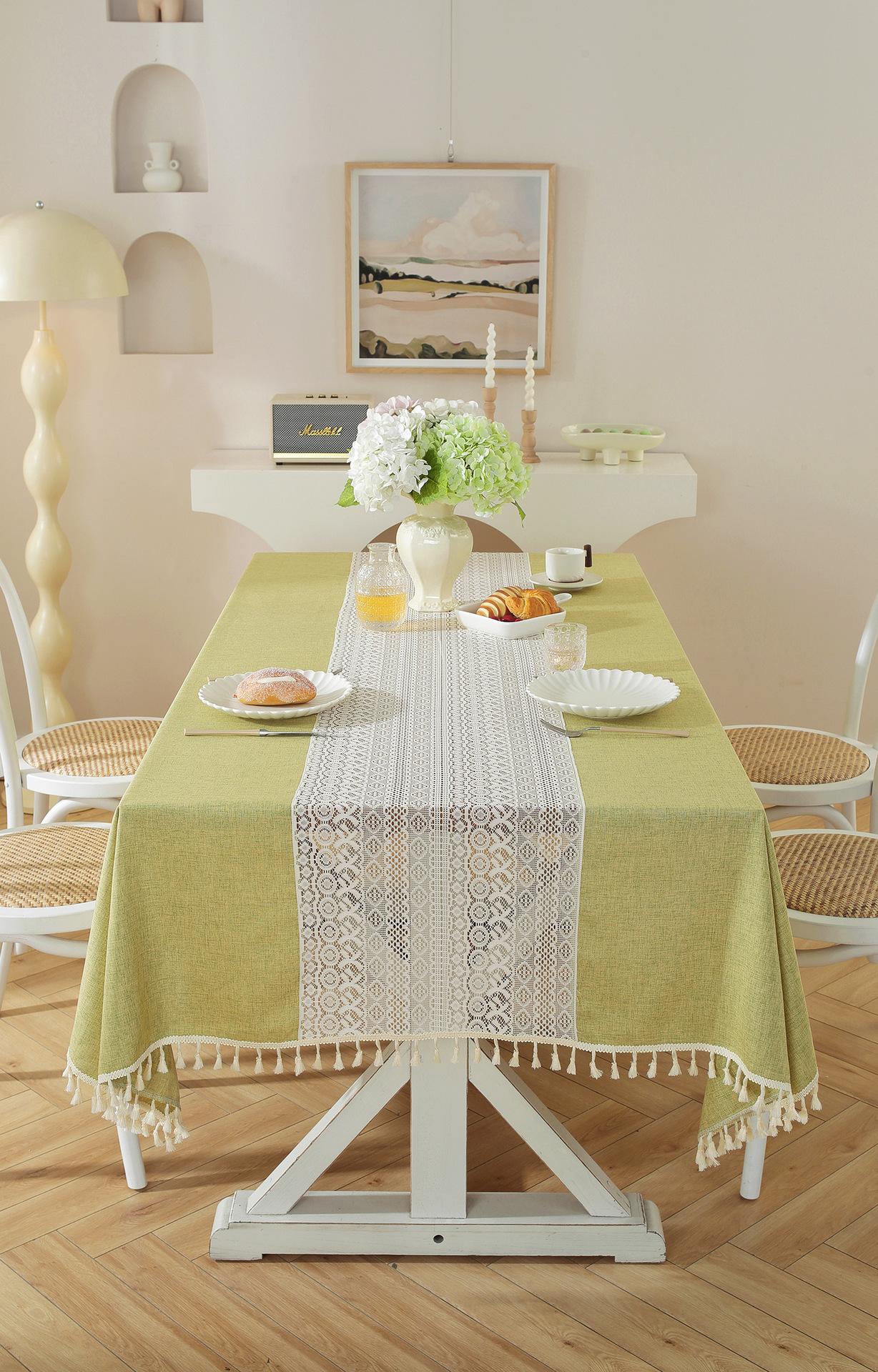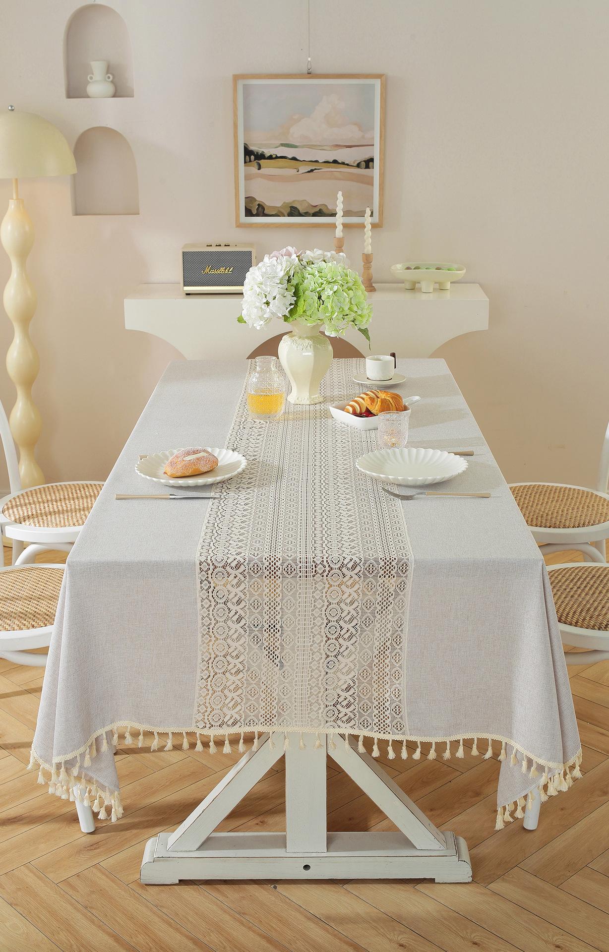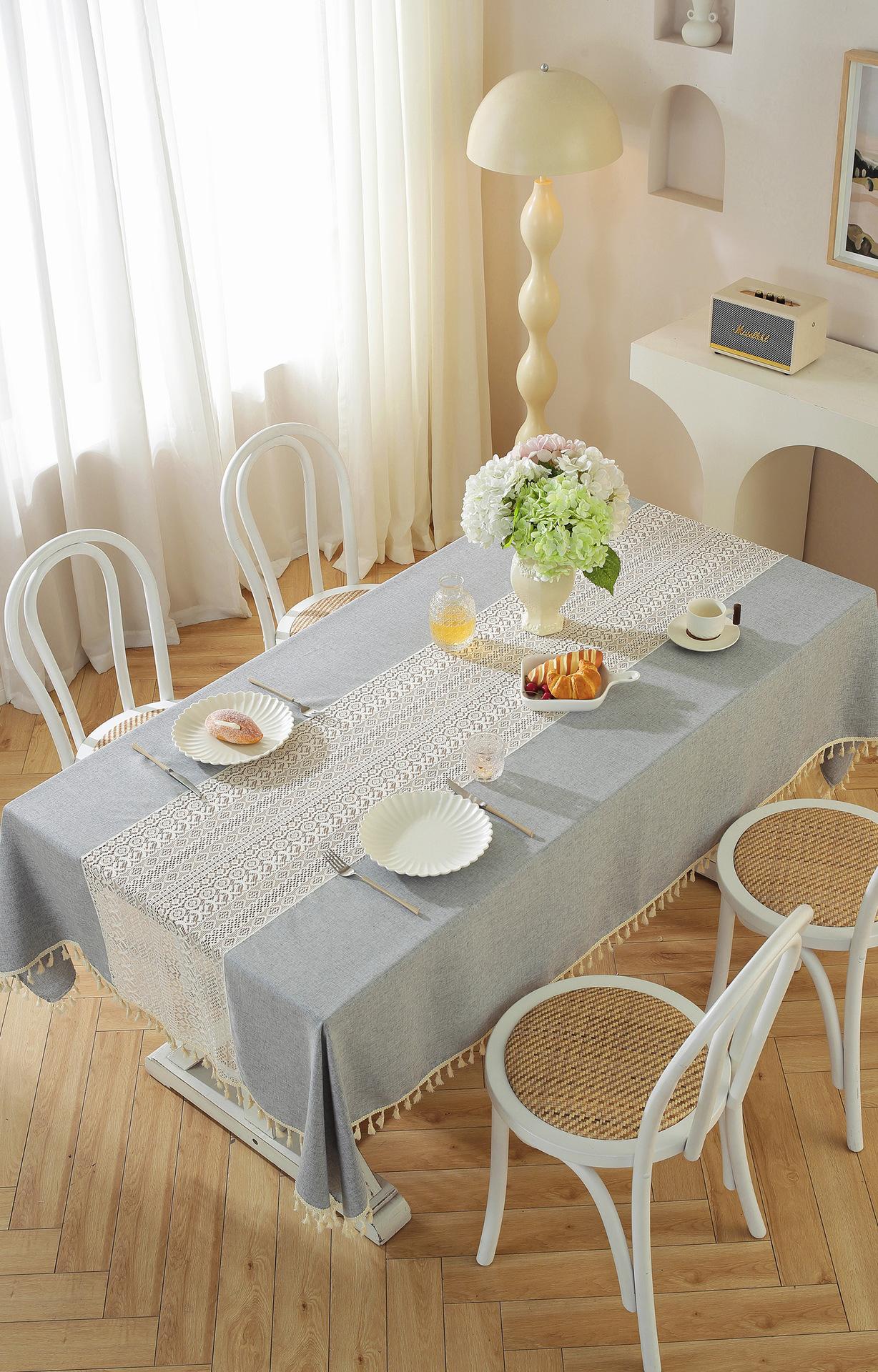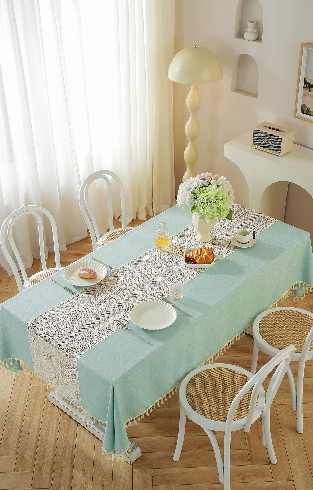 Mantel Transfronterizo Poliéster Lino Simple Temperamento Calado Patchwork Rectangular Sensación de Alta Gama Retro Mesa de Centro Mesa de Comedor Cubrepaño En Stock