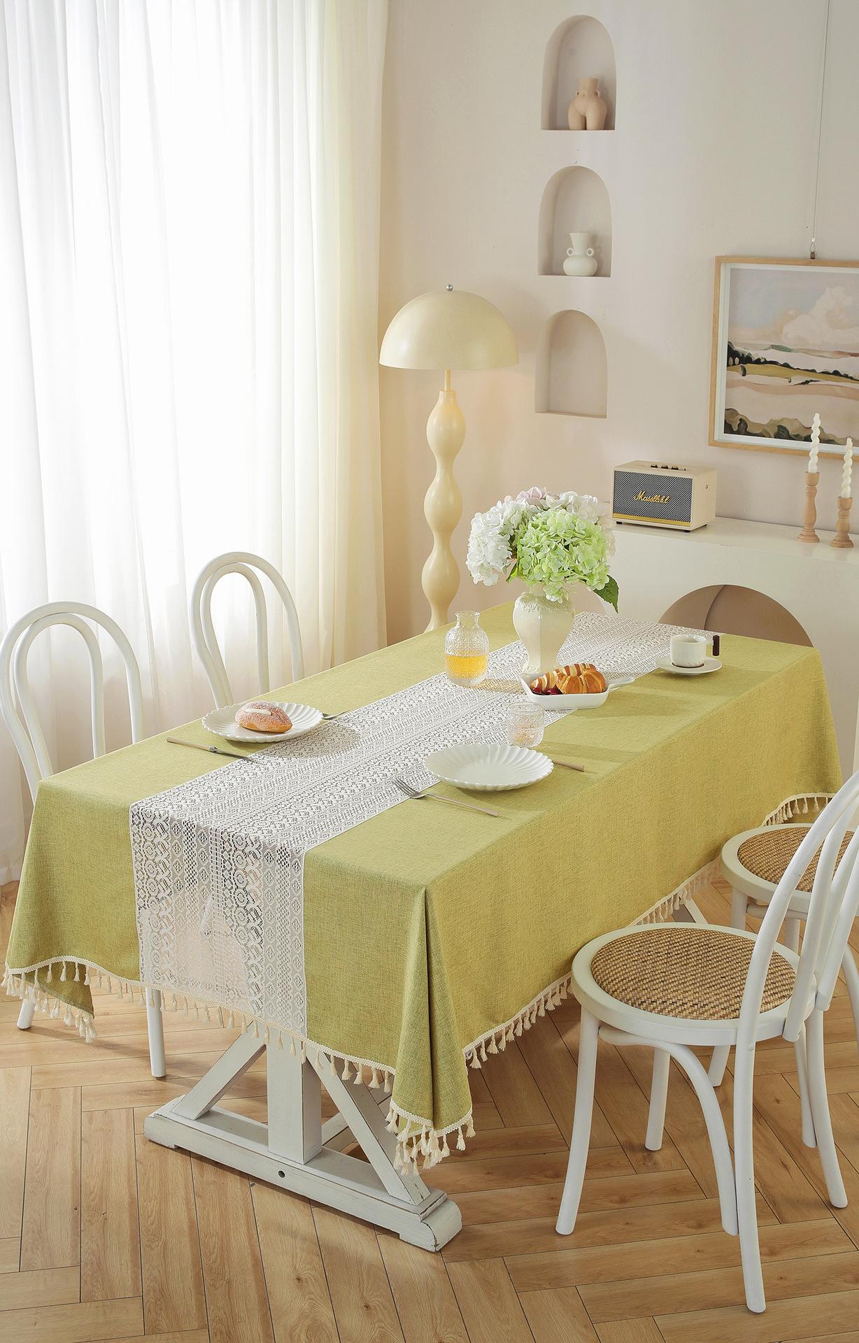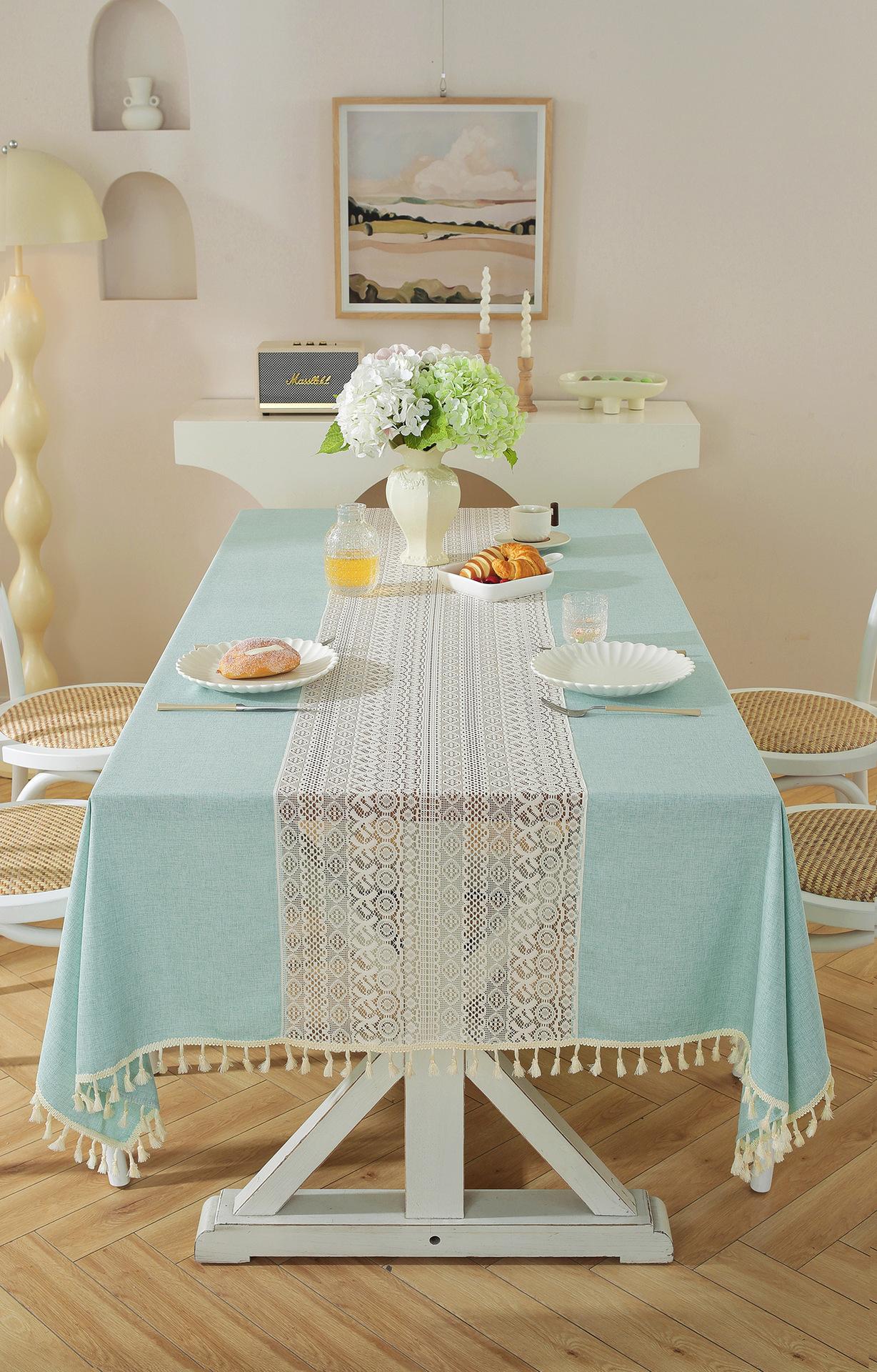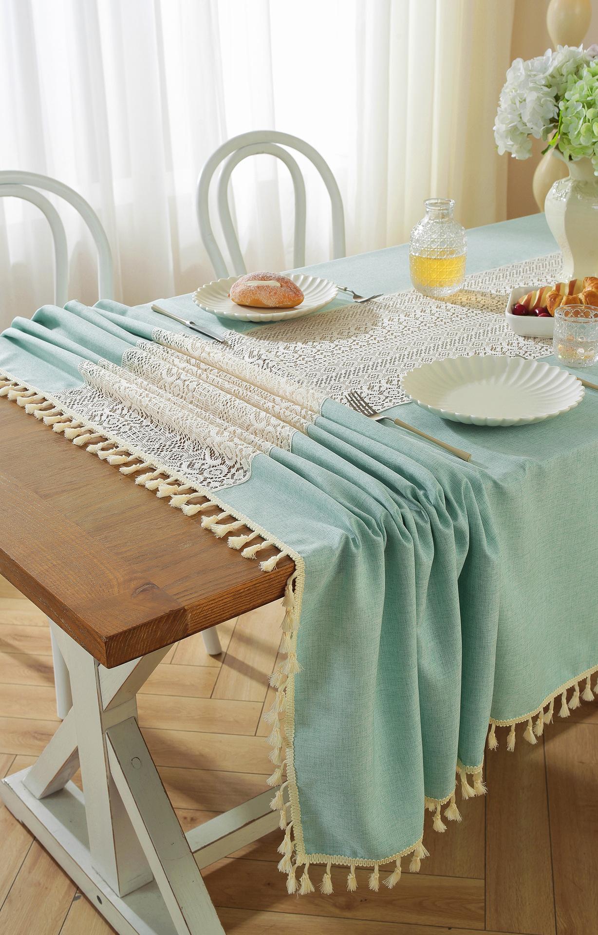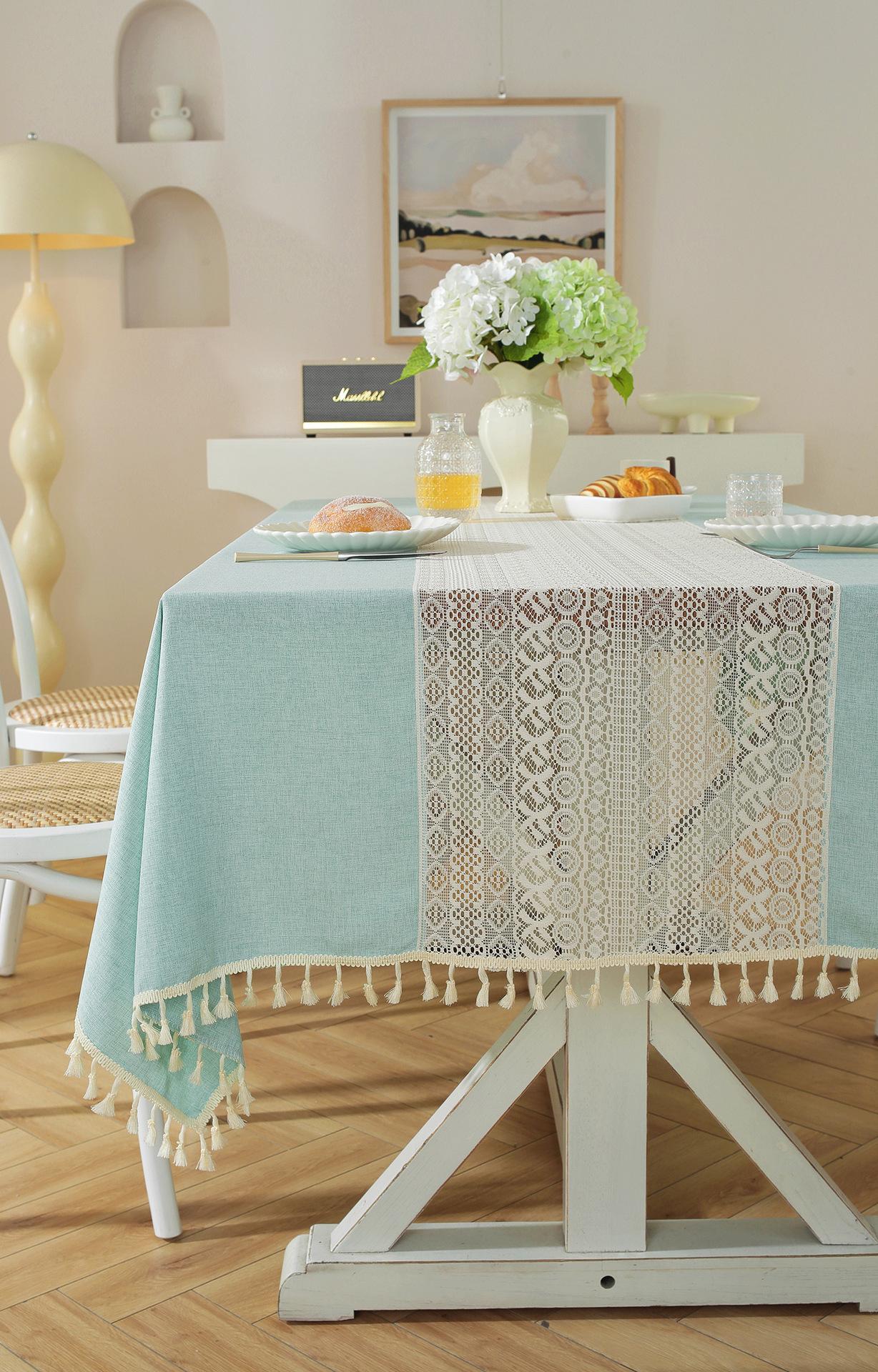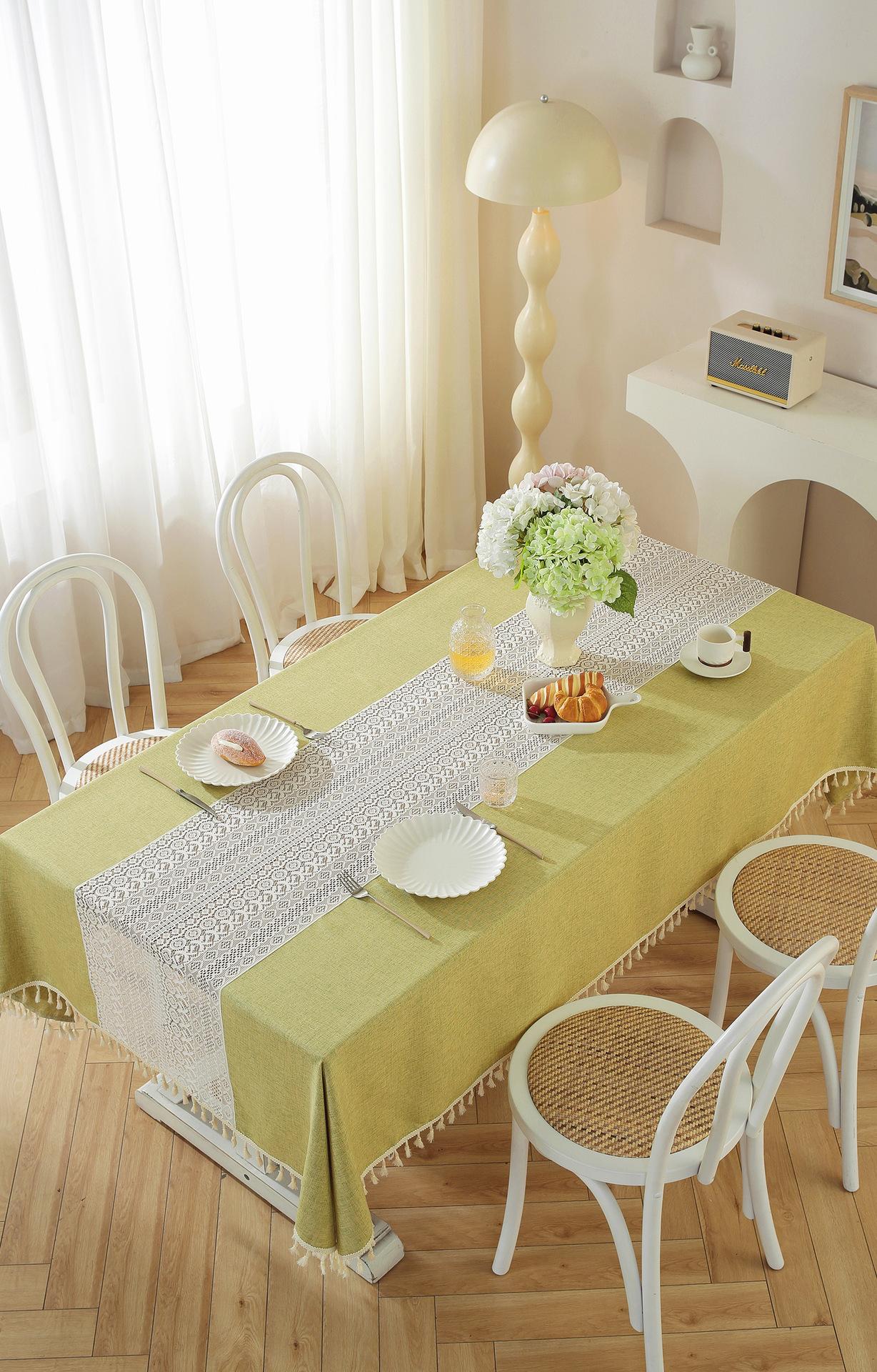 Mantel Transfronterizo Poliéster Lino Simple Temperamento Calado Patchwork Rectangular Sensación de Alta Gama Retro Mesa de Centro Mesa de Comedor Cubrepaño En Stock