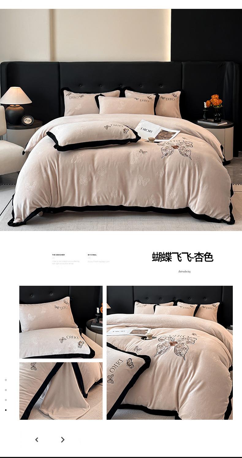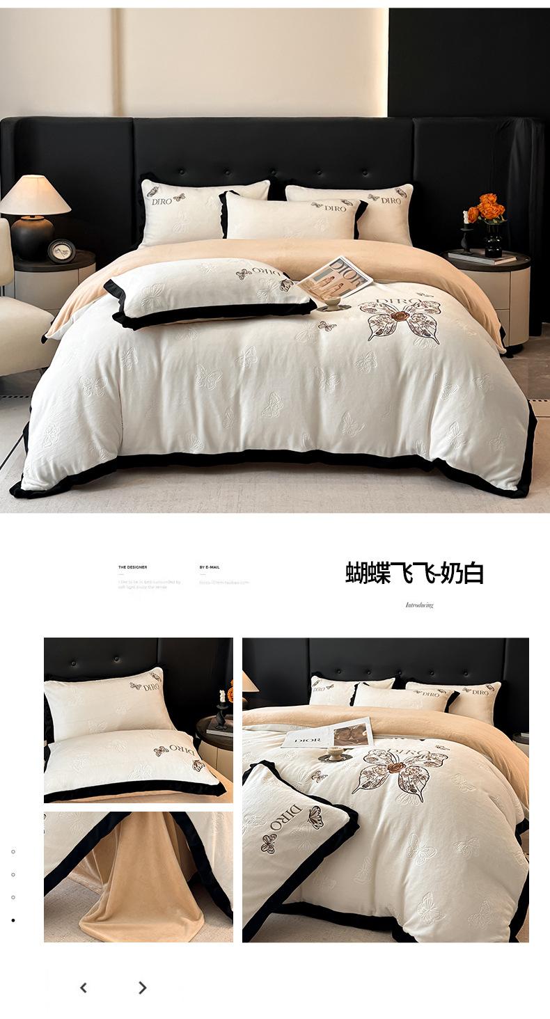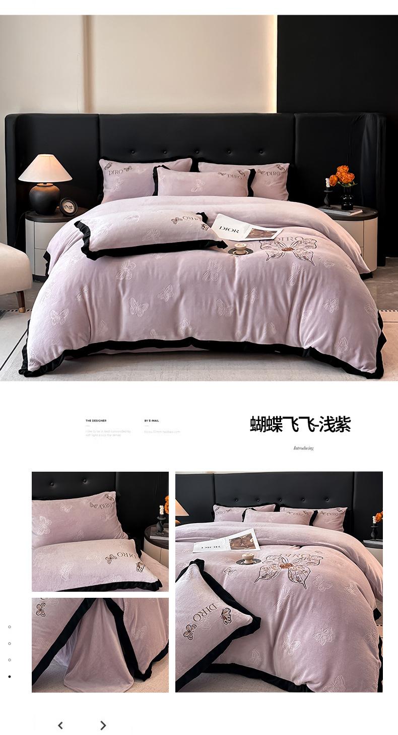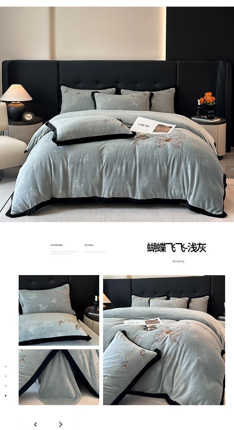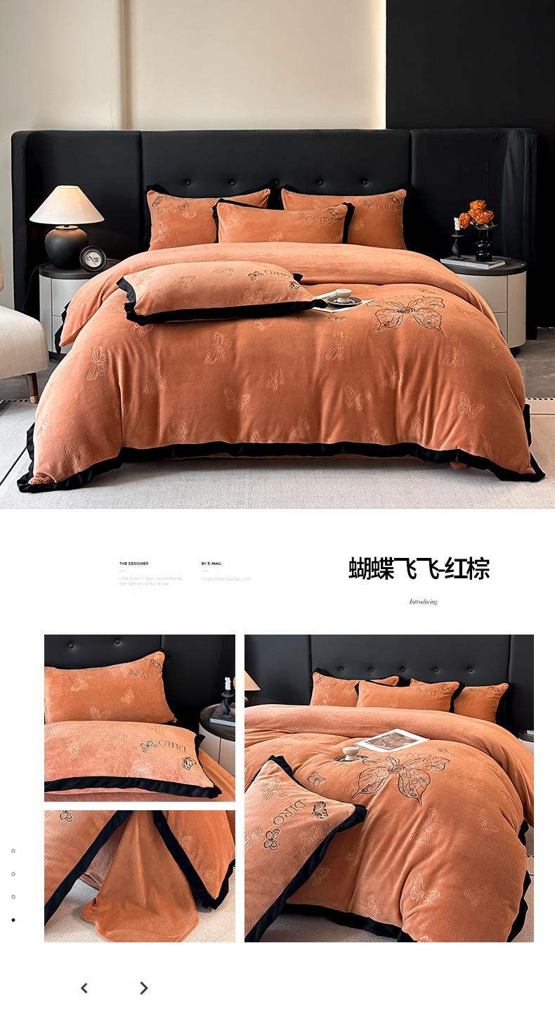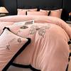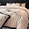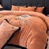 Juego de tres o cuatro piezas de terciopelo de leche de color sólido engrosado, fresco, doble empalmado, invierno, forro polar de coral, forro polar de doble cara, estilo sábana, juego de cuatro piezas