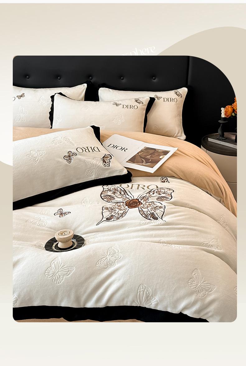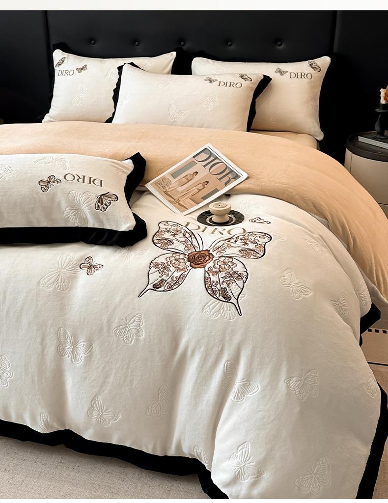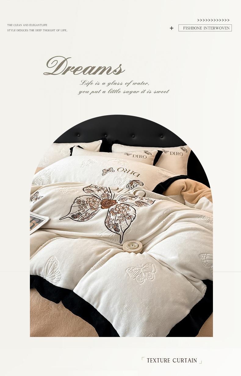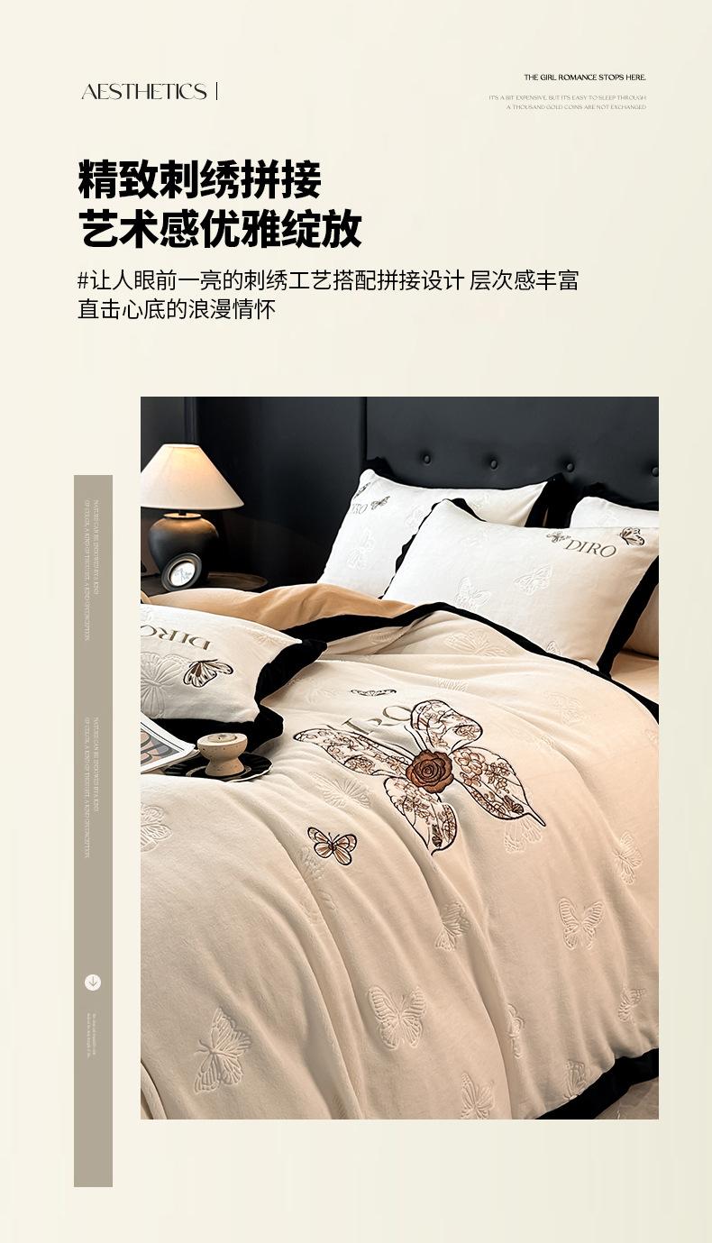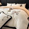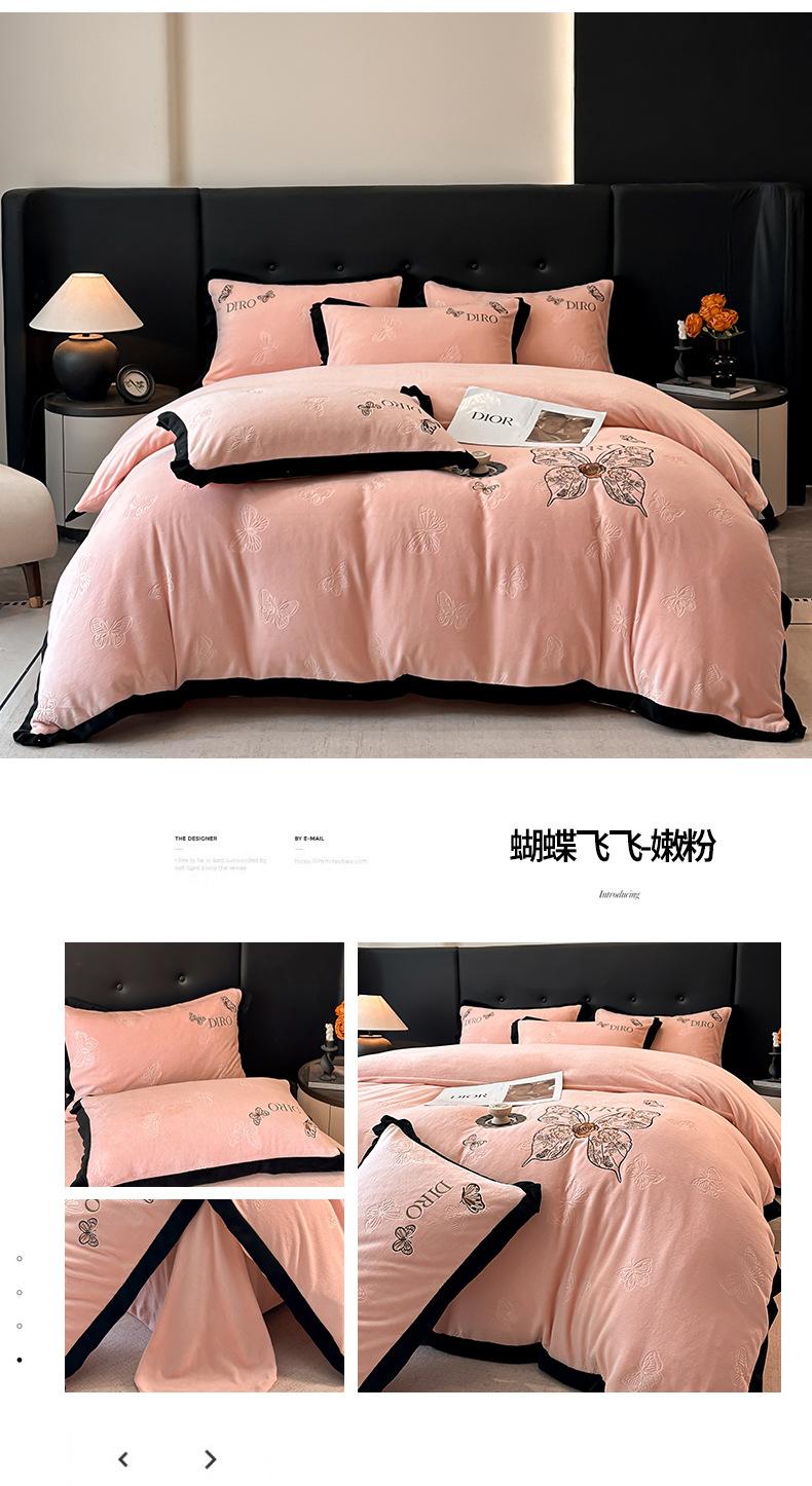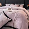 Juego de tres o cuatro piezas de terciopelo de leche de color sólido engrosado, fresco, doble empalmado, invierno, forro polar de coral, forro polar de doble cara, estilo sábana, juego de cuatro piezas