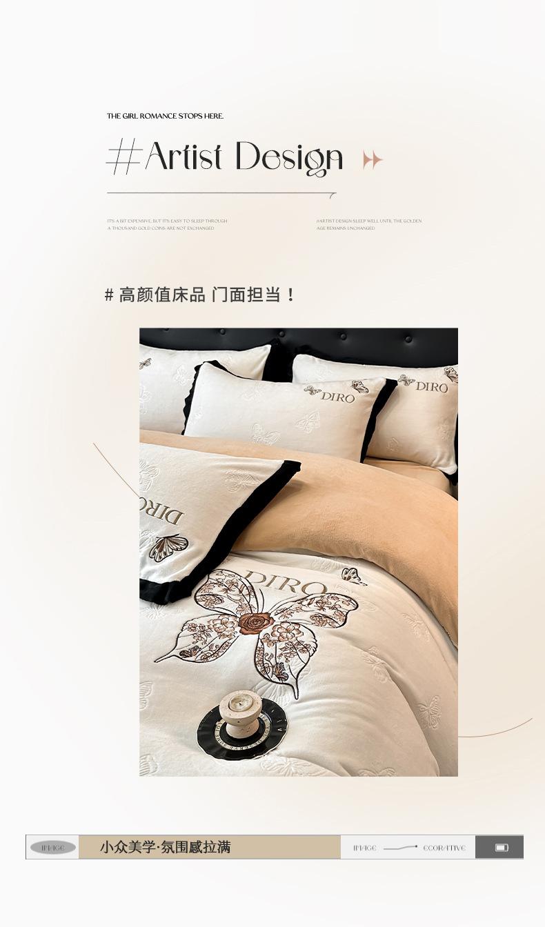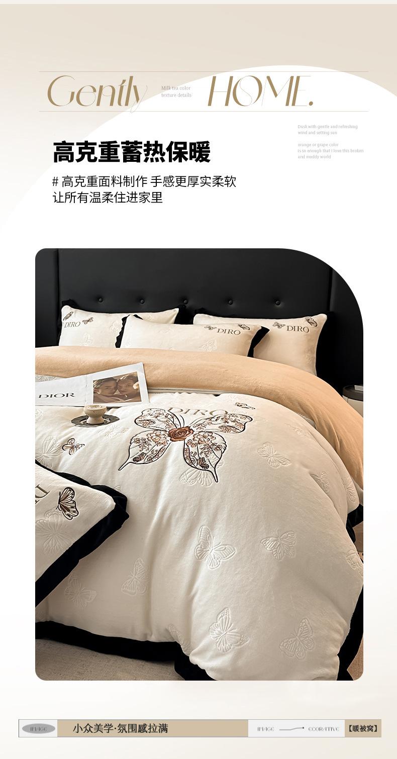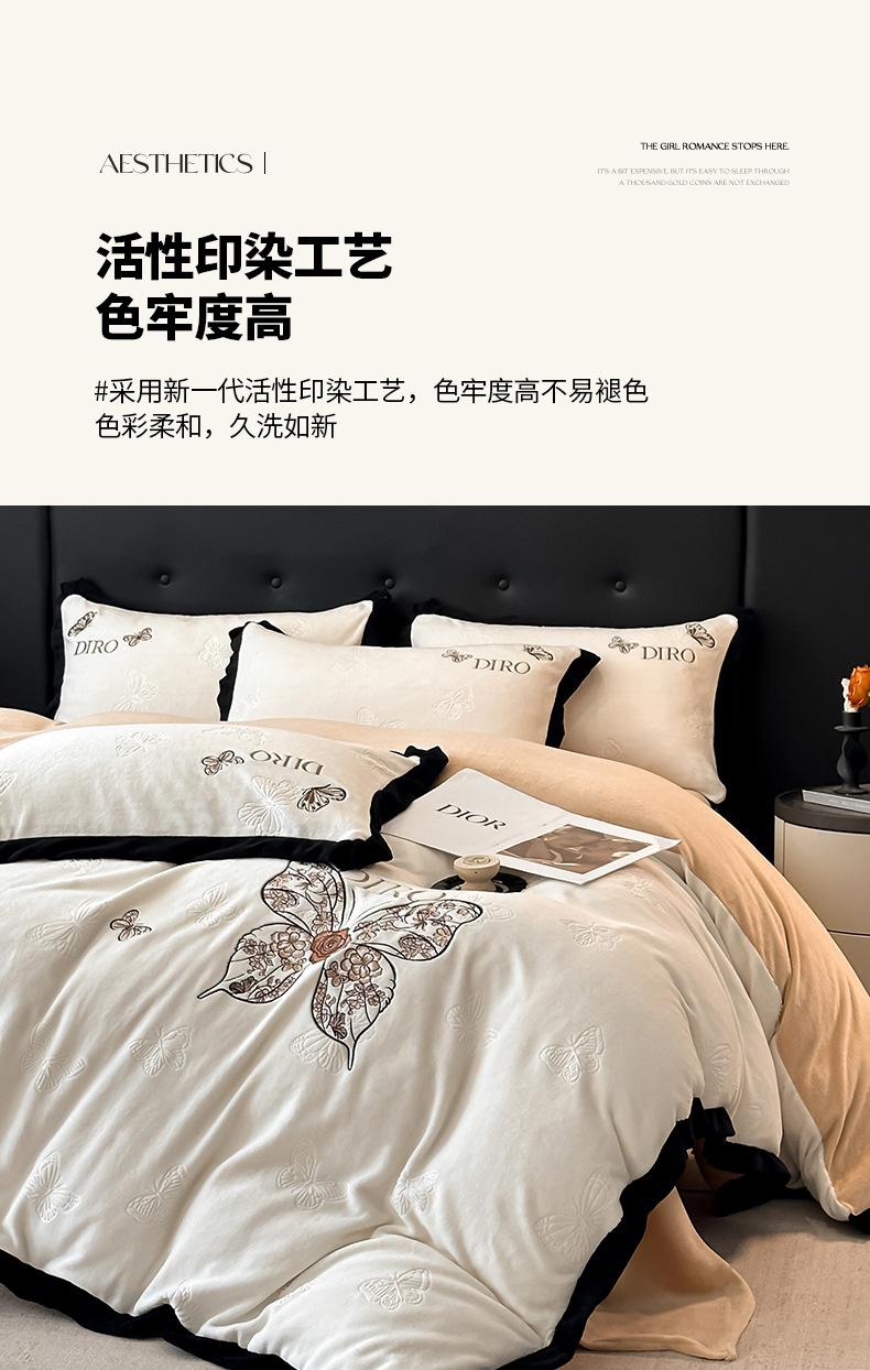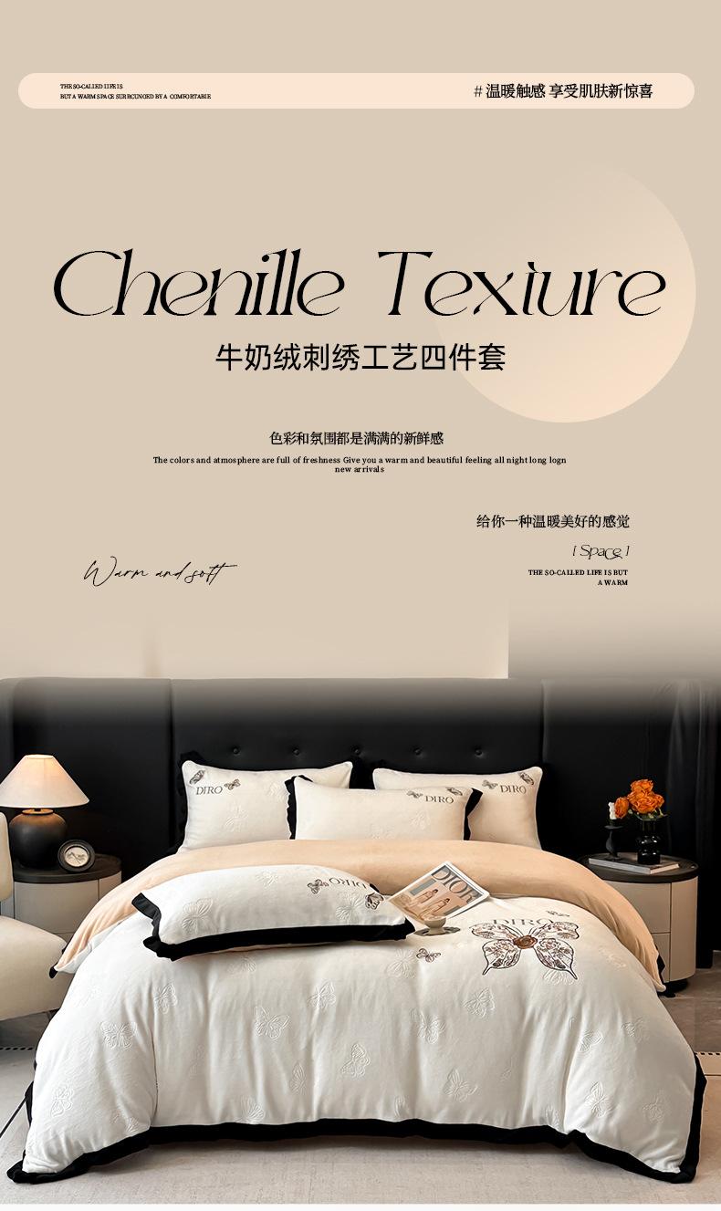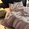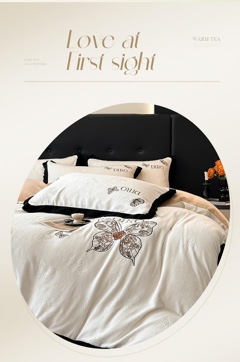 Juego de tres o cuatro piezas de terciopelo de leche de color sólido engrosado, fresco, doble empalmado, invierno, forro polar de coral, forro polar de doble cara, estilo sábana, juego de cuatro piezas