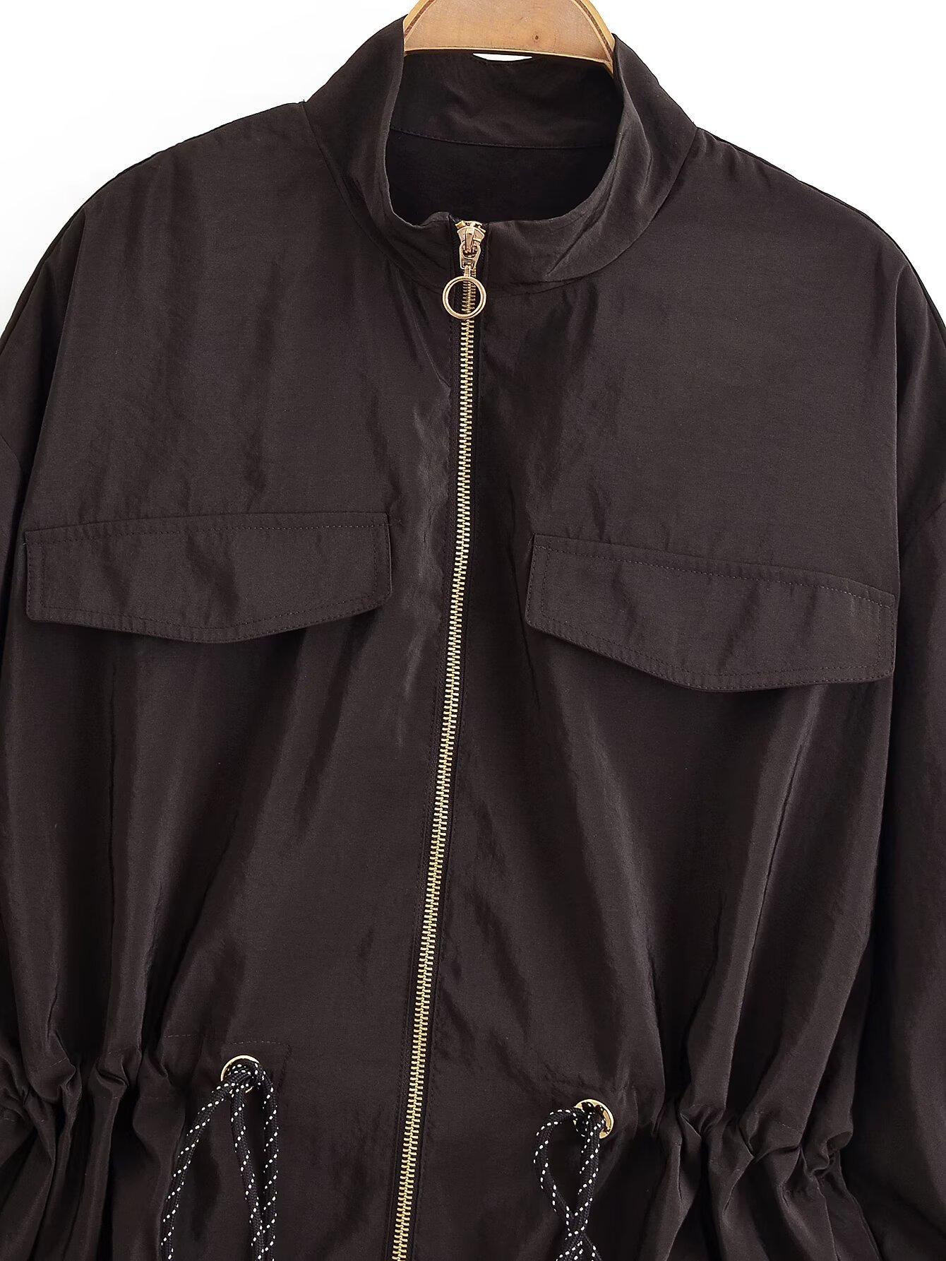 Otoño/Invierno 2025 Nuevo Gabardina de Moda Americana y Europea Transfronteriza para Mujer con Solapa y Cordón Ajustable en la Cintura de Manga Larga