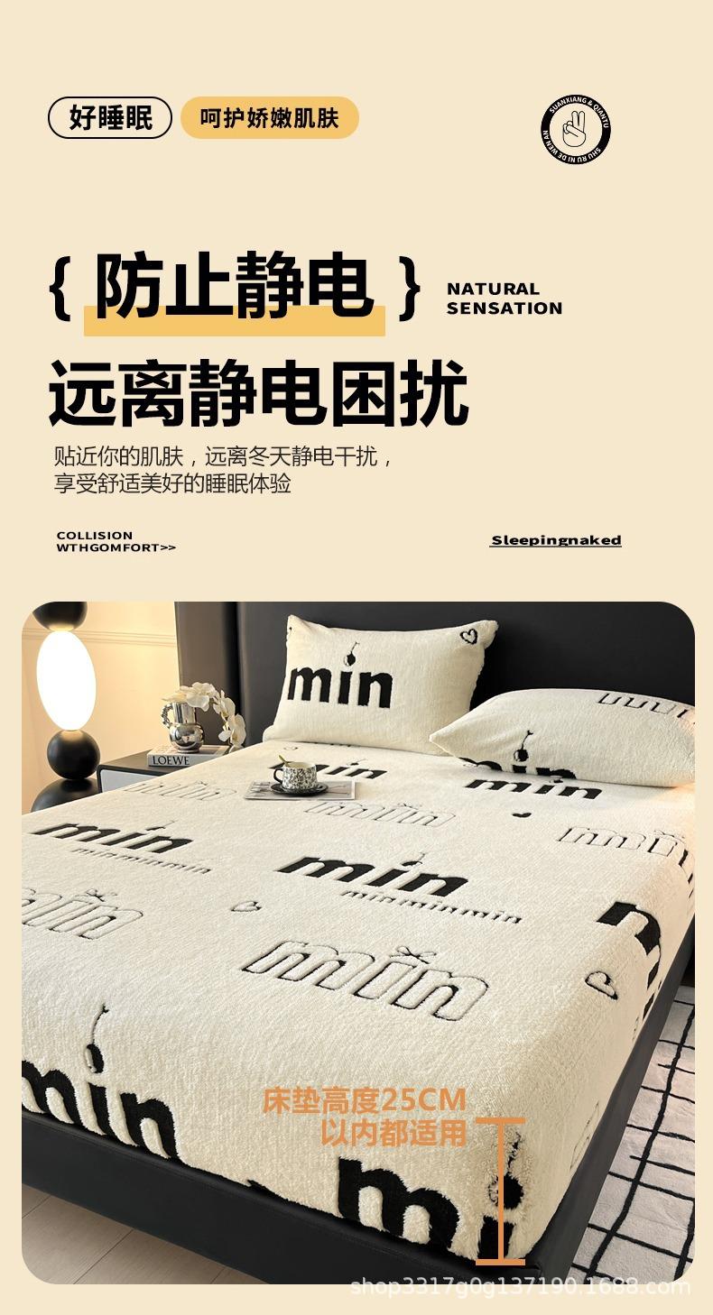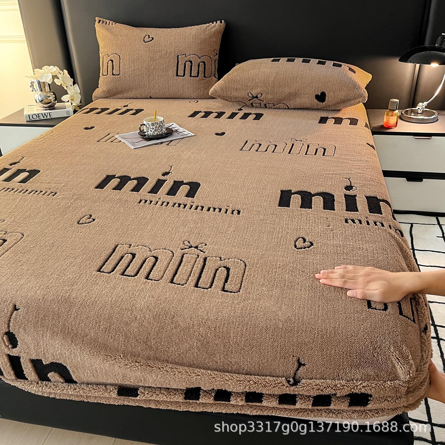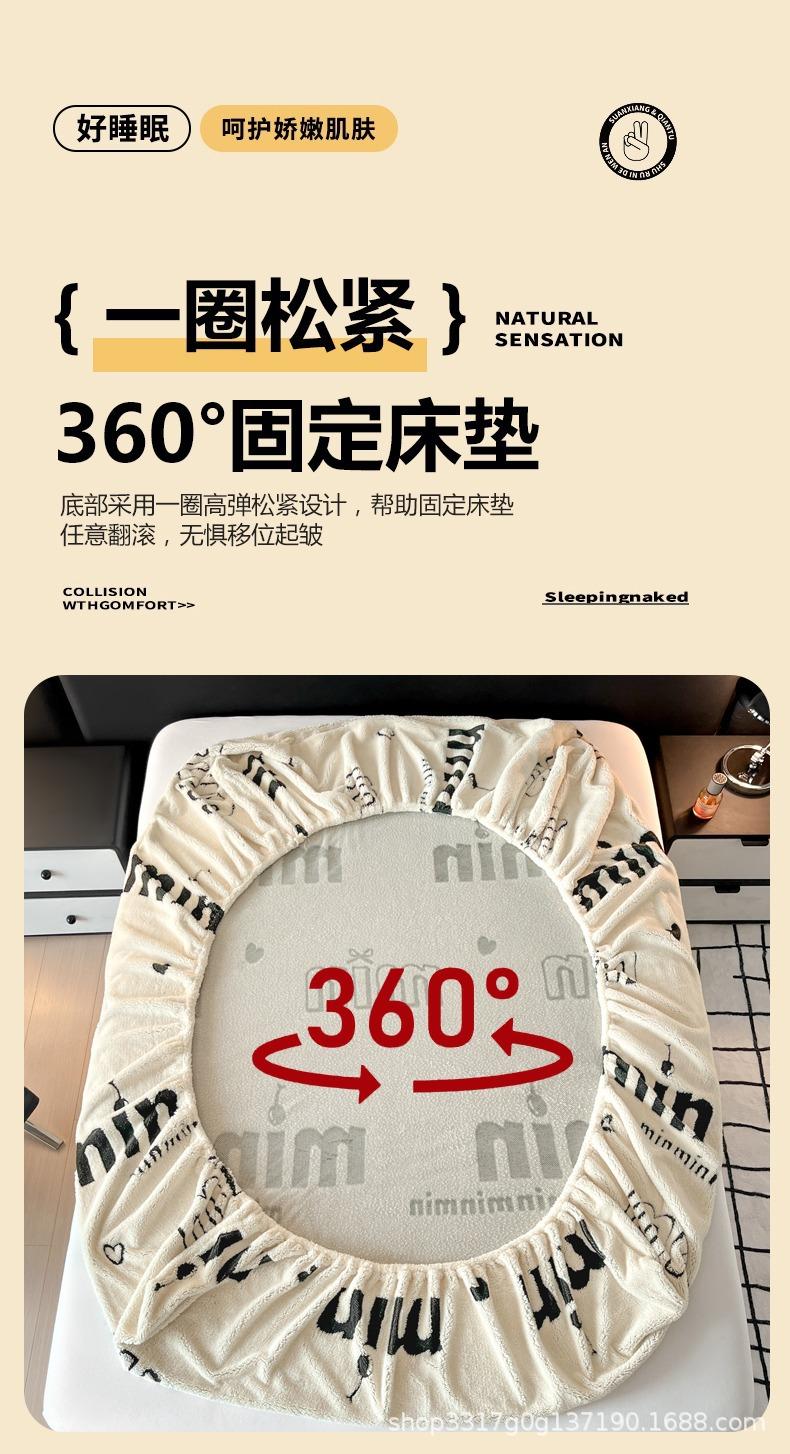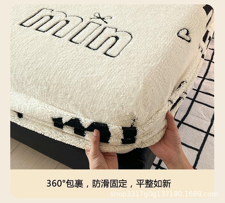Clase A Terciopelo Muyun Invierno Engrosado Cálido Sábana Ajustable Todo Incluido Terciopelo de Leche Protector Tatami Cubrecolchón Antideslizante