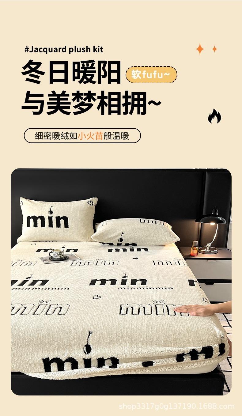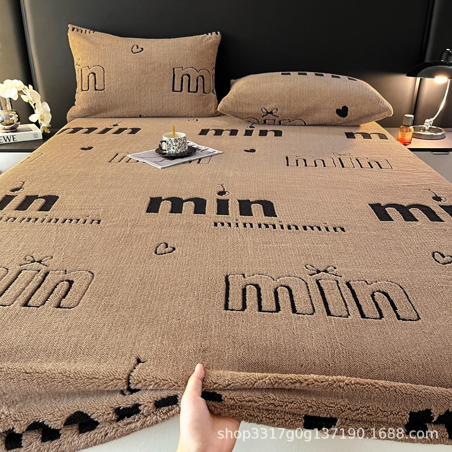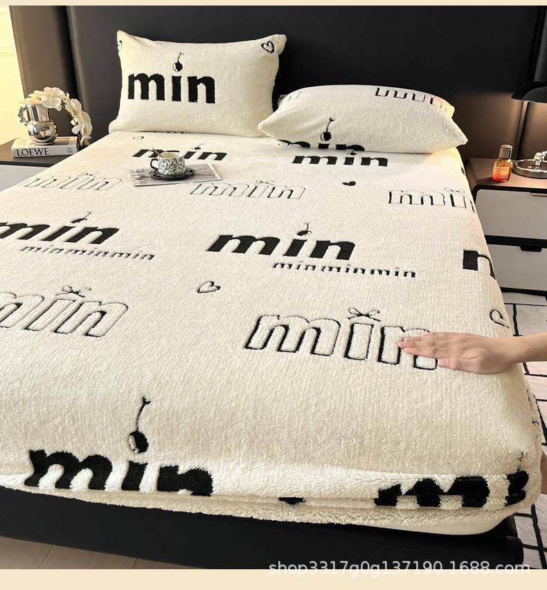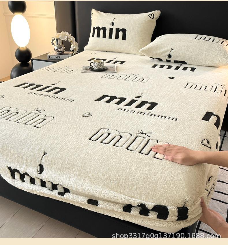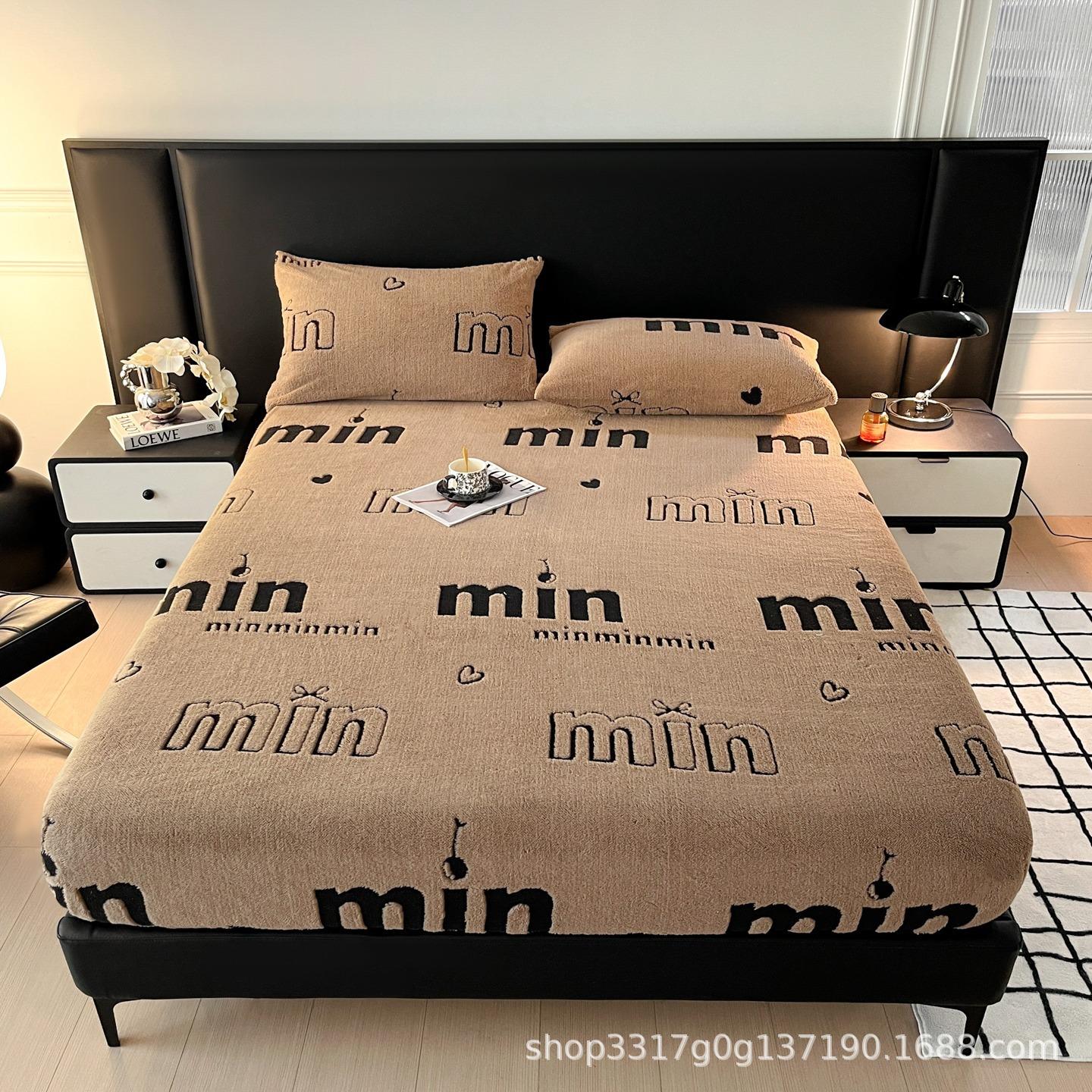 Clase A Terciopelo Muyun Invierno Engrosado Cálido Sábana Ajustable Todo Incluido Terciopelo de Leche Protector Tatami Cubrecolchón Antideslizante