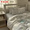 Juego minimalista de cuatro piezas de algodón puro, sábana bajera, funda de edredón y funda de almohada de algodón 100% estilo Ins, juego de tres piezas para dormitorio individual, ropa de cama de 4 piezas