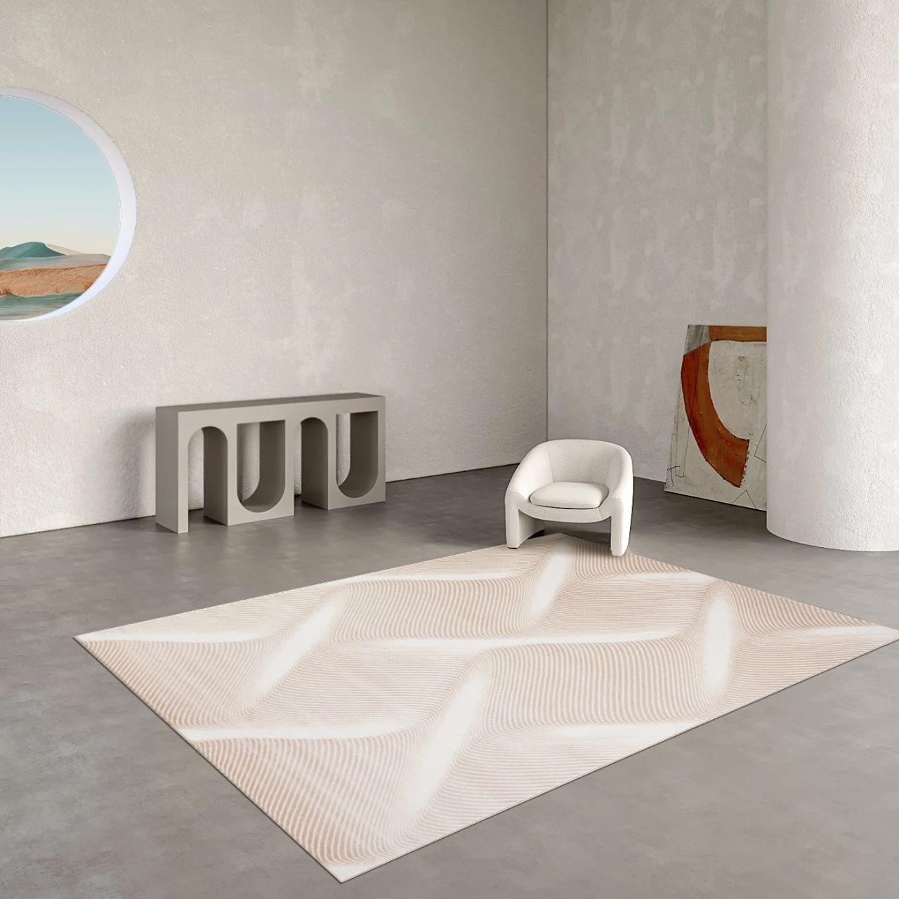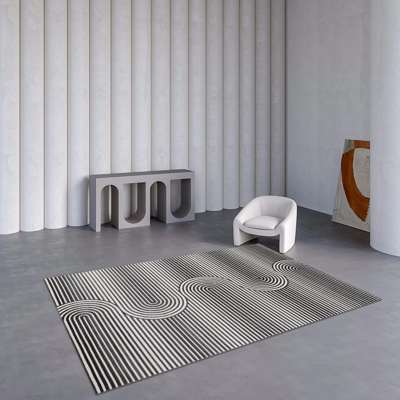 La variación en la altura de la felpa le da a la alfombra una mayor sensación de profundidad espacial; la combinación dinámica de materiales y colores, como una bailarina en el escenario, irradia una atmósfera elegante en todo momento.