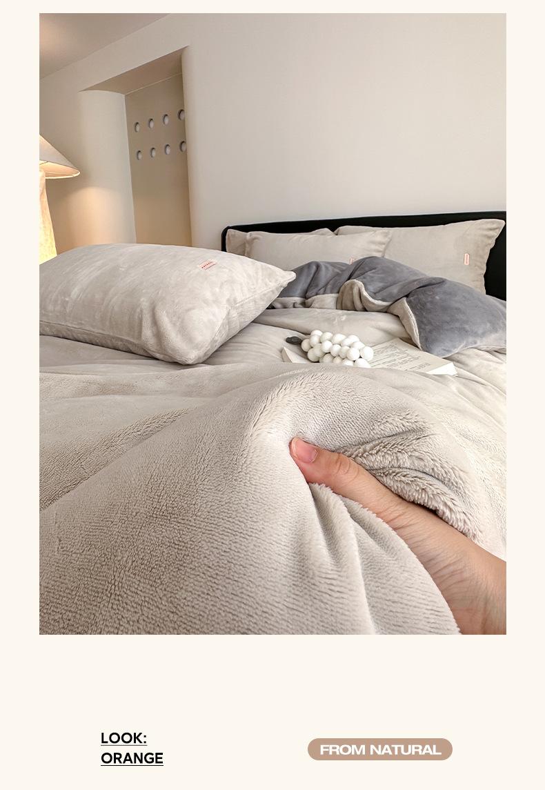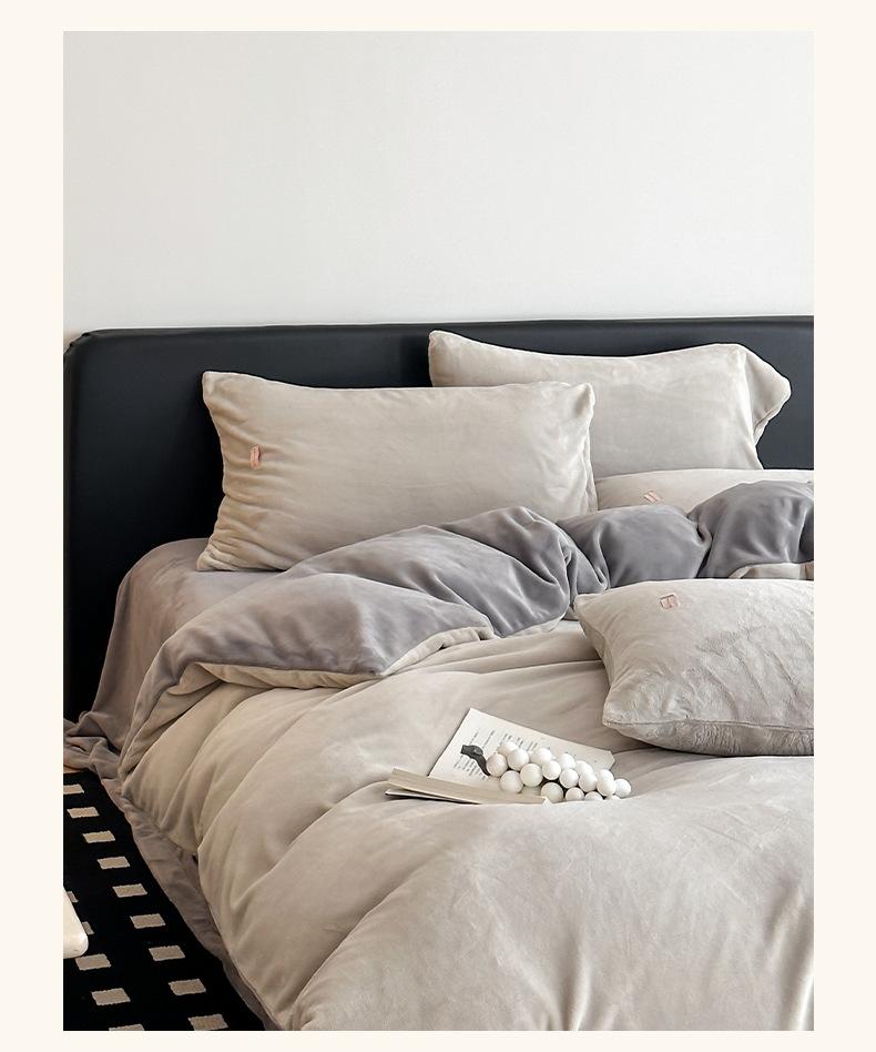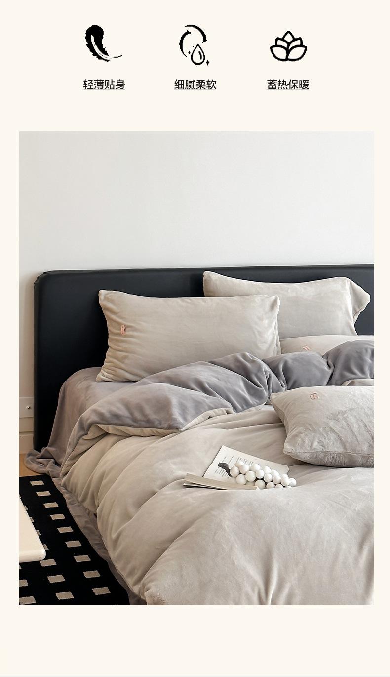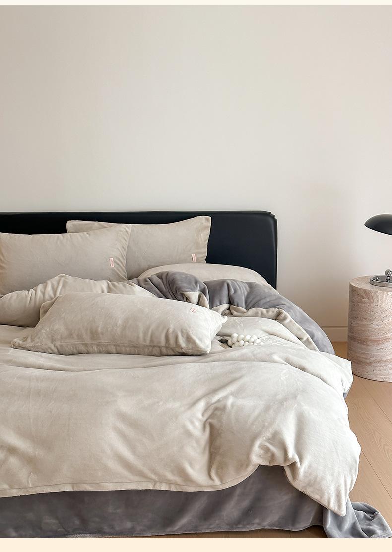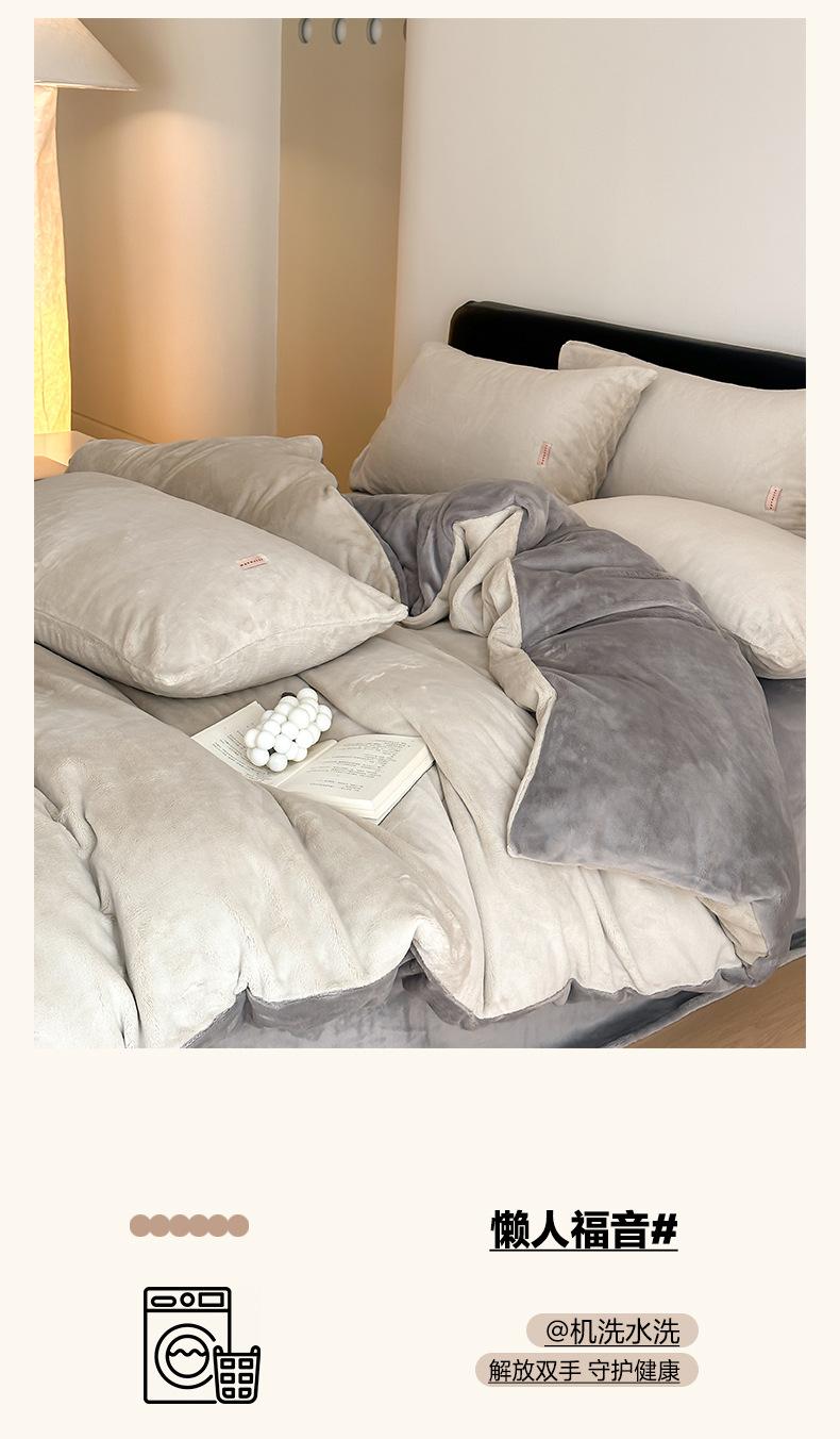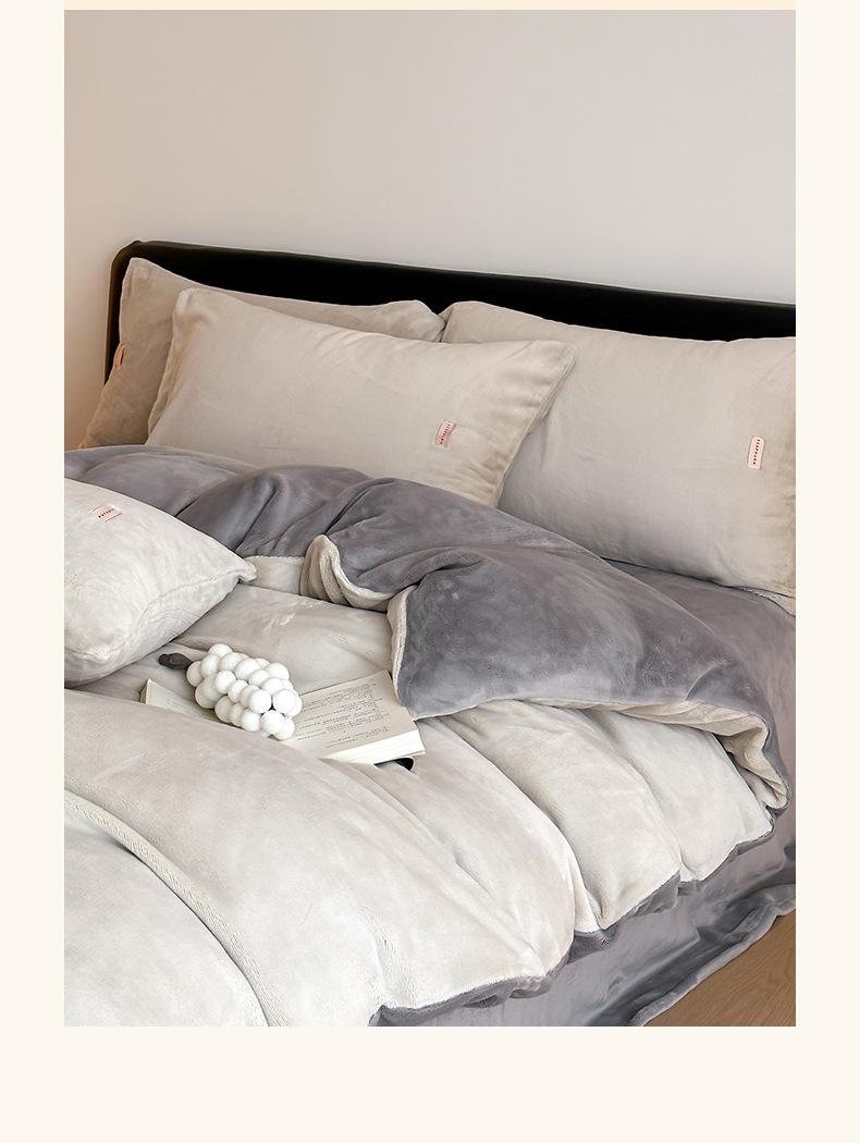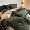 Juego de cuatro piezas de color sólido clase A de terciopelo de leche de doble cara Estilo simple Ins Otoño/Invierno Espesado Cálido Franela Antiestática