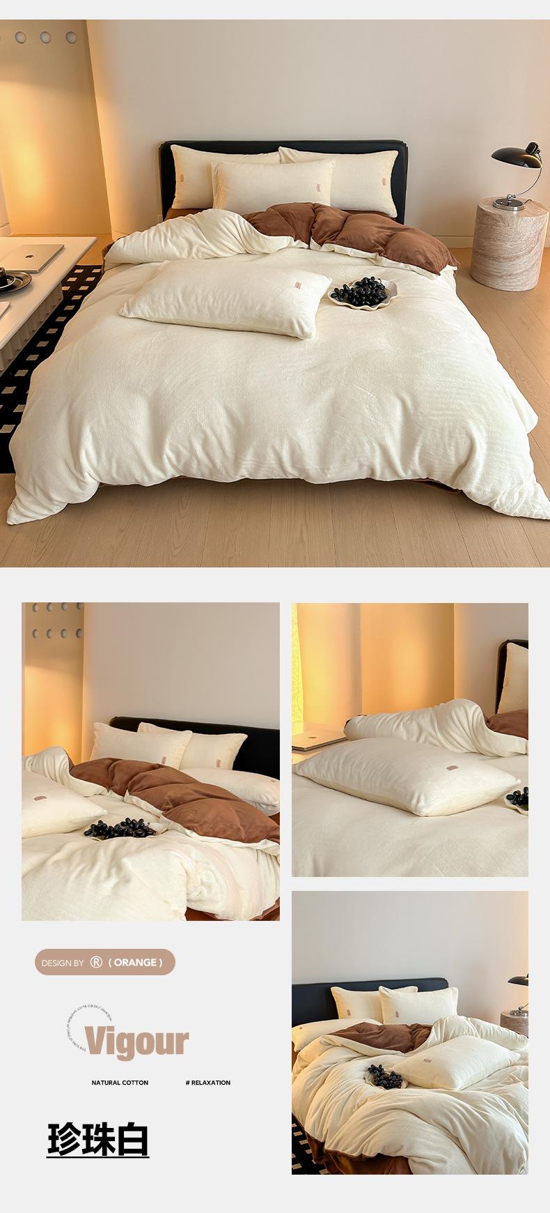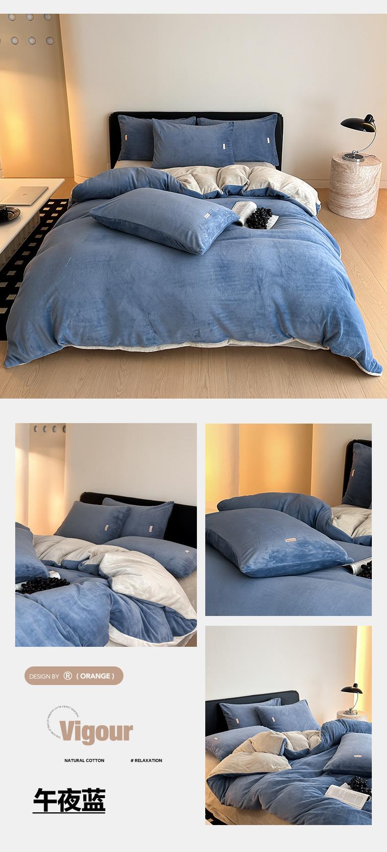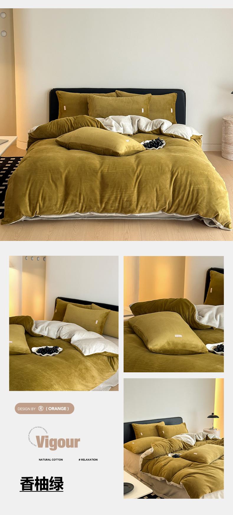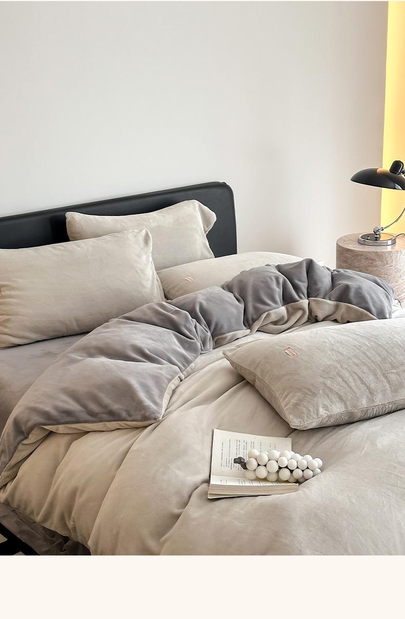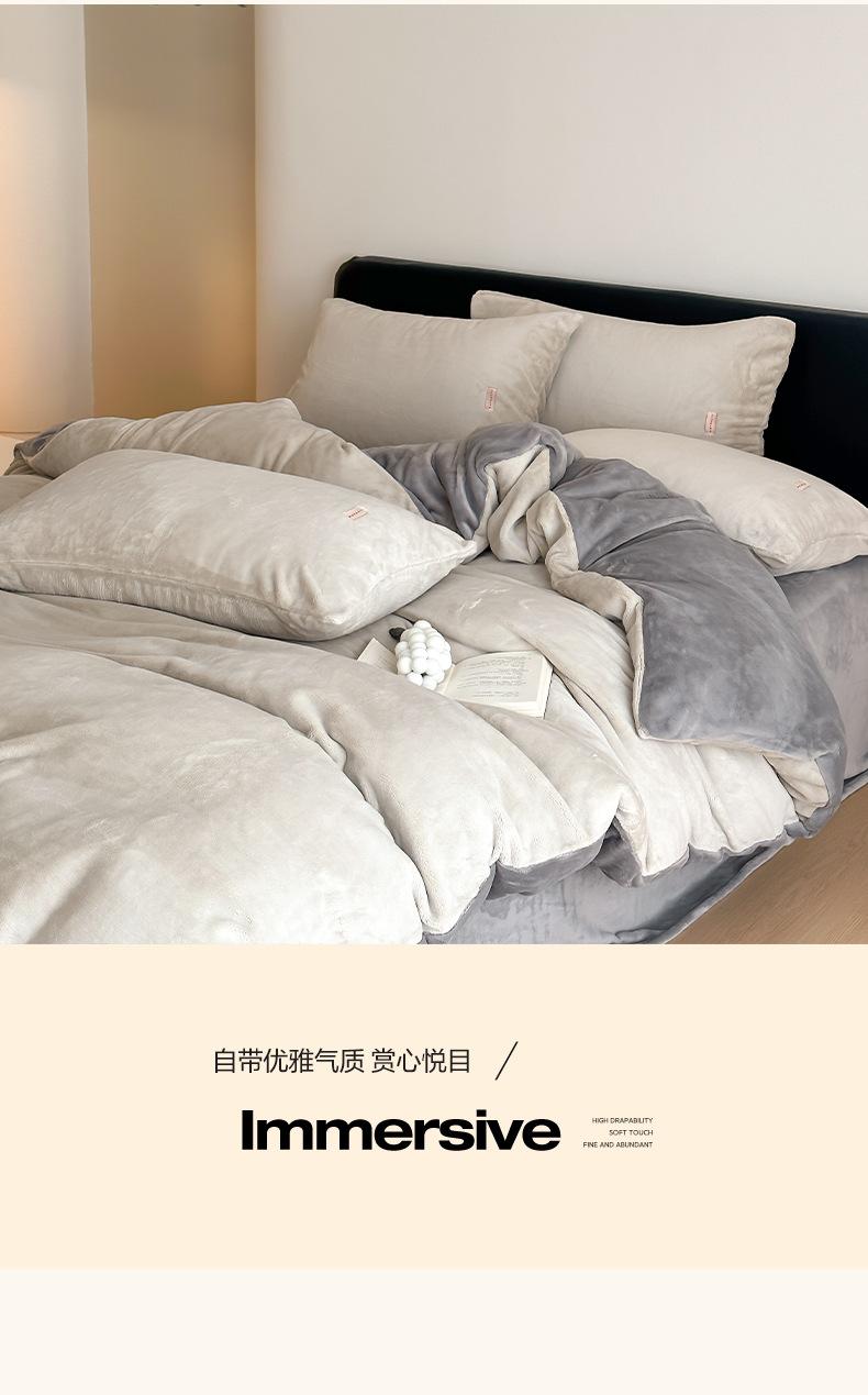 Juego de cuatro piezas de color sólido clase A de terciopelo de leche de doble cara Estilo simple Ins Otoño/Invierno Espesado Cálido Franela Antiestática