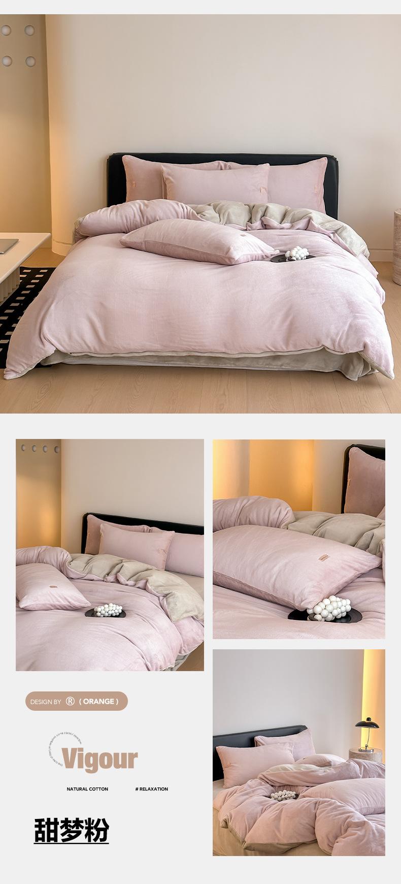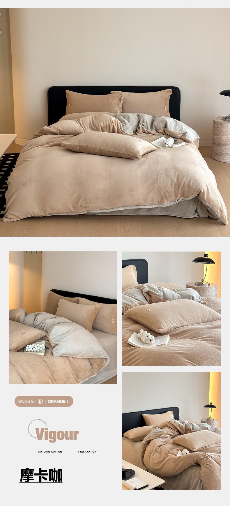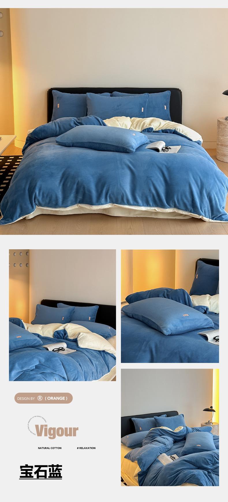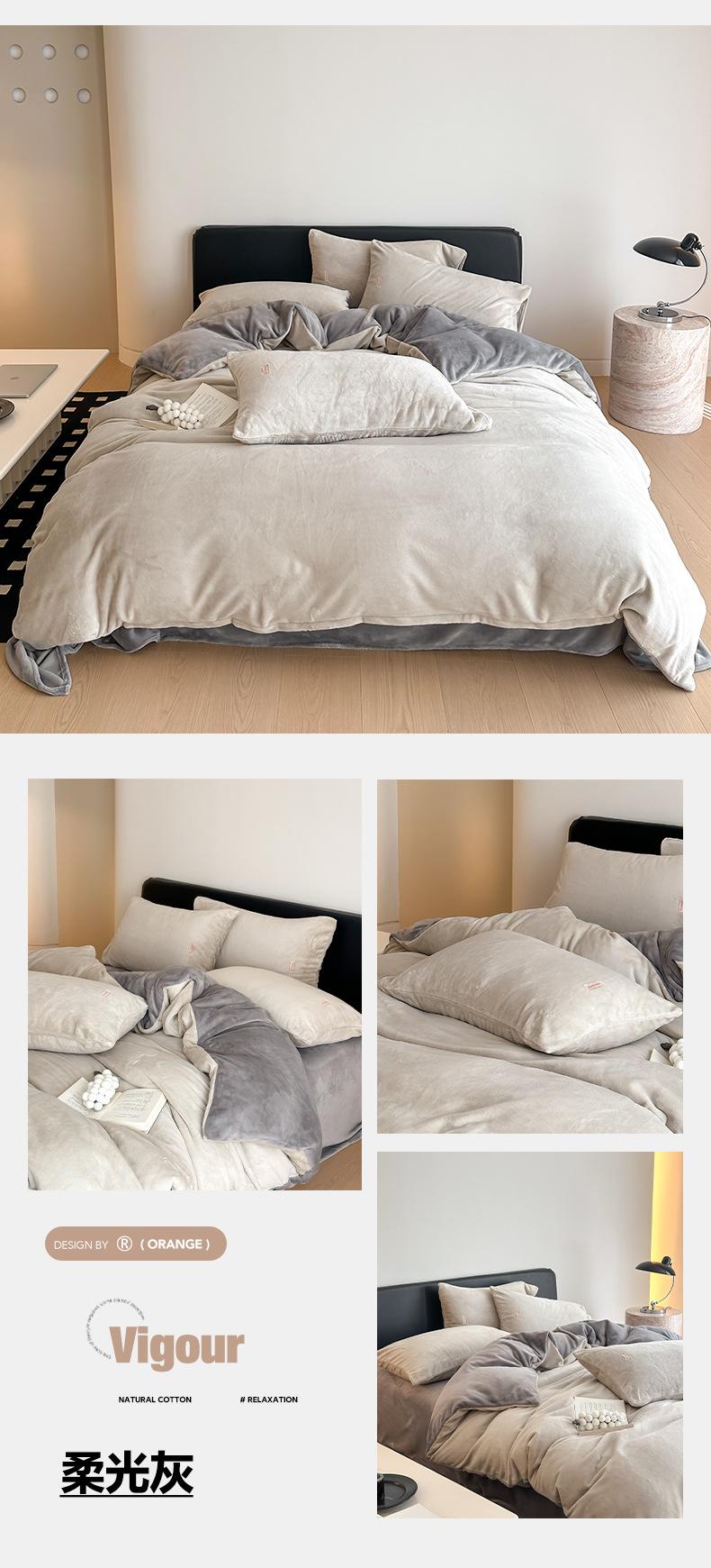 Juego de cuatro piezas de color sólido clase A de terciopelo de leche de doble cara Estilo simple Ins Otoño/Invierno Espesado Cálido Franela Antiestática