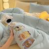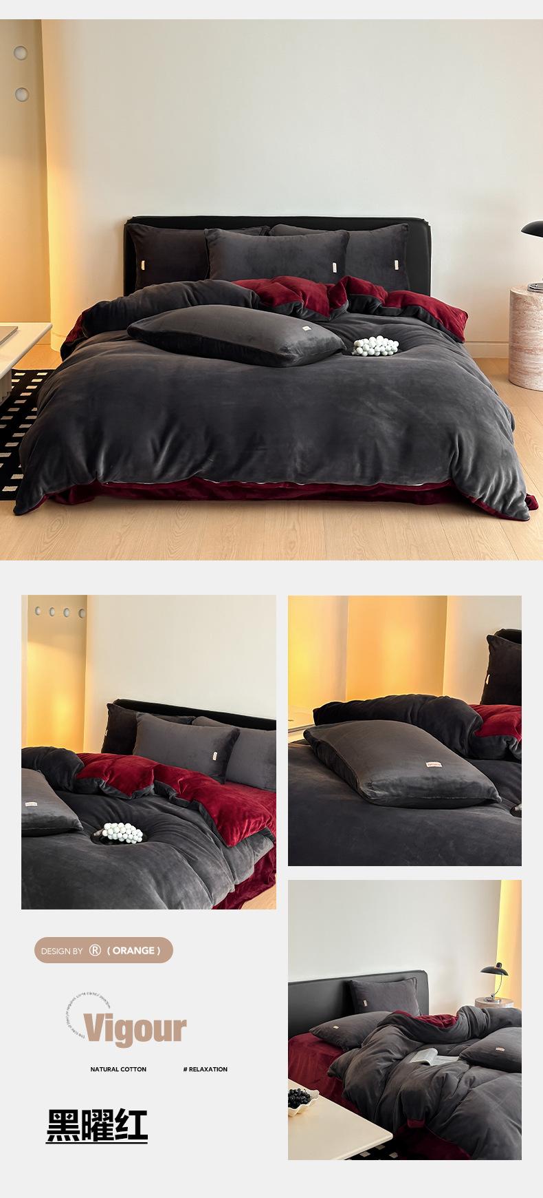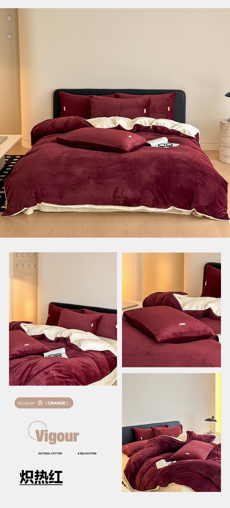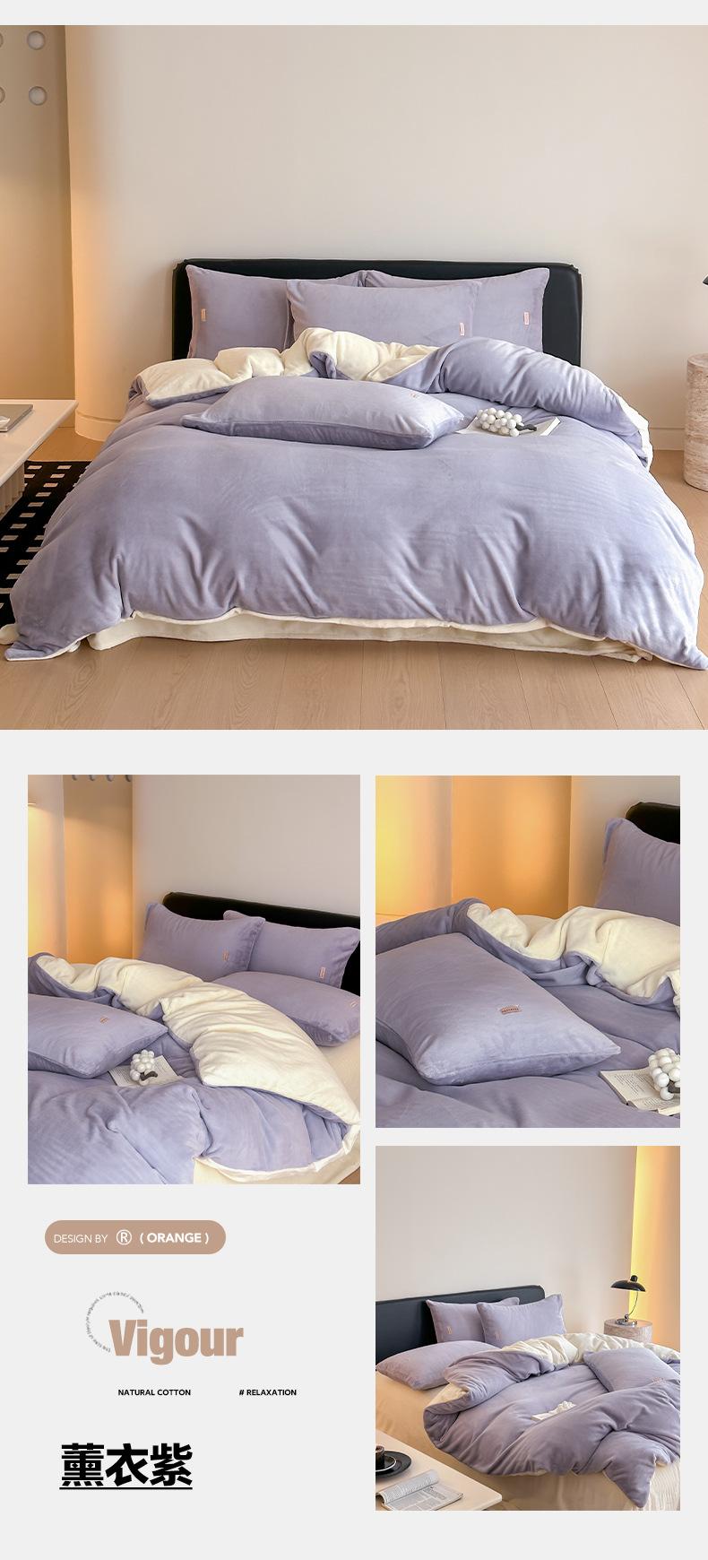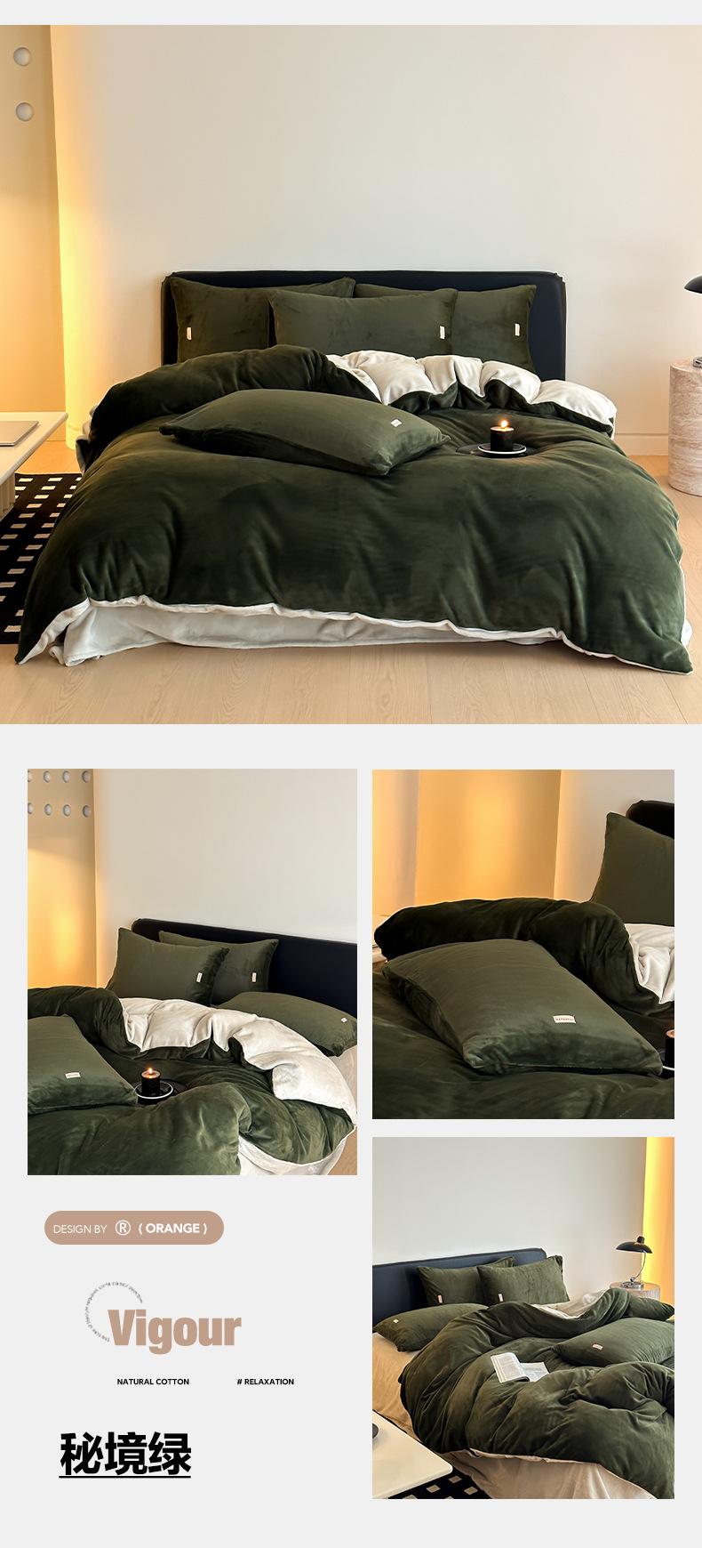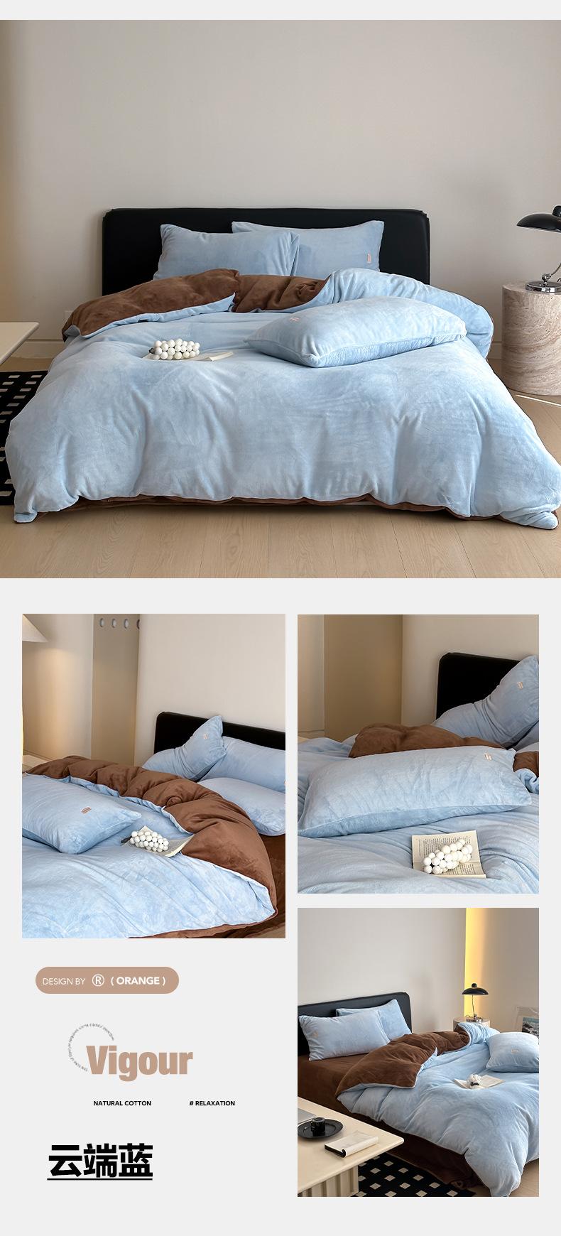 Juego de cuatro piezas de color sólido clase A de terciopelo de leche de doble cara Estilo simple Ins Otoño/Invierno Espesado Cálido Franela Antiestática