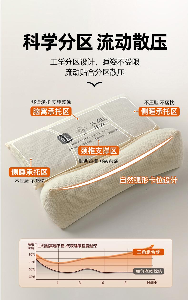 Almohada Combinada de Trigo Sarraceno Dolor Cervical Protección de Cuello Ayuda Triangular Núcleo de Almohada para Dormir Adulto Tracción de Arco Inverso Colapso