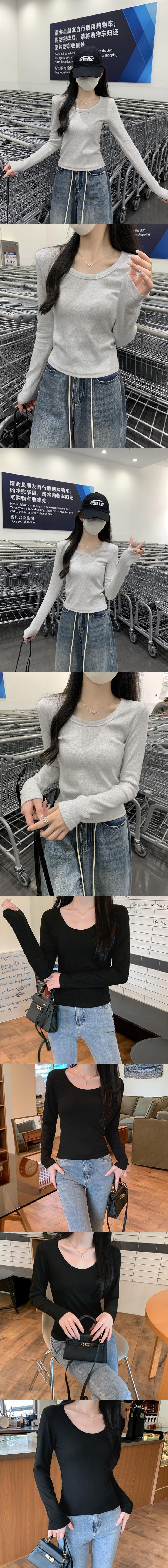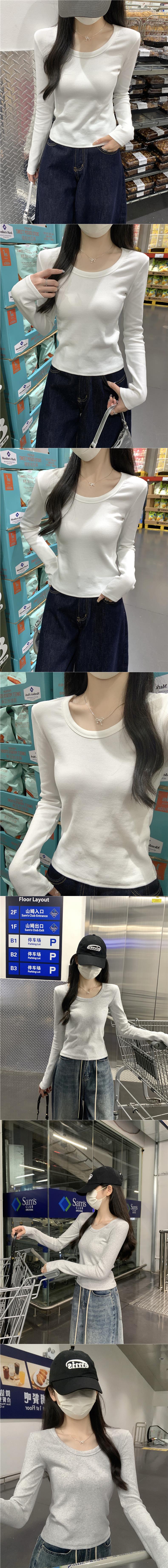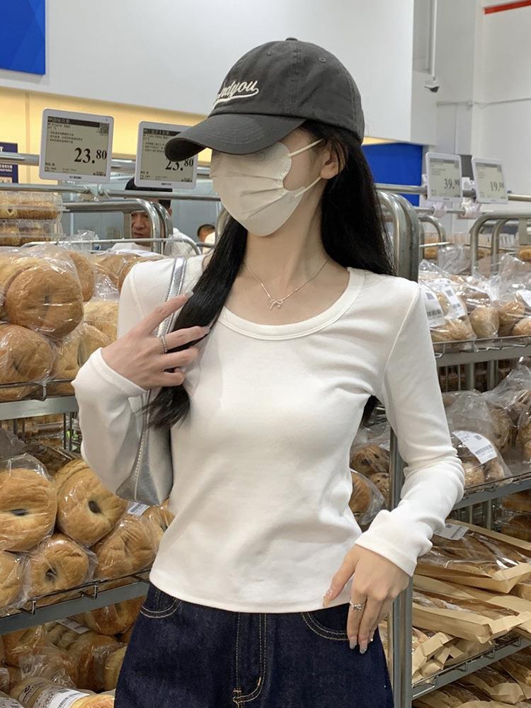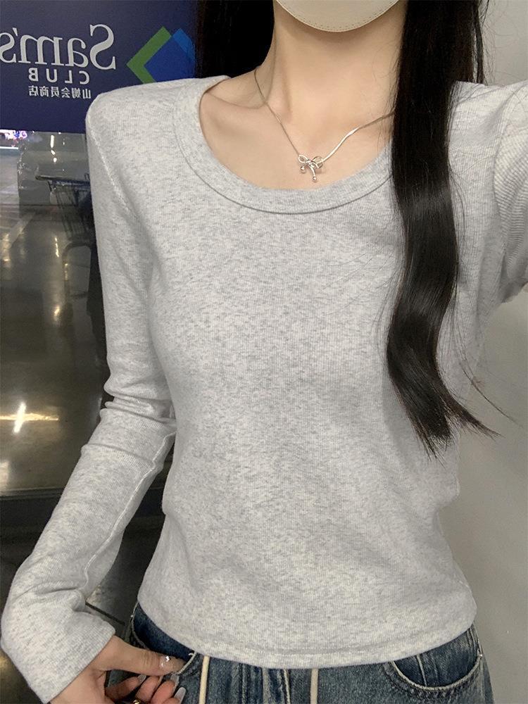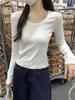 Ropa interior delgada de alta gama nuevo otoño temprano cuello redondo blanco 2025 sentido top básico camiseta manga larga mujer corte entallado