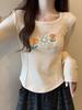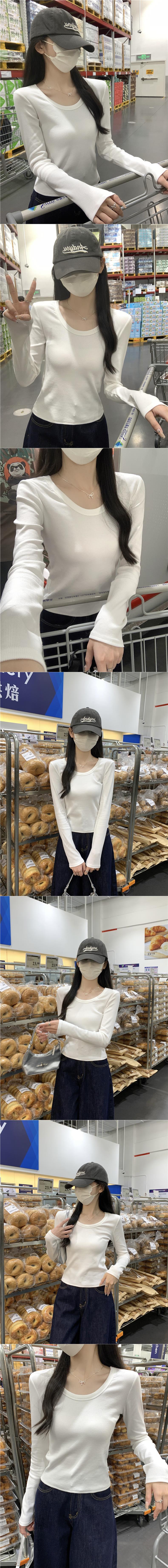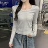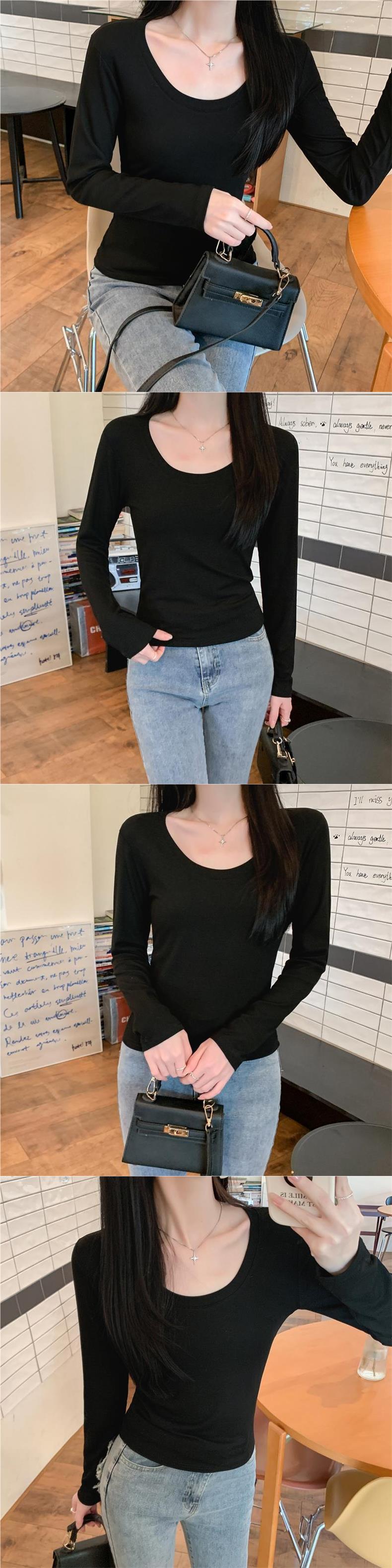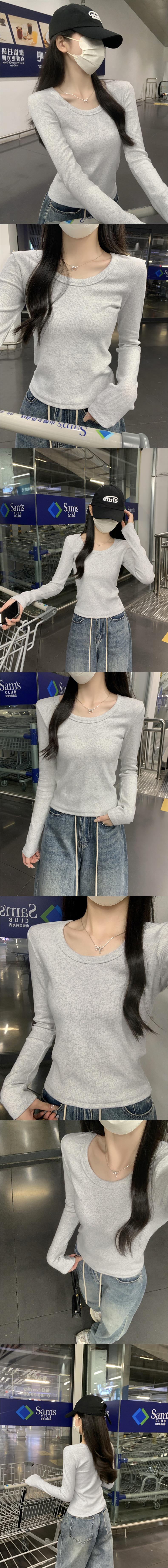 Ropa interior delgada de alta gama nuevo otoño temprano cuello redondo blanco 2025 sentido top básico camiseta manga larga mujer corte entallado