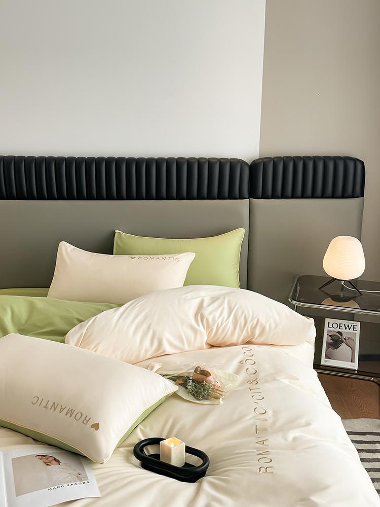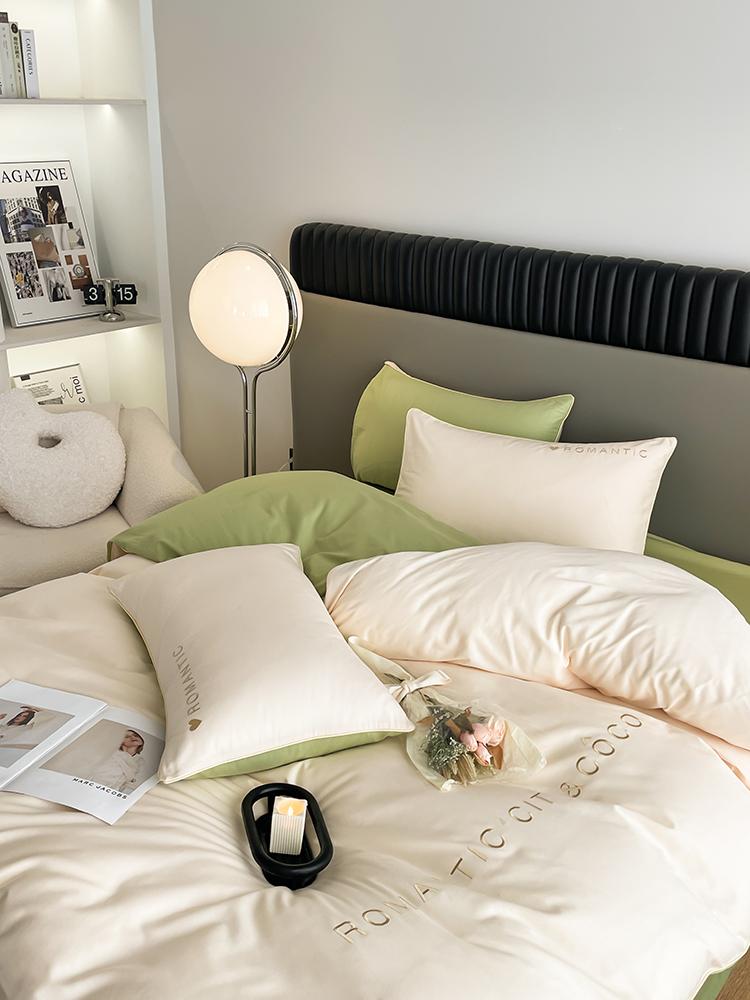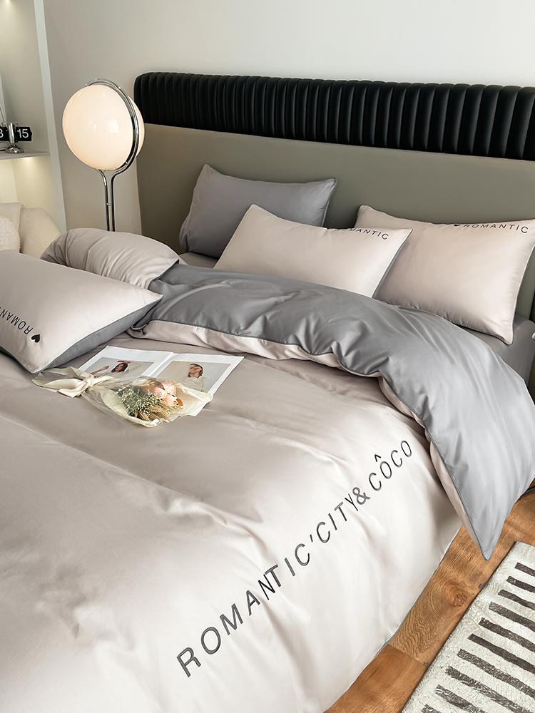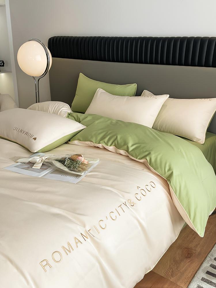 Exquisito Bordado 100% Algodón Peinado Juego de Cuatro Piezas Sencilla Ropa de Cama Bicolor de Primavera y Otoño Algodón Puro