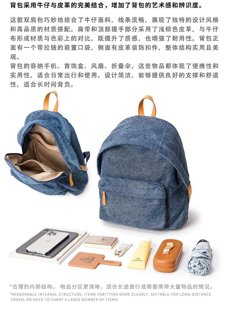 Nueva Mochila de Mezclilla Simple de Gran Capacidad para Mujer Mochila Casual Versátil Bolsa de Viaje Mochila Escolar Multifuncional