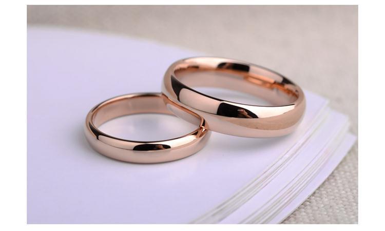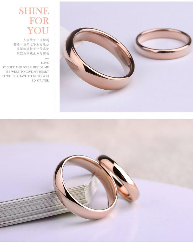 Anillos de Pareja Sencillos Estilo Europeo y Americano de 4 mm de Ancho, Anillos de Oro para Hombre y Mujer, Anillos Rosados, Versión Coreana, Lujo Ligero y Exquisito