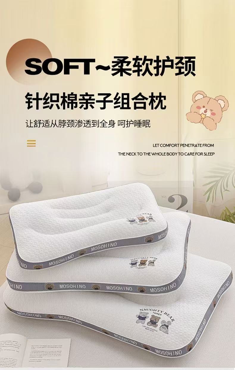 Clase a Almohada para niños Almohada para estudiantes y adultos Almohada con forma para el cuello Núcleo Tejido Dibujo animado Oso Almohada Combinación Padre-Hijo Venta al por mayor