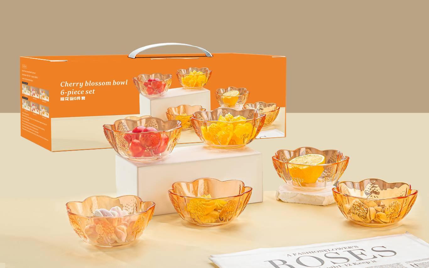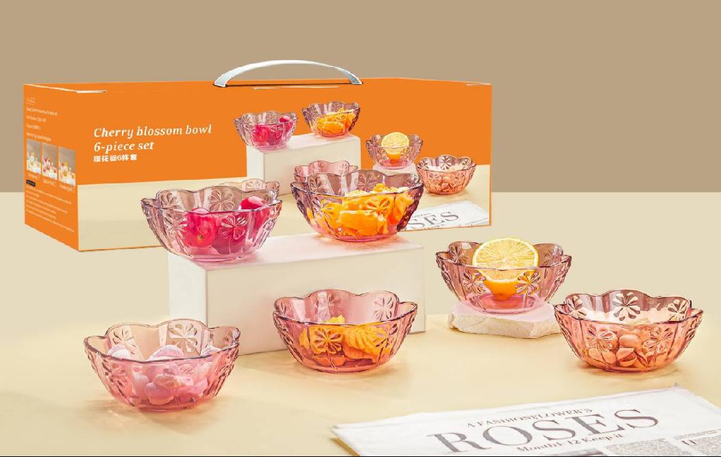 Transparent maple leaf bowl six-piece set 18 sets/box