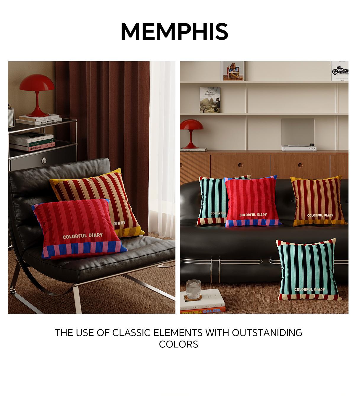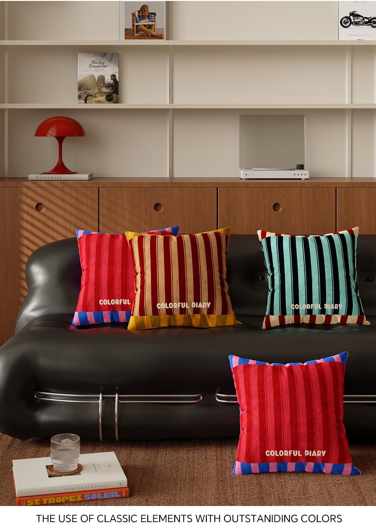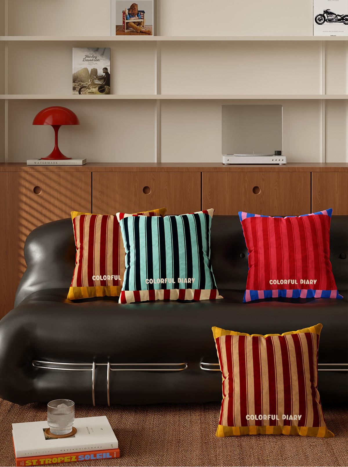 Cojín Decorativo de Rayas con Bloques de Color Bauhaus Simple Retro Americano para Hogar, Sala de Estar, Sofá, Respaldo, Funda de Almohada Removible y Lavable