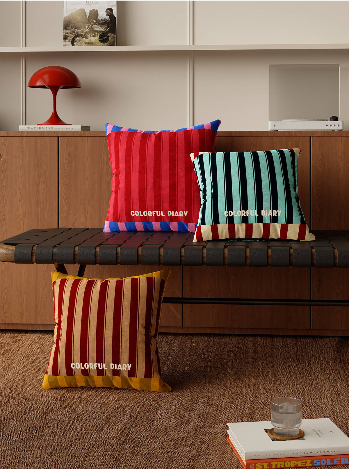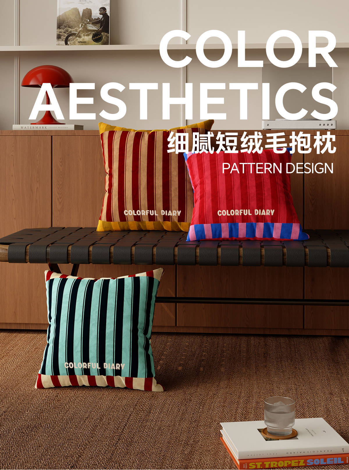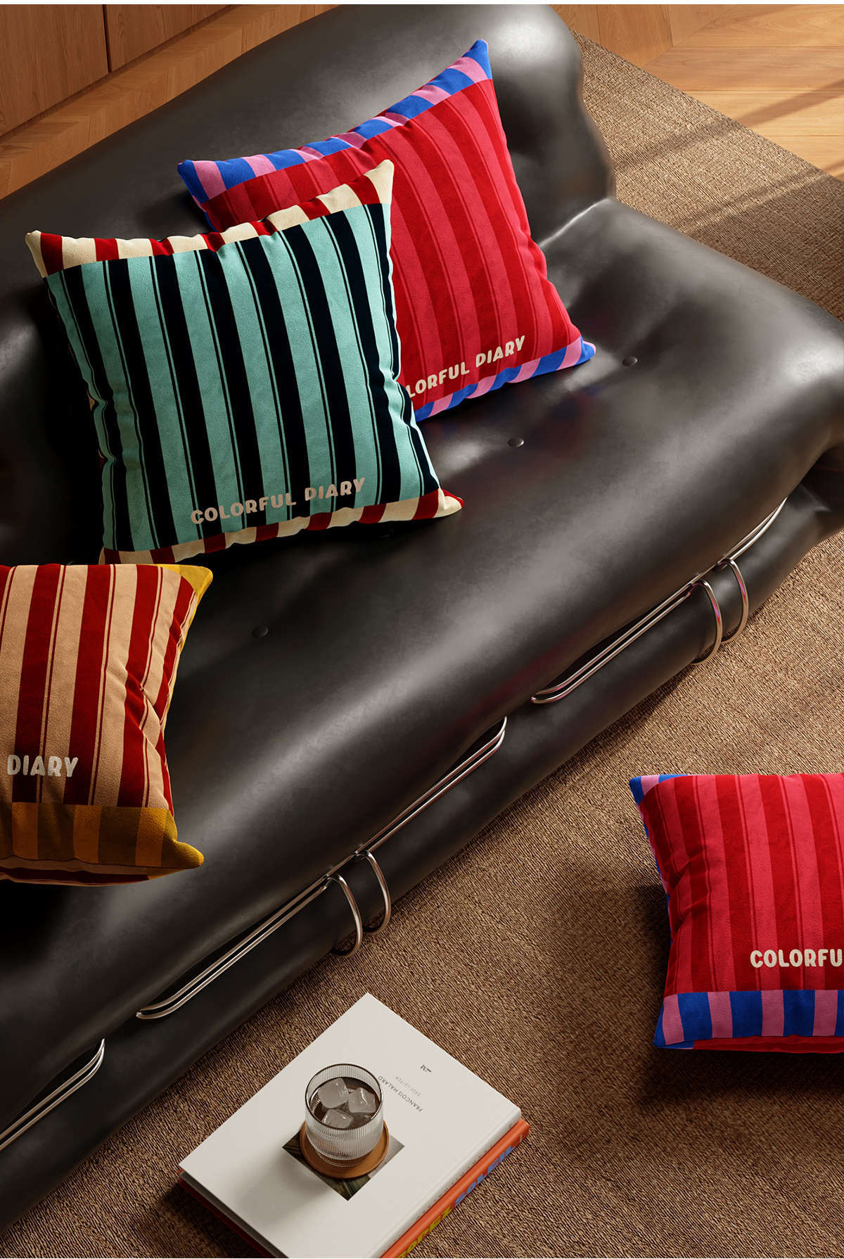 Cojín Decorativo de Rayas con Bloques de Color Bauhaus Simple Retro Americano para Hogar, Sala de Estar, Sofá, Respaldo, Funda de Almohada Removible y Lavable