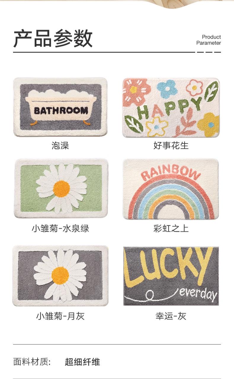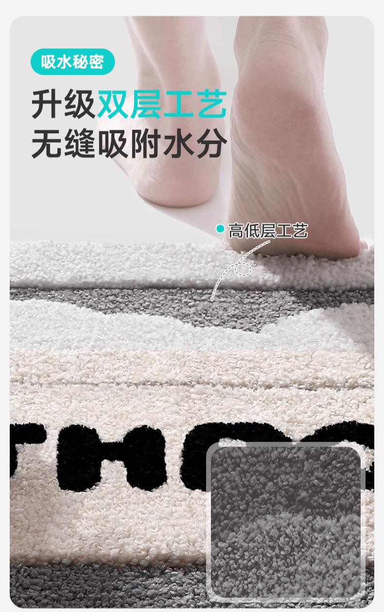 Alfombra de Baño Flocking Estilo Fresco Transfronterizo Antideslizante Absorbente de Agua Felpudo de Secado Rápido Alfombra para Inodoro Hogar Baño